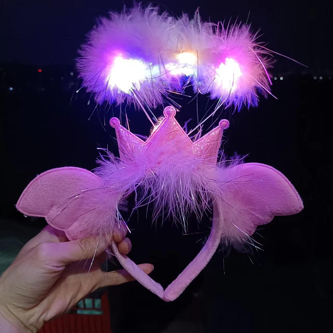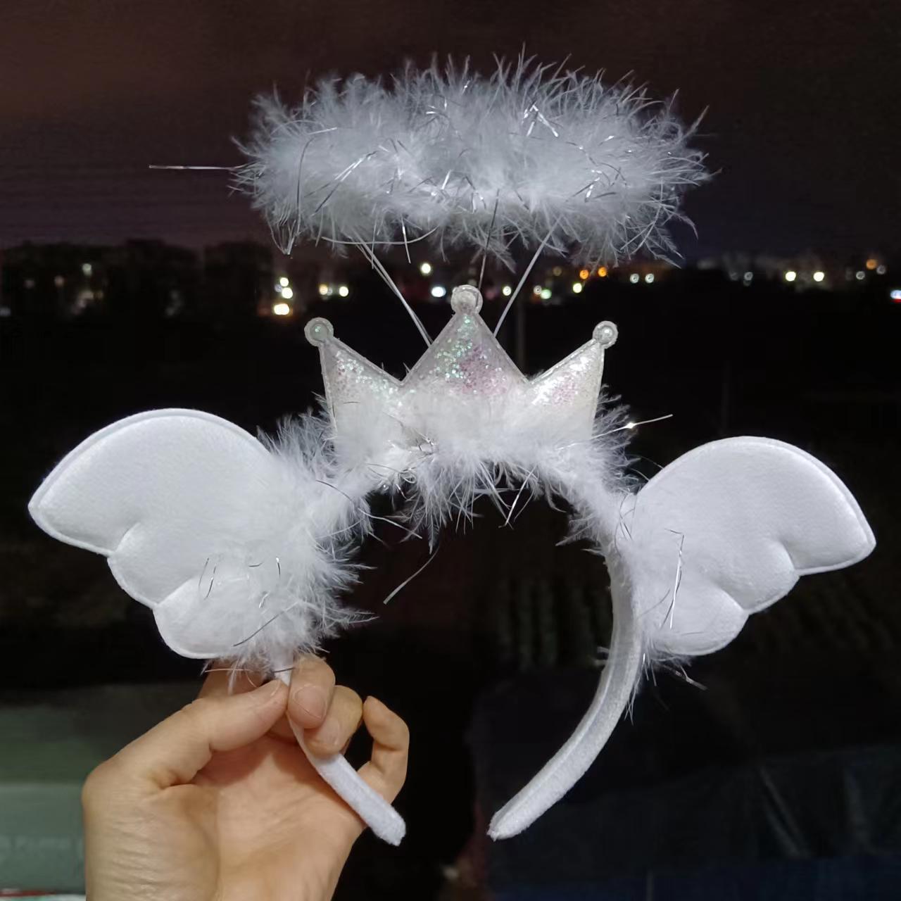 皇冠天使光环发箍仙女闪光羽毛发卡网红拍照儿童装扮头饰批发