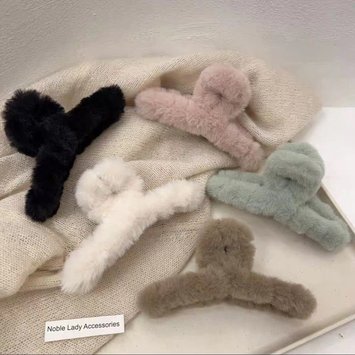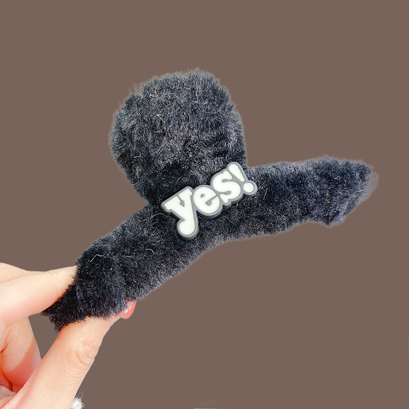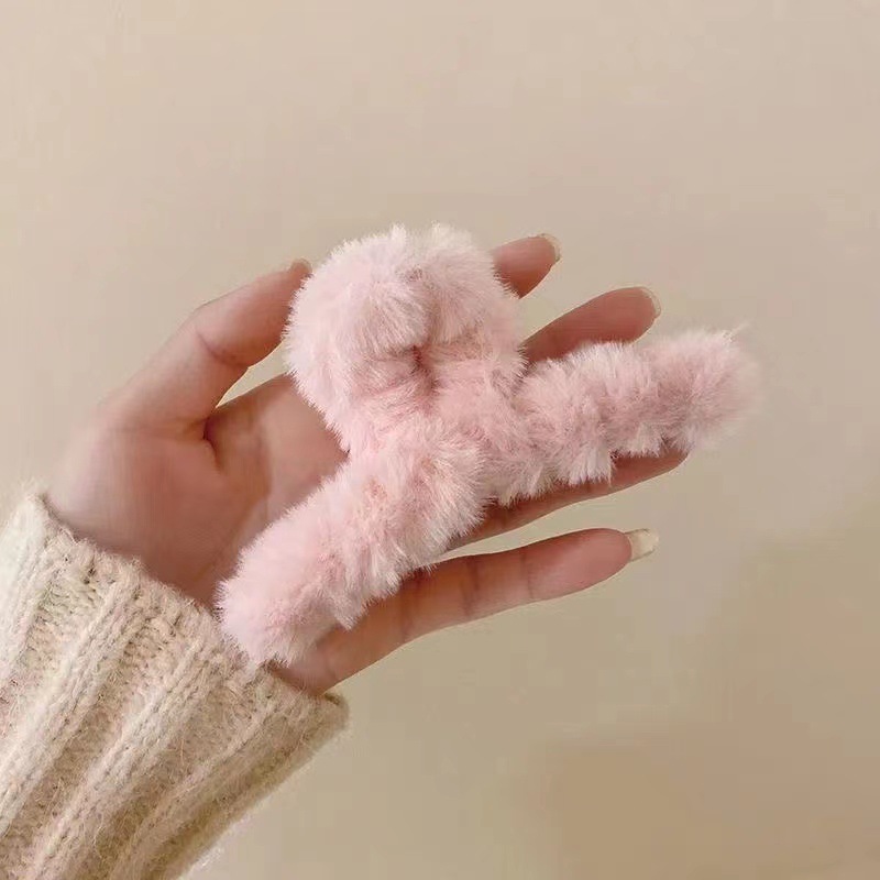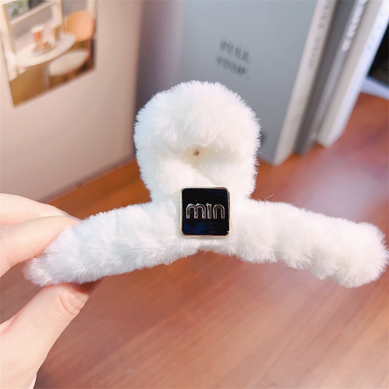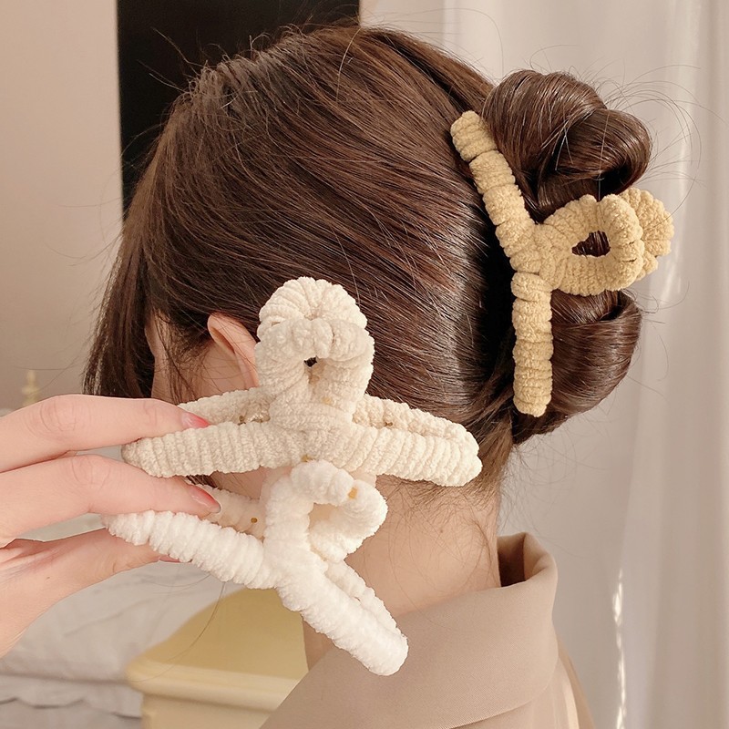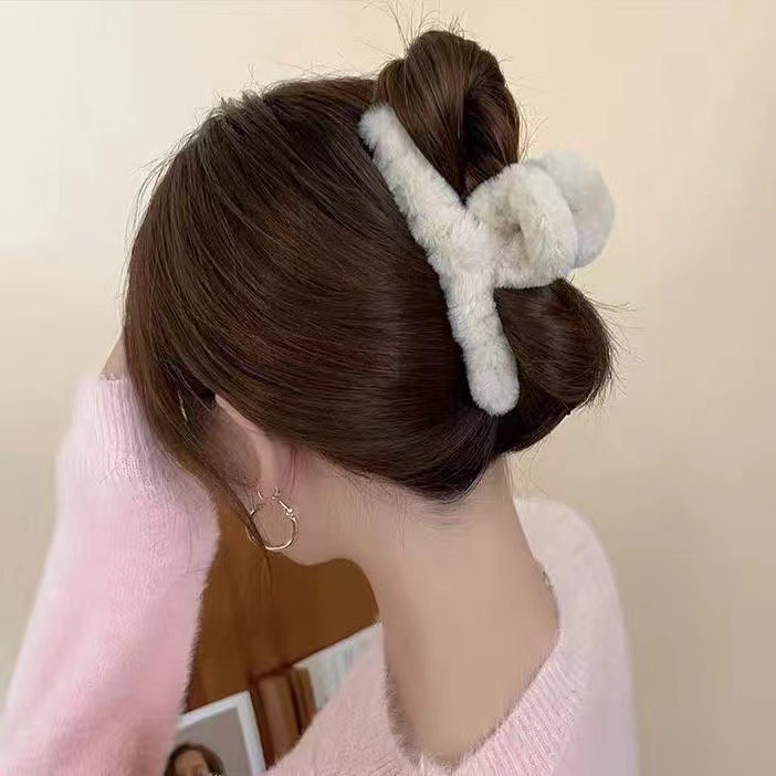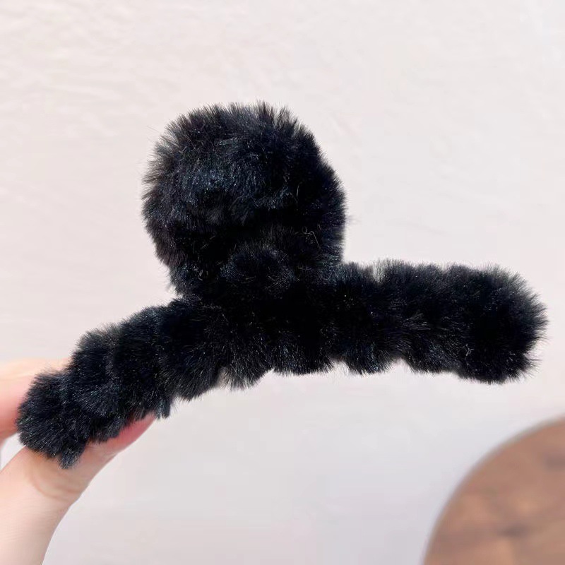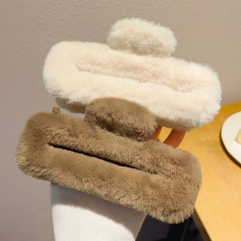 超大号简约百搭时尚毛绒发夹女发量多毛茸茸抓夹后脑勺盘发鲨鱼夹