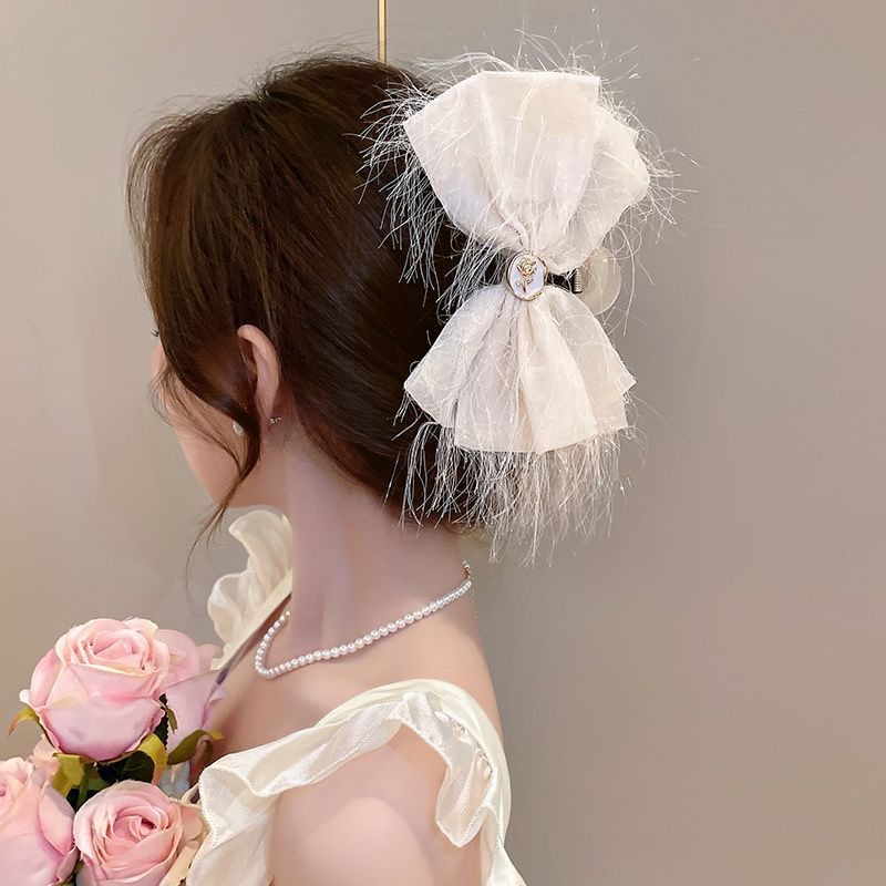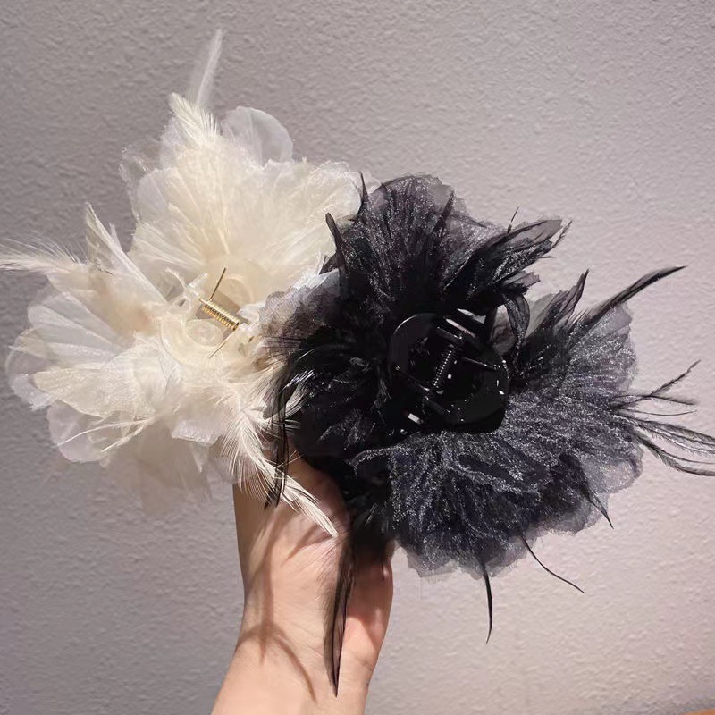 2023新款法式羽毛发夹超仙大号抓夹网红气质头饰发量多爆款鲨鱼夹