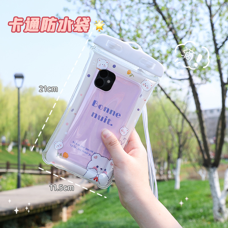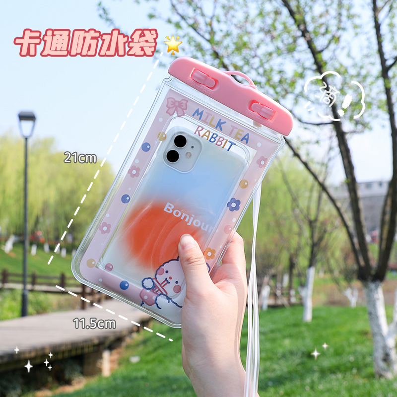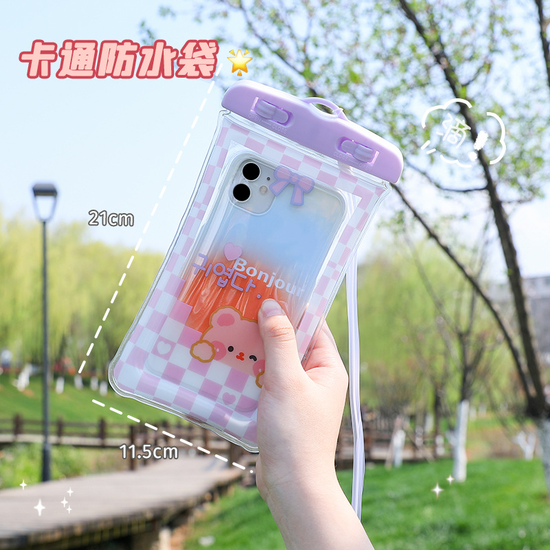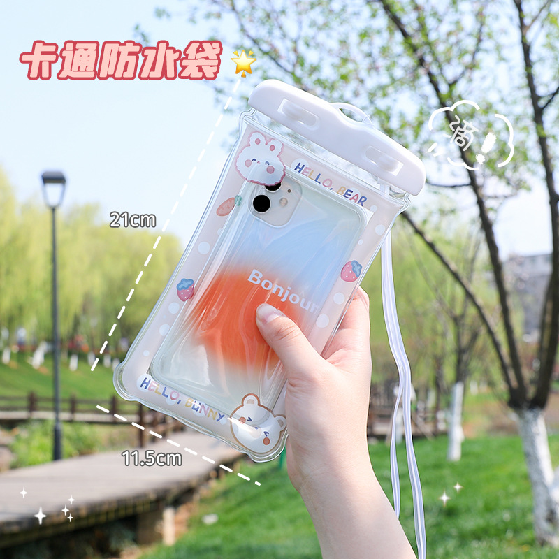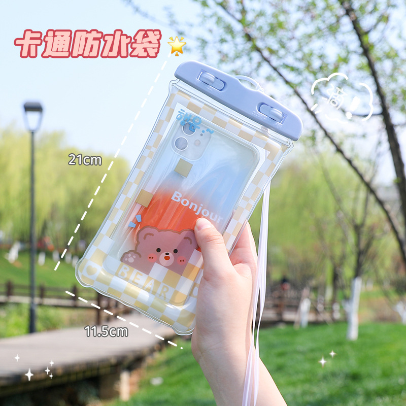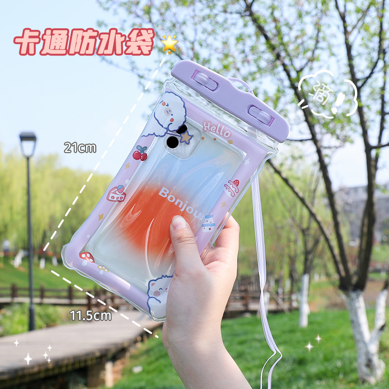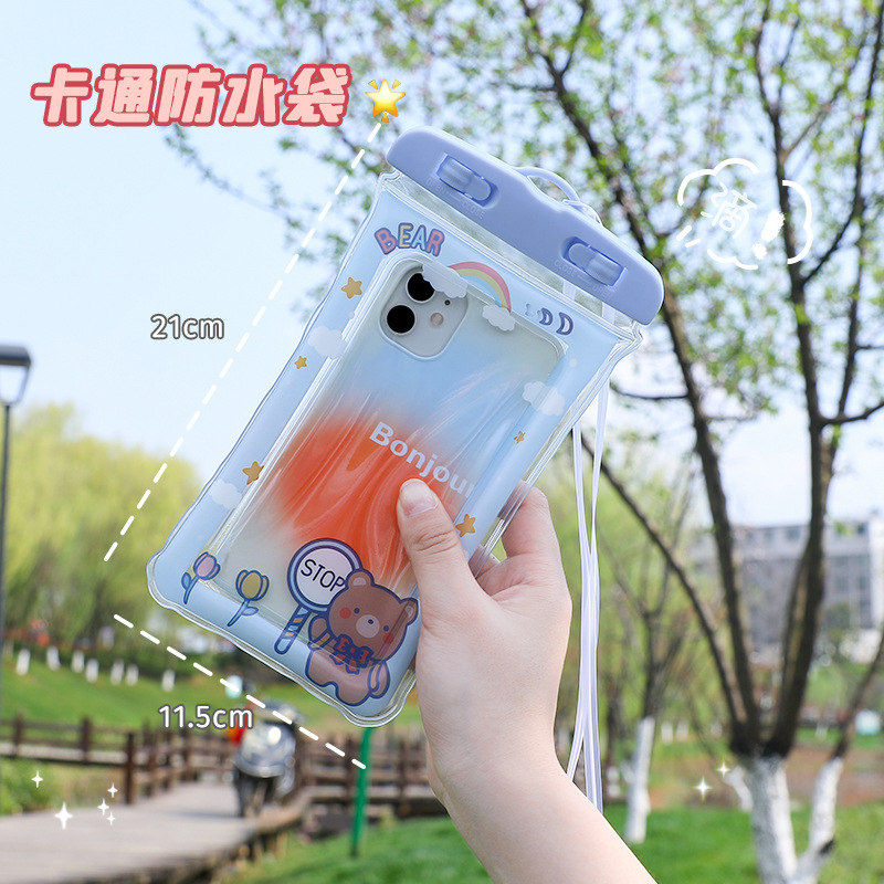 简约卡通手机防水袋 气囊漂浮可触屏保护套 漂流游泳手机袋子