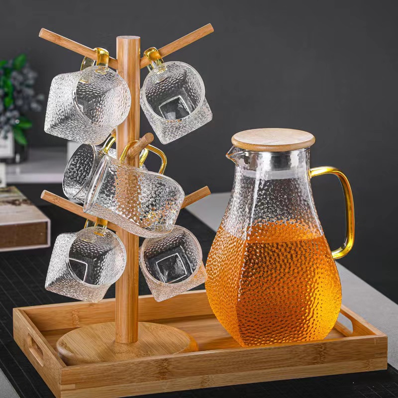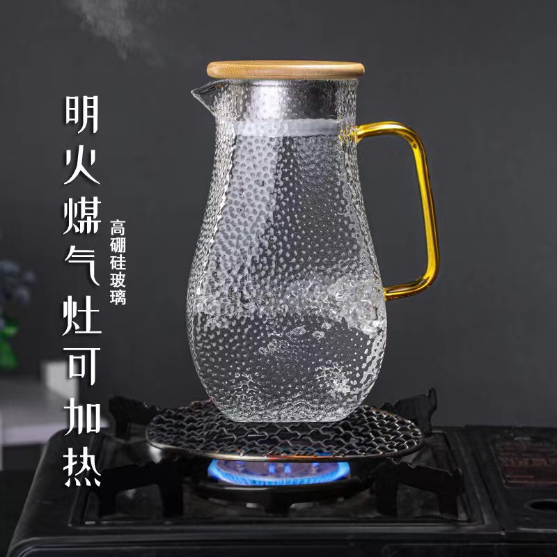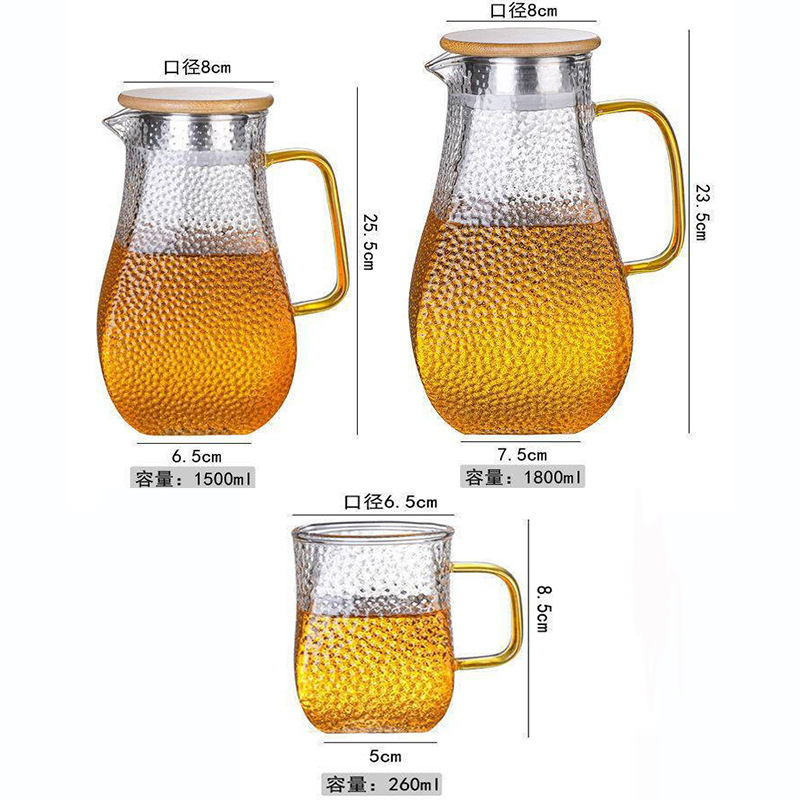高硼硅玻璃凉水壶大容量果汁壶厂家批发锤纹壶家用玻璃茶壶套装