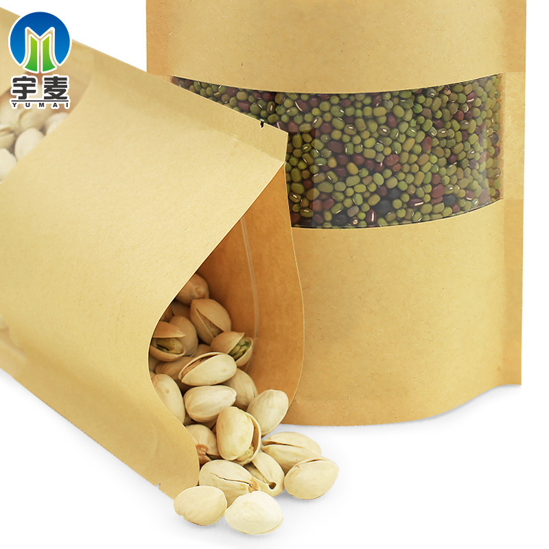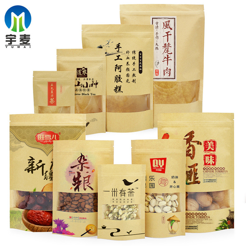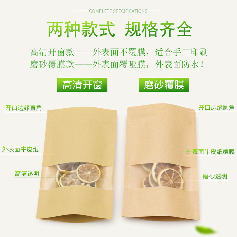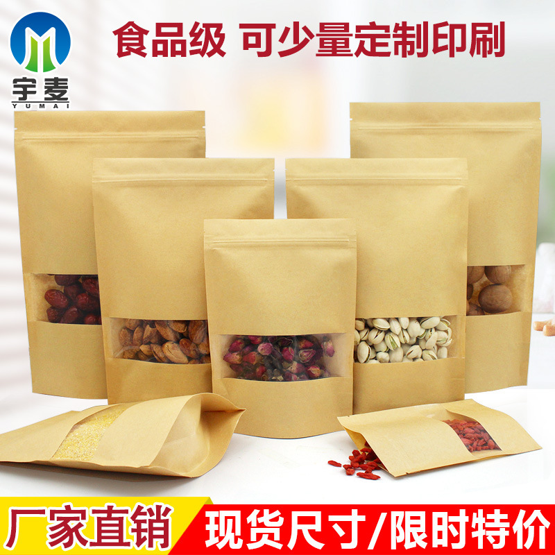 开窗透明牛皮纸自封袋印刷塑料坚果食品包装袋子茶叶密封牛皮纸袋