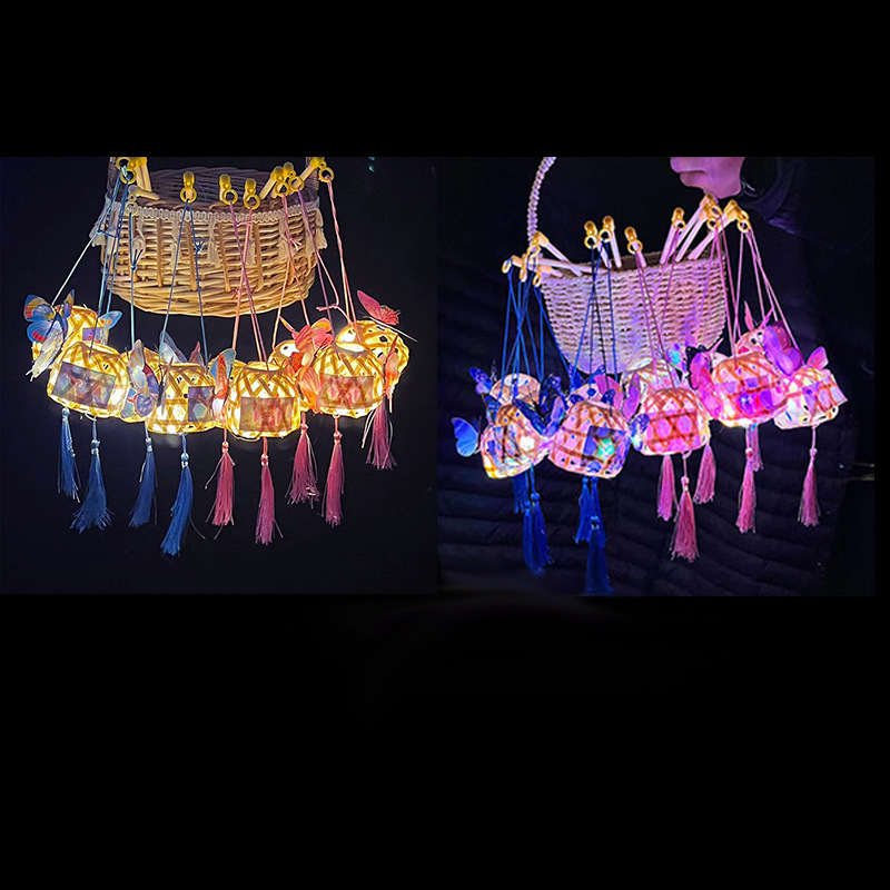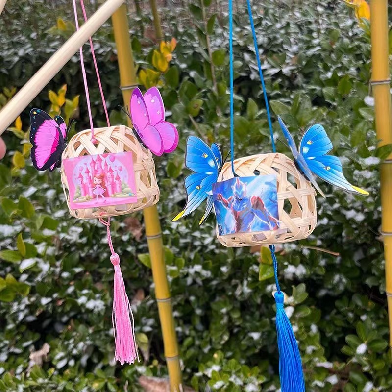 竹编发光蝴蝶灯笼夜市摆地摊发光古风小商品灯笼爆款手工编织花灯