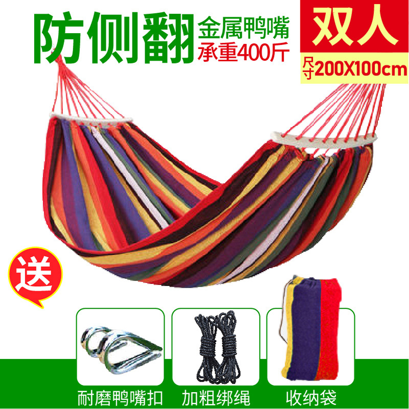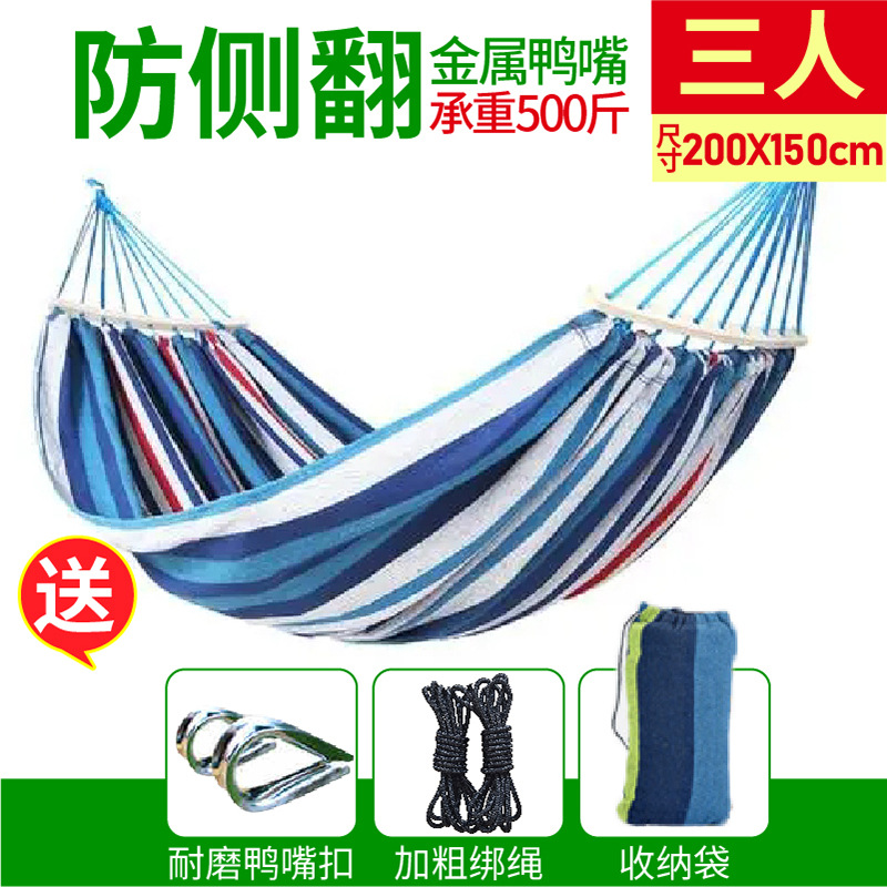 吊床户外野营休闲帆布加厚防侧翻鸭嘴扣吊床旅游用品秋千现货批发