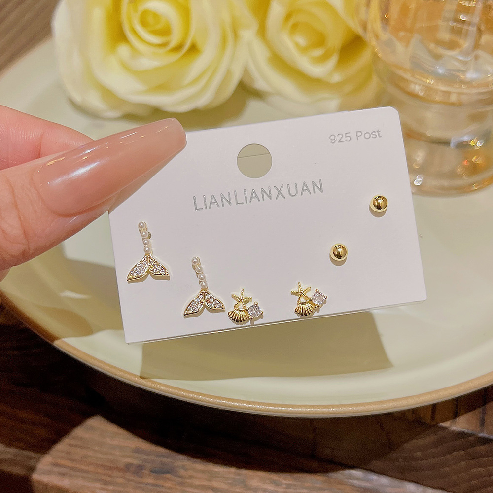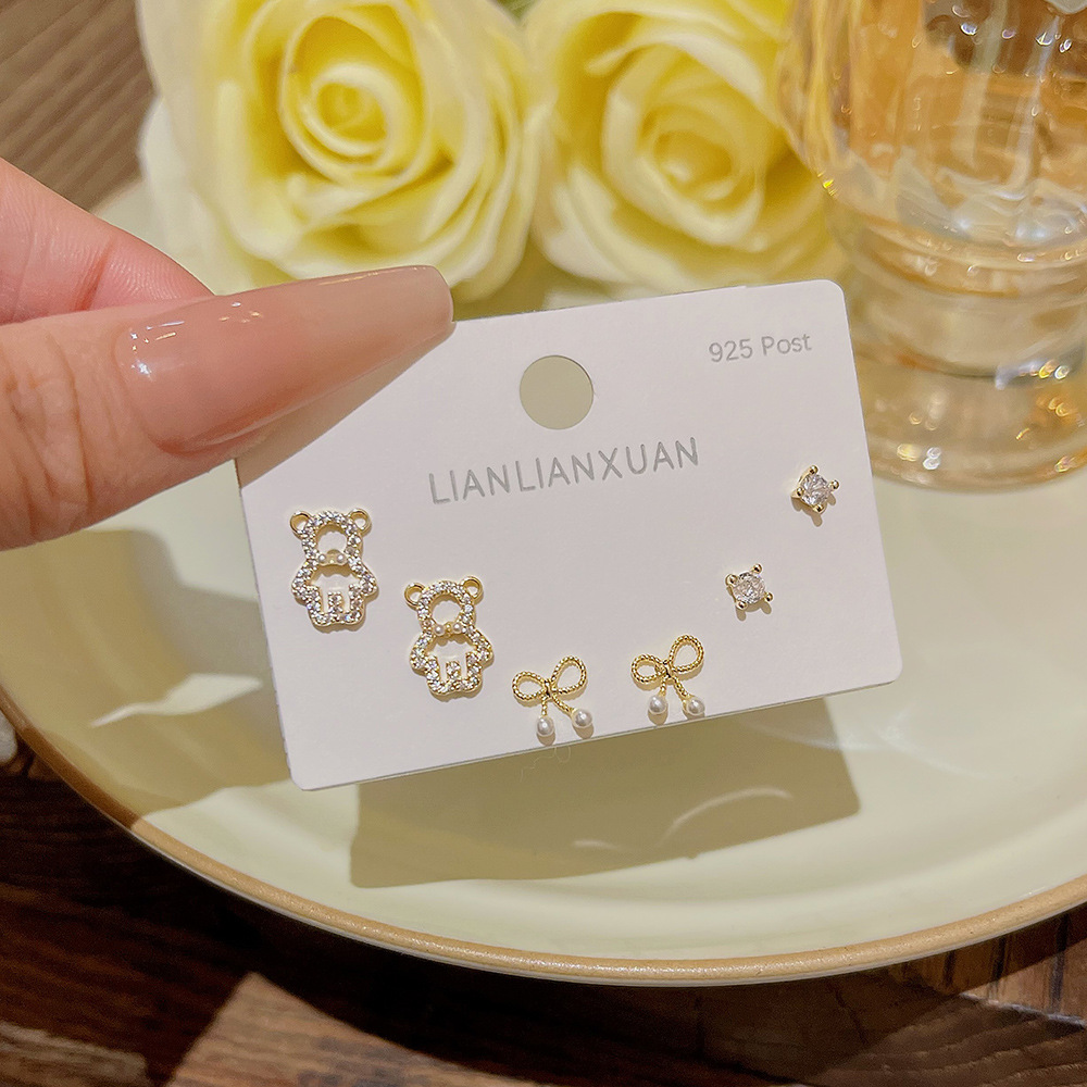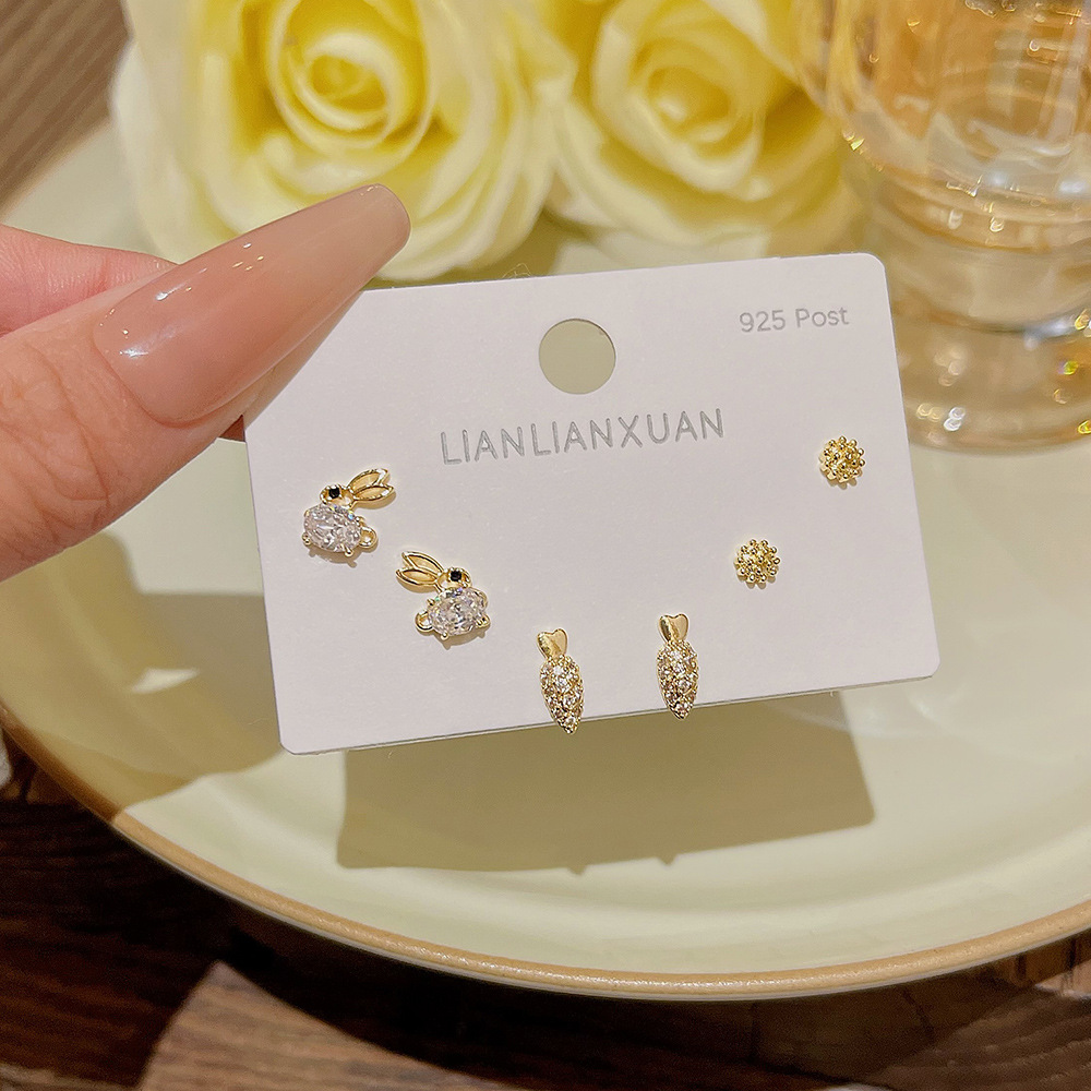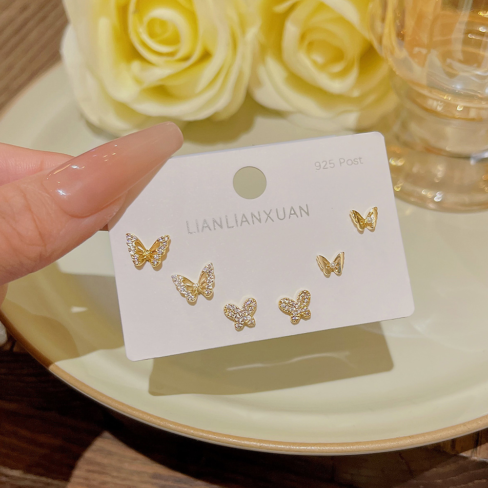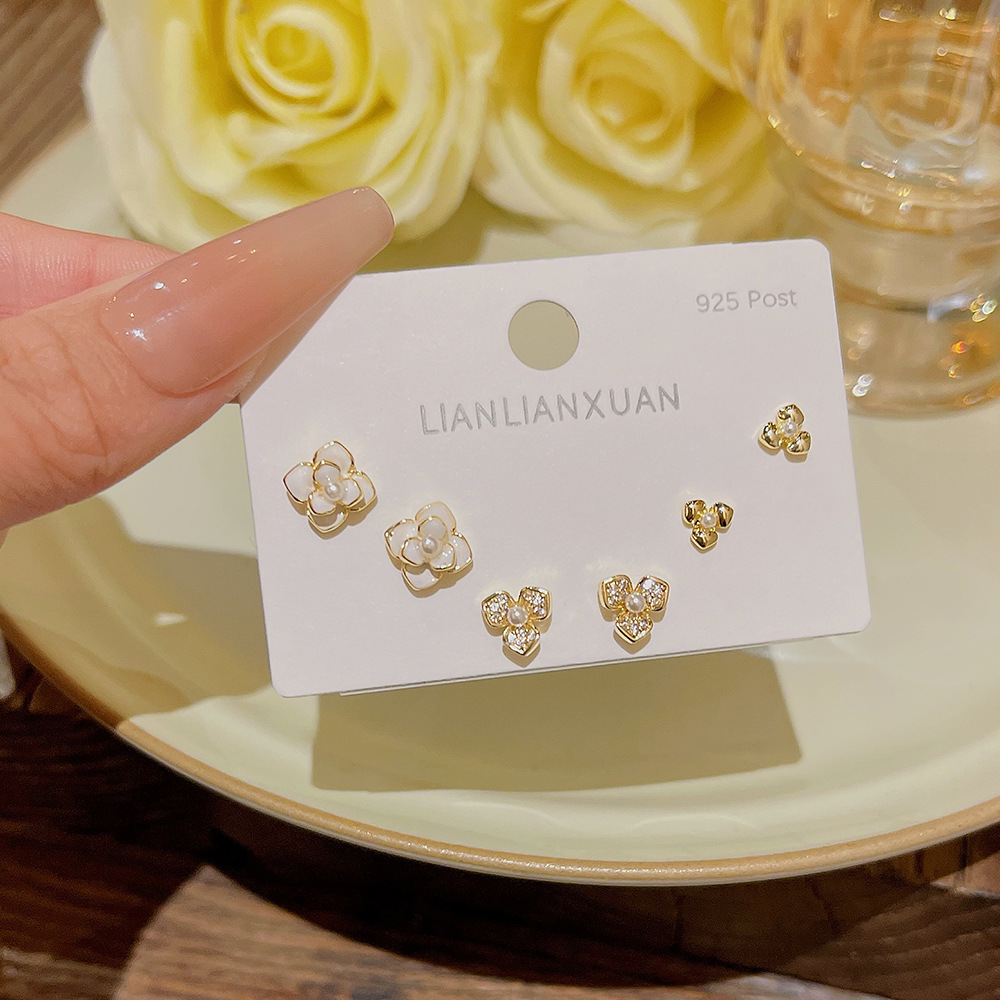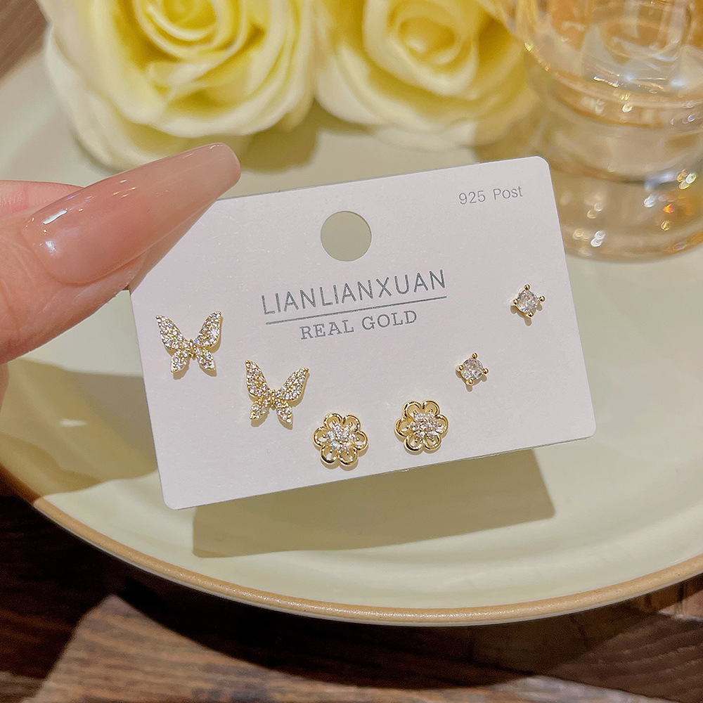 S925银针轻奢套装耳钉高级感铜微镶一卡三对耳环气质爆款小众耳饰