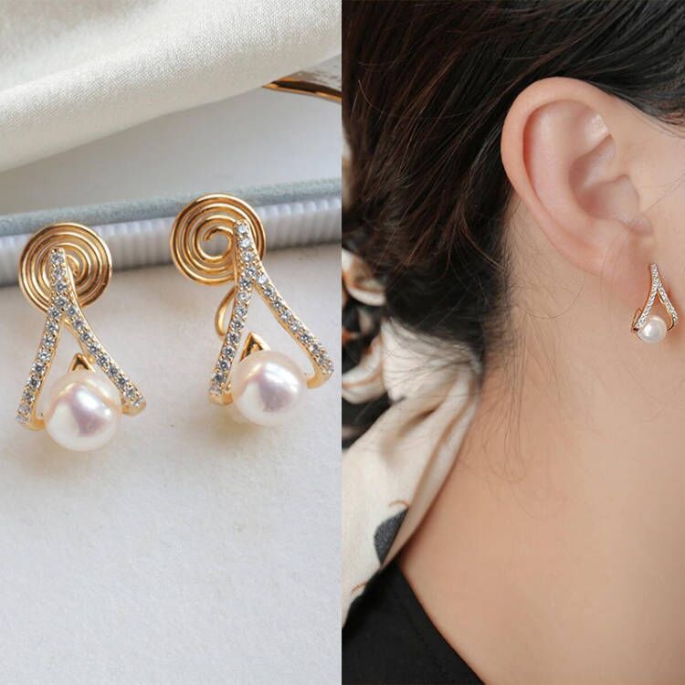 蚊香盘耳夹女无耳洞珍珠耳环女气质高级感复古耳饰精致耳钉女批发