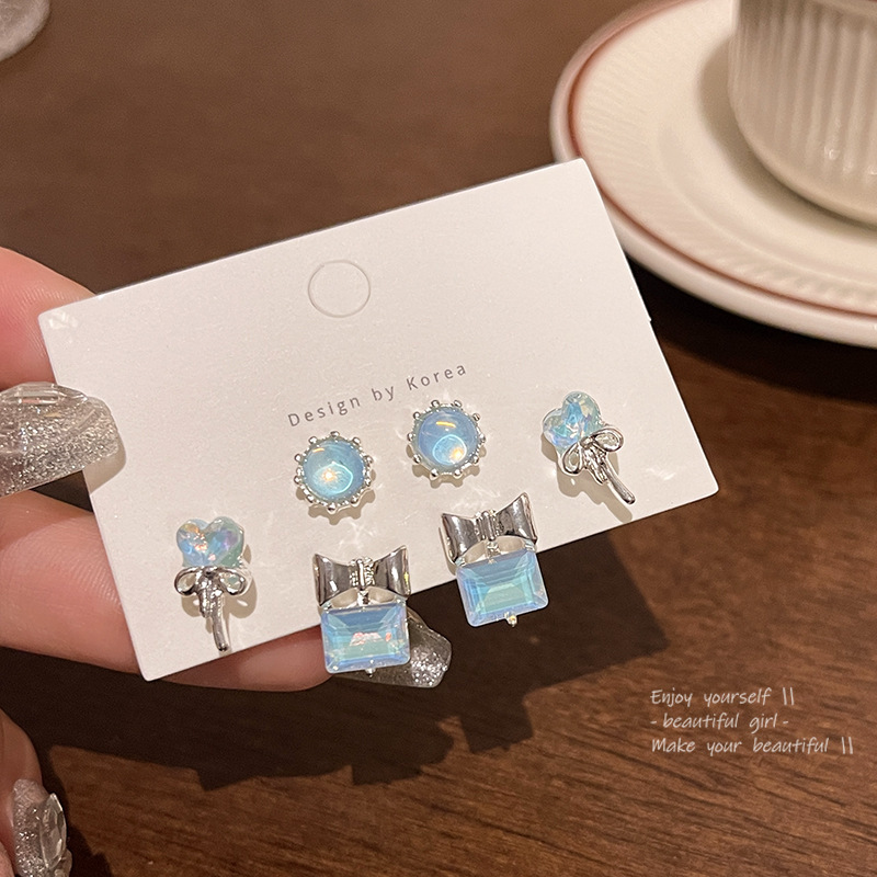 S925银针精致锆石养耳套装小耳钉轻奢小众百搭气质珍珠耳环女耳饰
