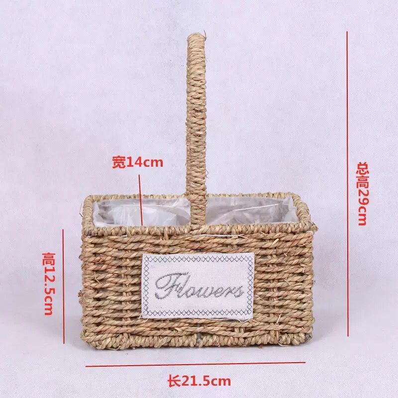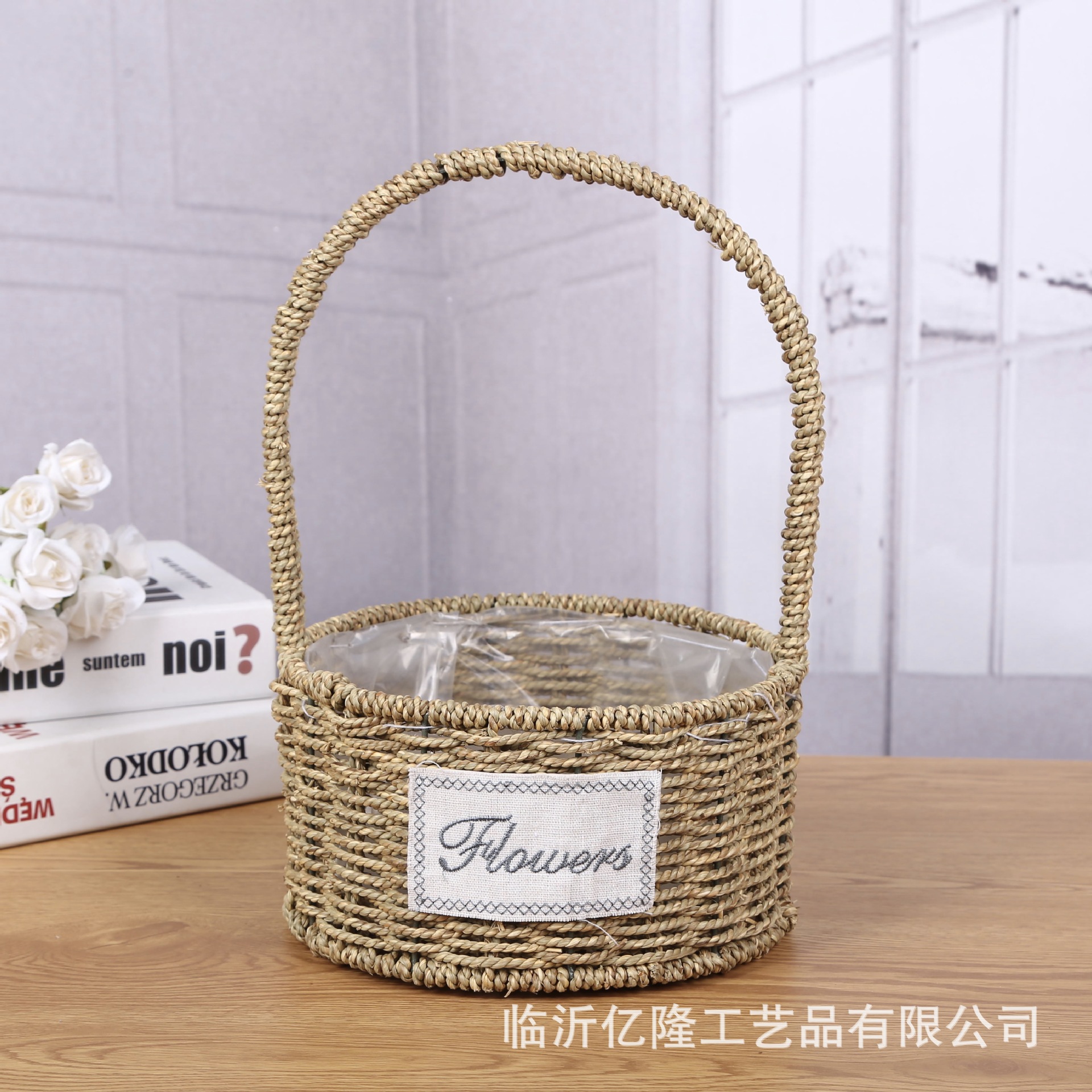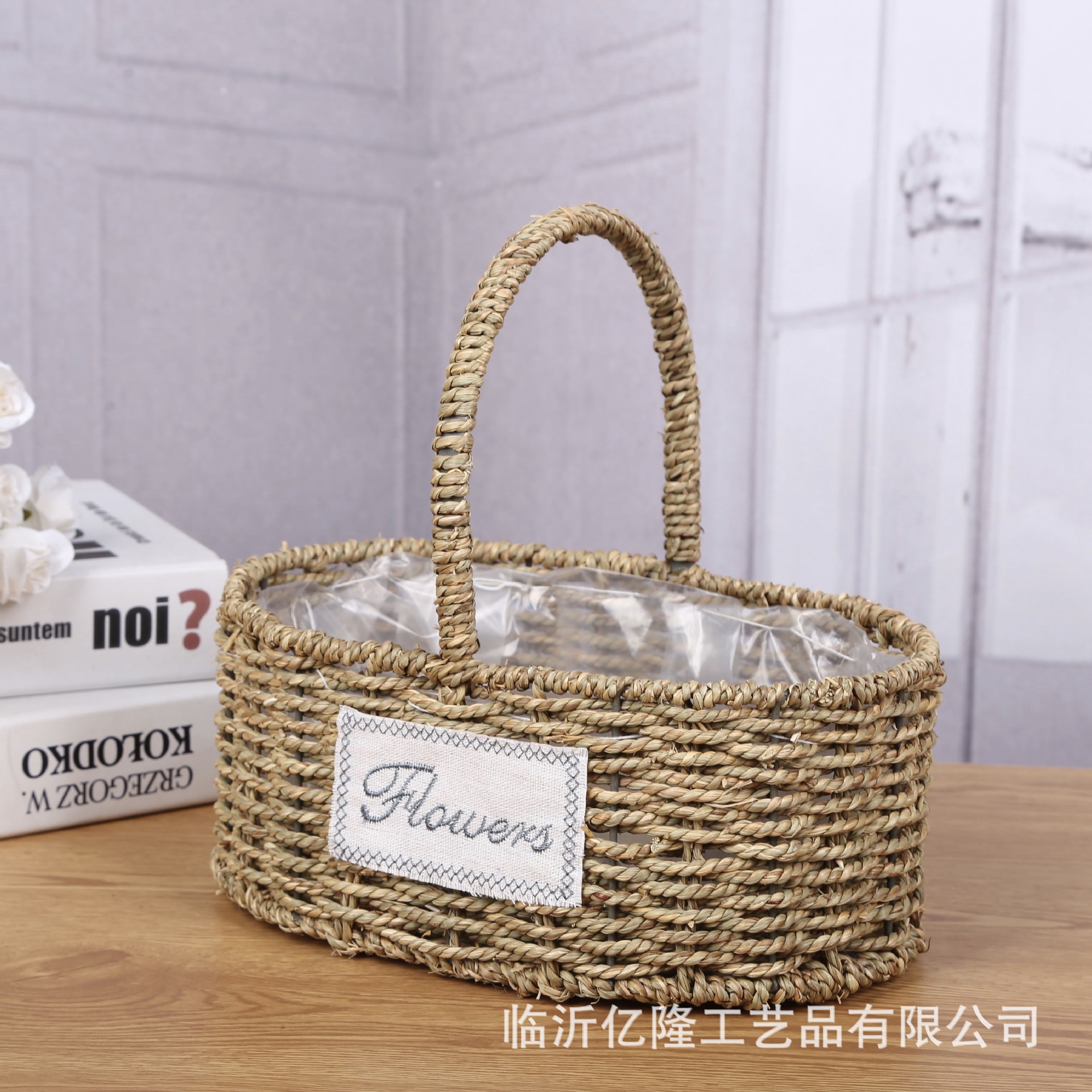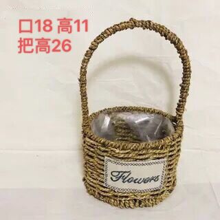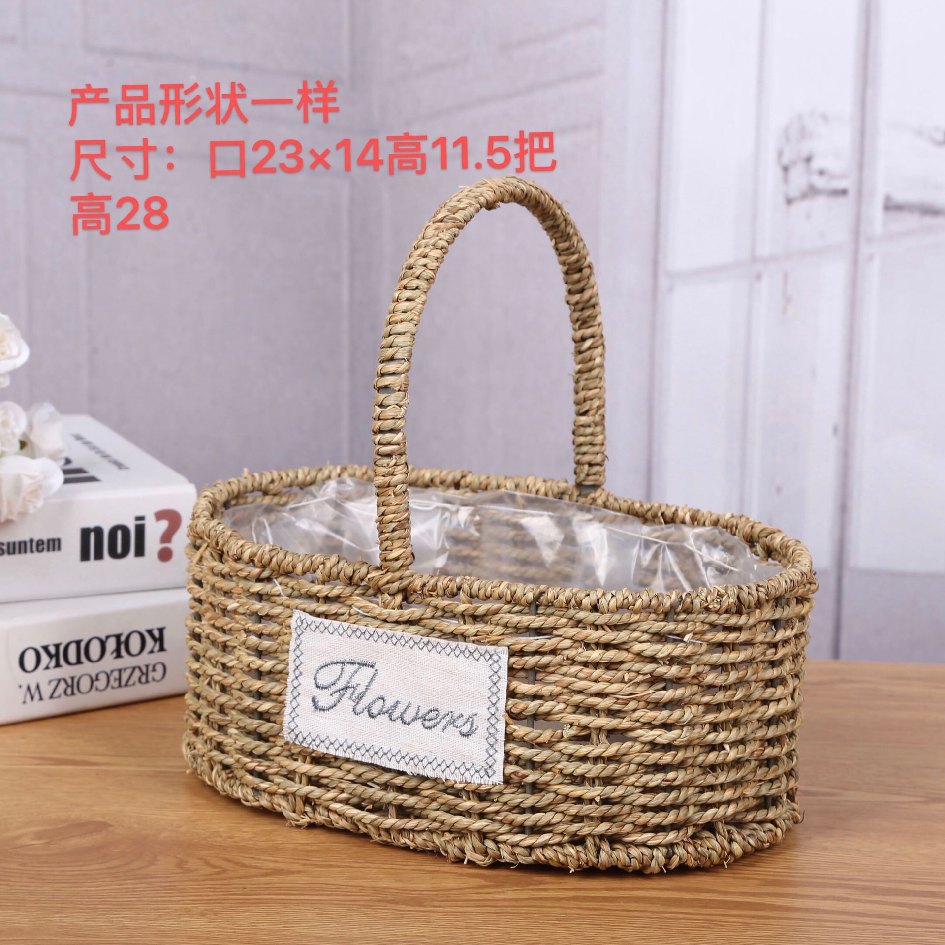 厂家批发草编花篮 田园多肉花盆手工编织ins家居复古手提小花篮