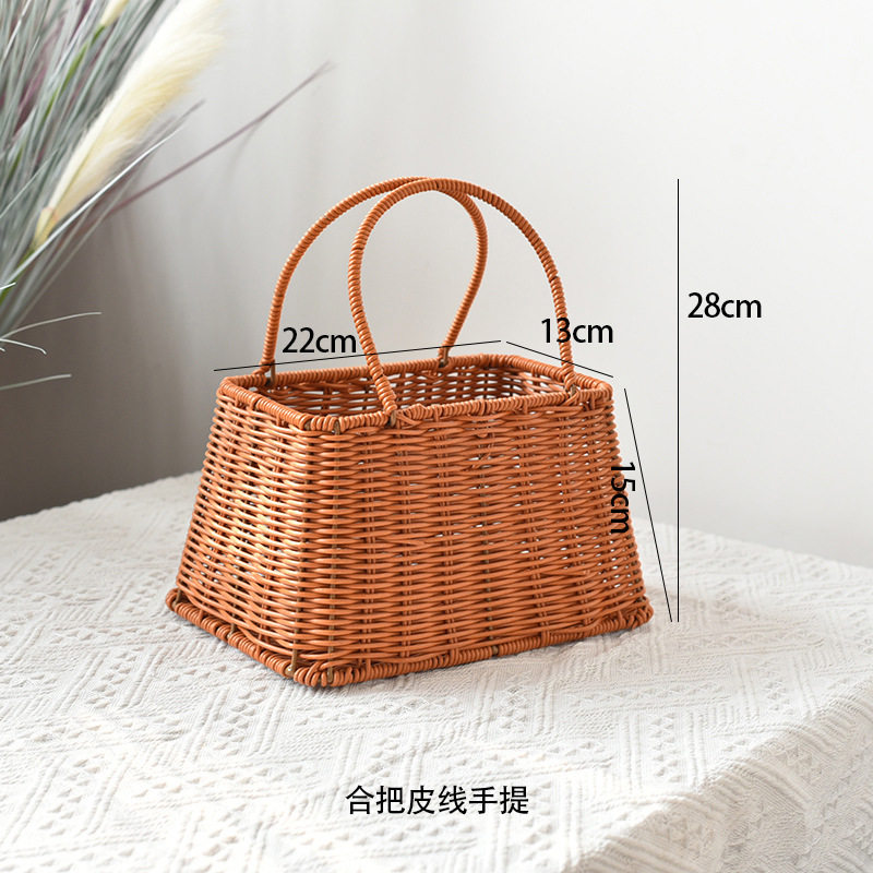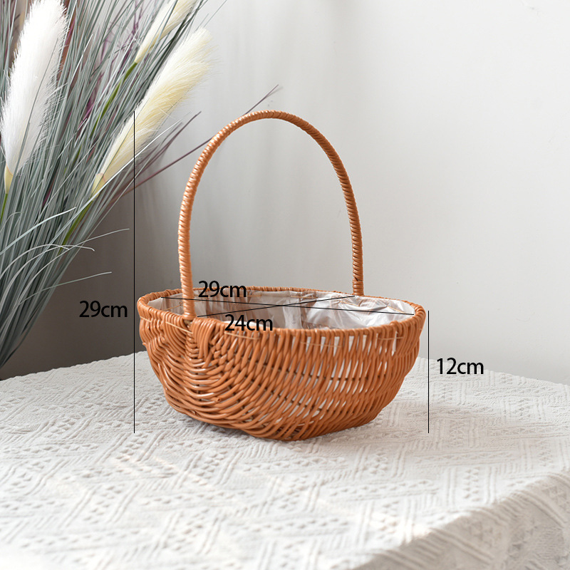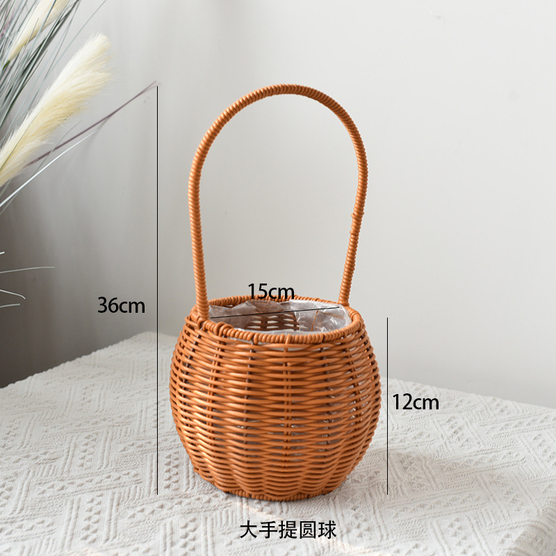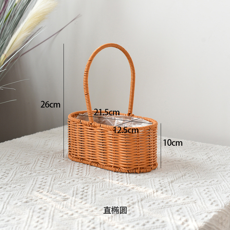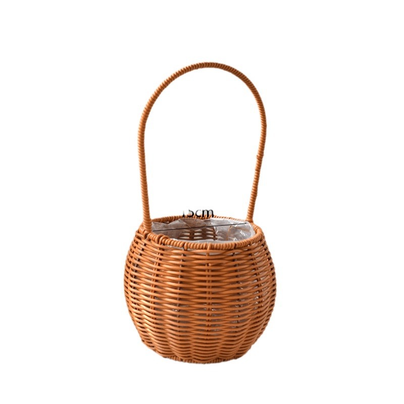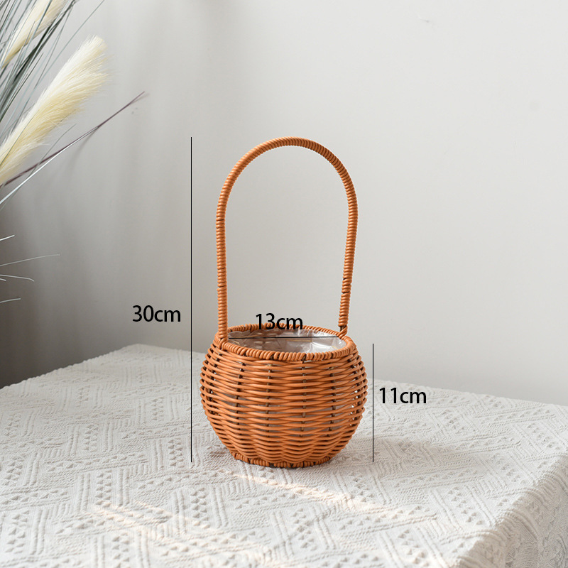 田园风手工编织手提花篮铁艺收纳篮子手礼竹篮手提插花篮藤编干花