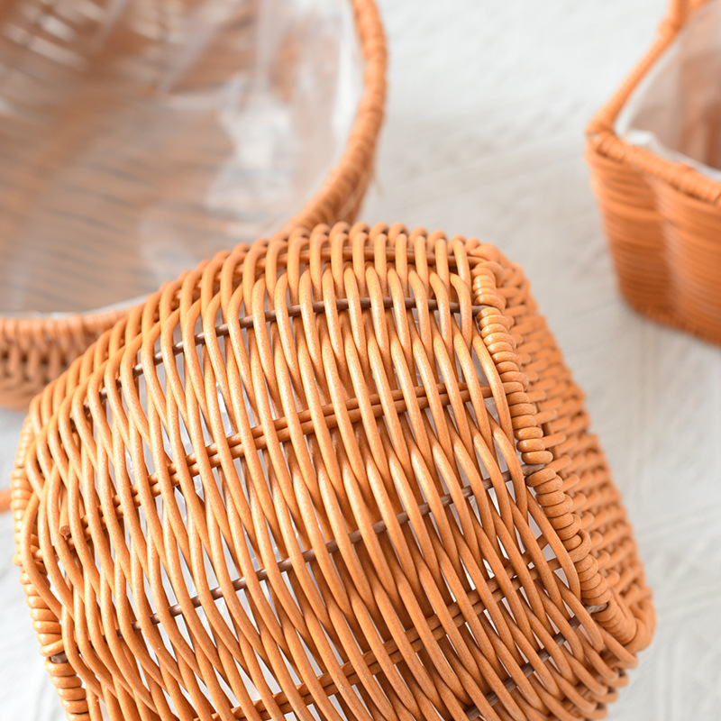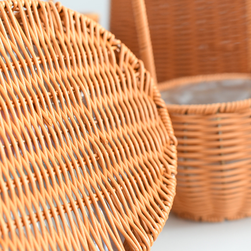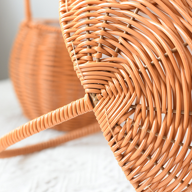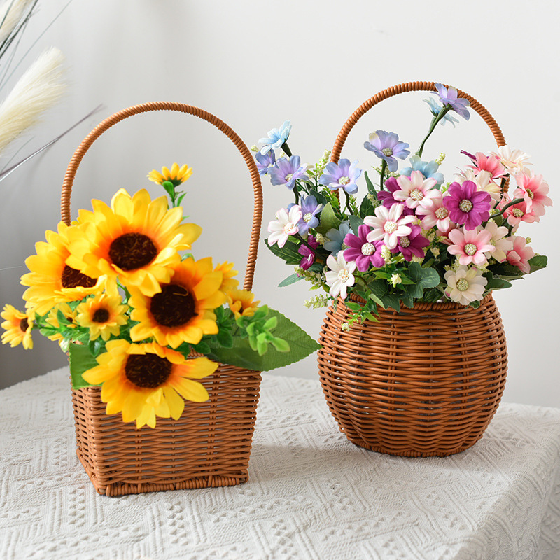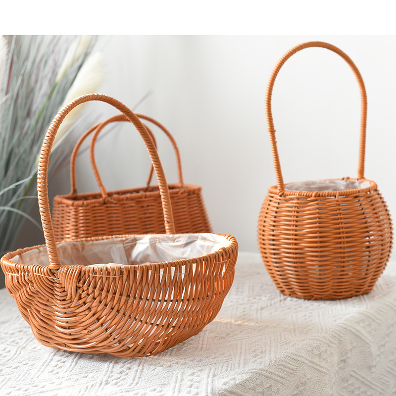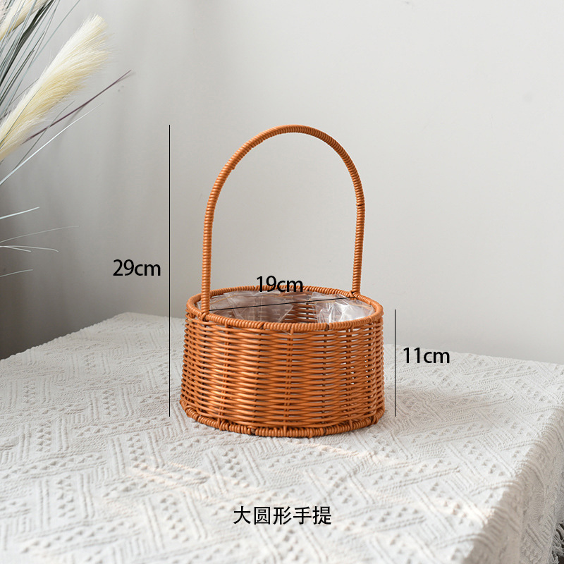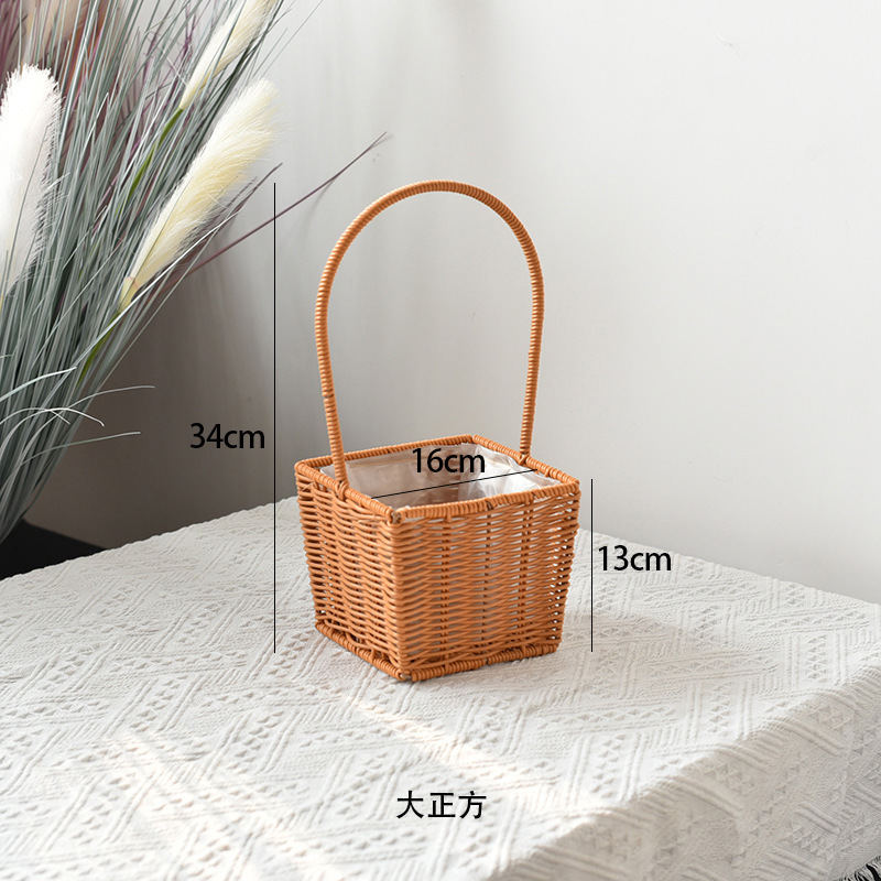 田园风手工编织手提花篮铁艺收纳篮子手礼竹篮手提插花篮藤编干花