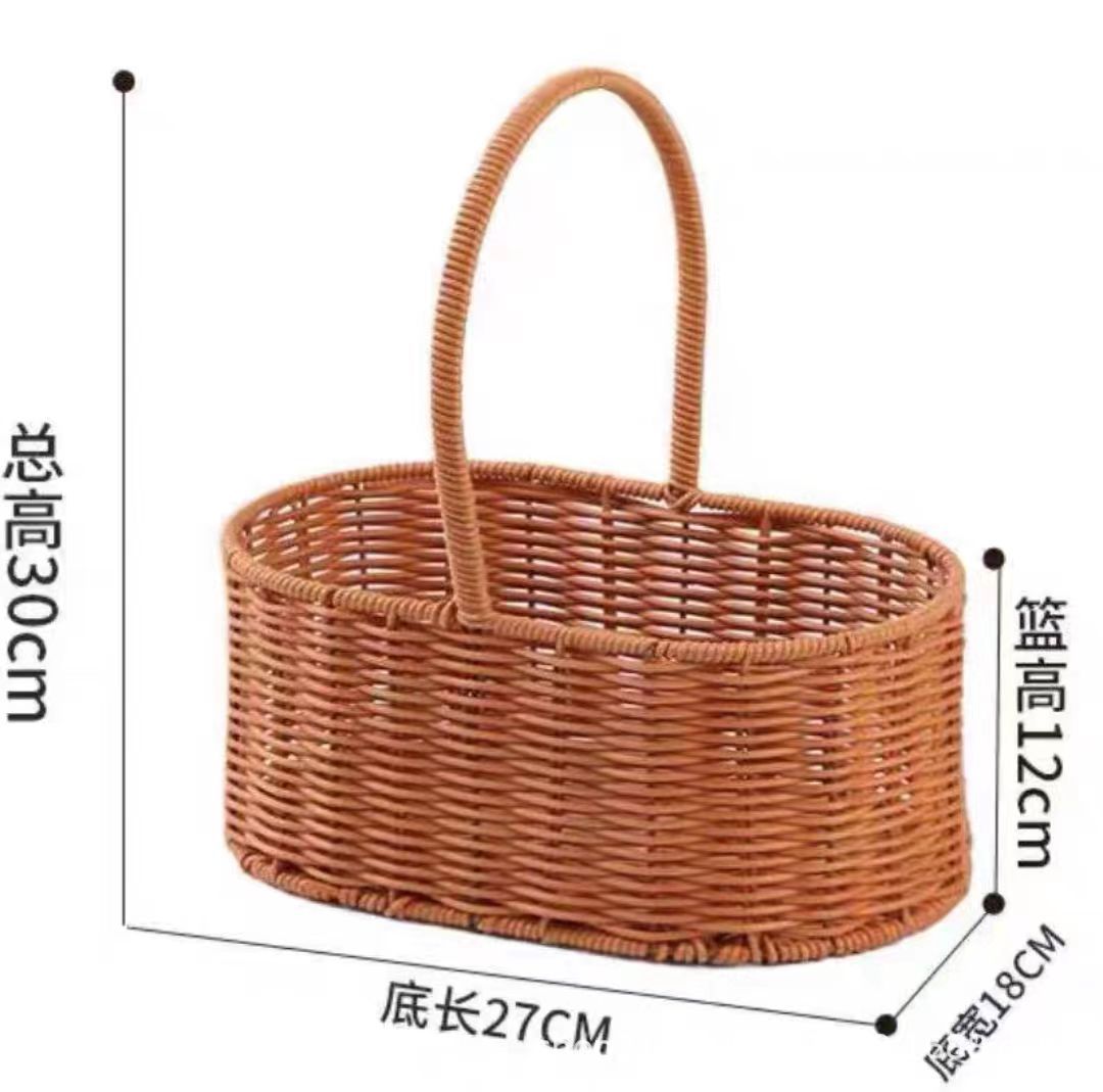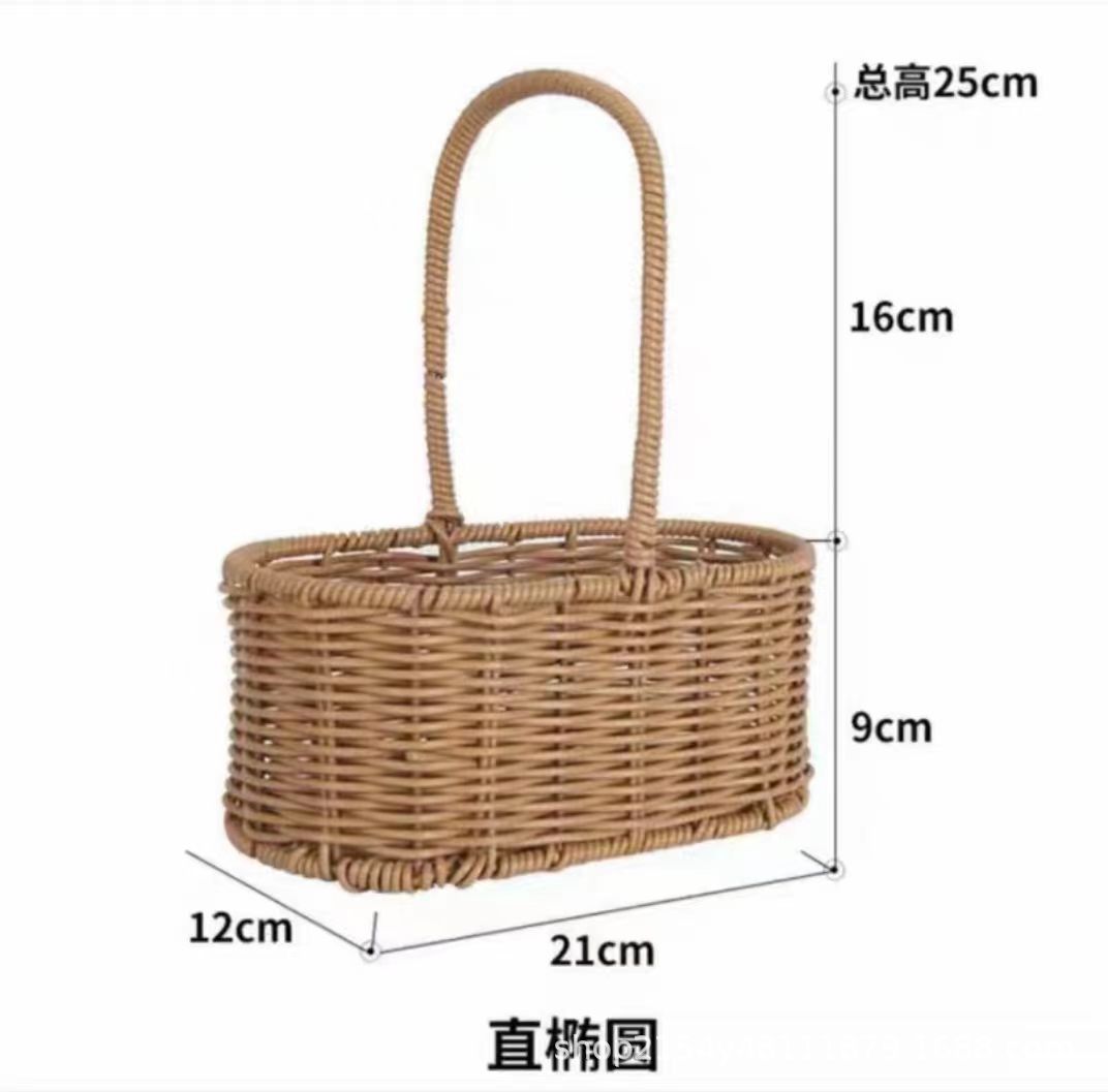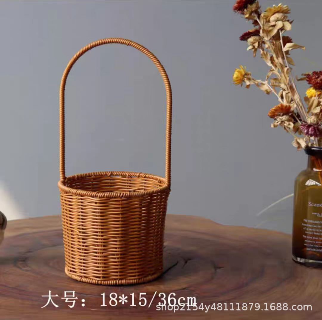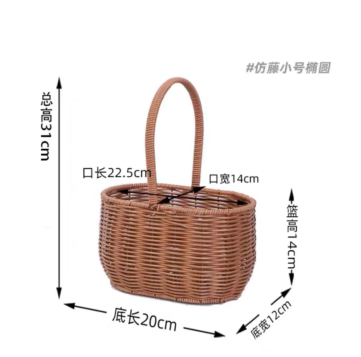 仿藤条手工编织花篮田园风系列塑料藤编手提篮绿植小花篮装饰摆件