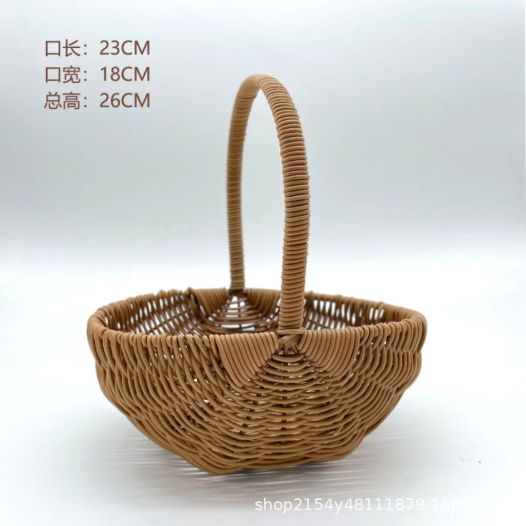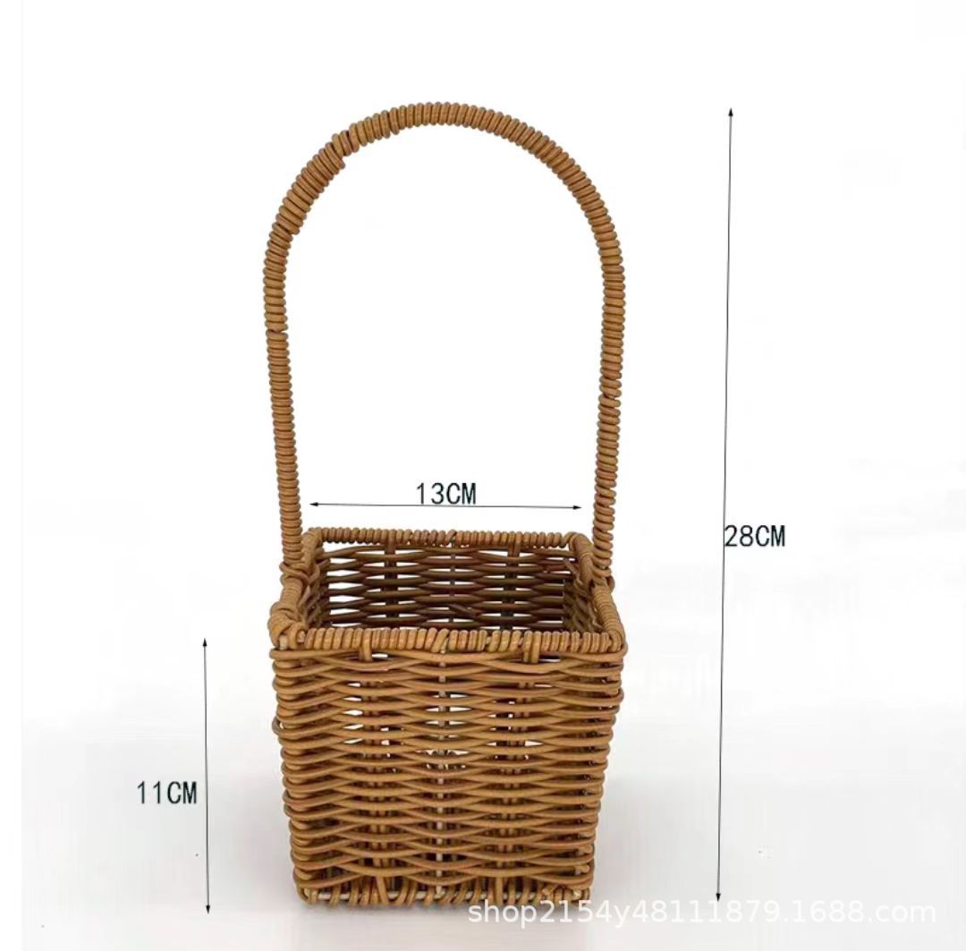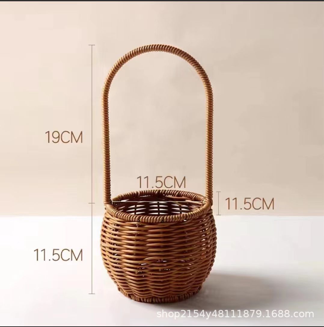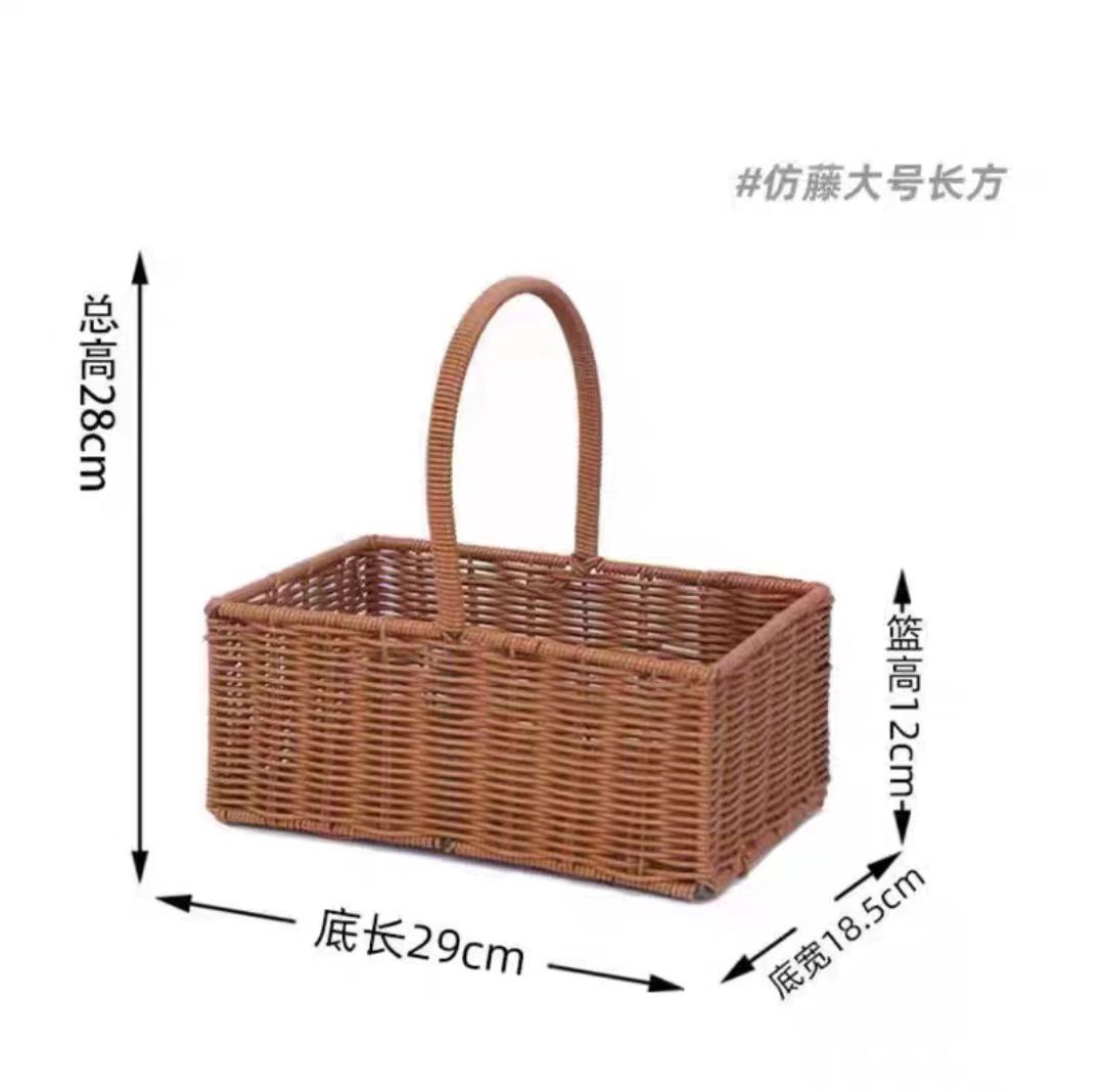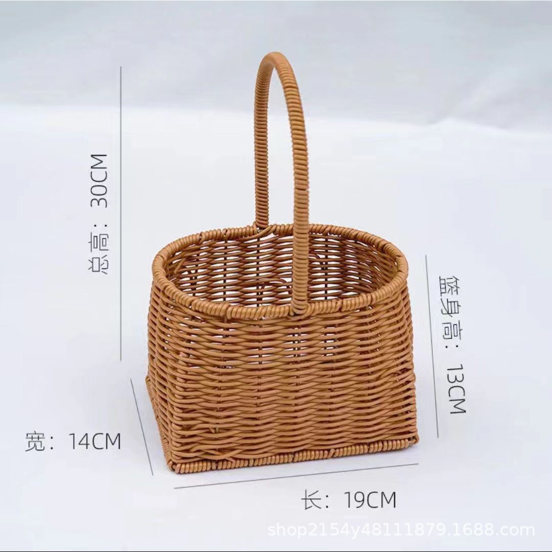 仿藤条手工编织花篮田园风系列塑料藤编手提篮绿植小花篮装饰摆件