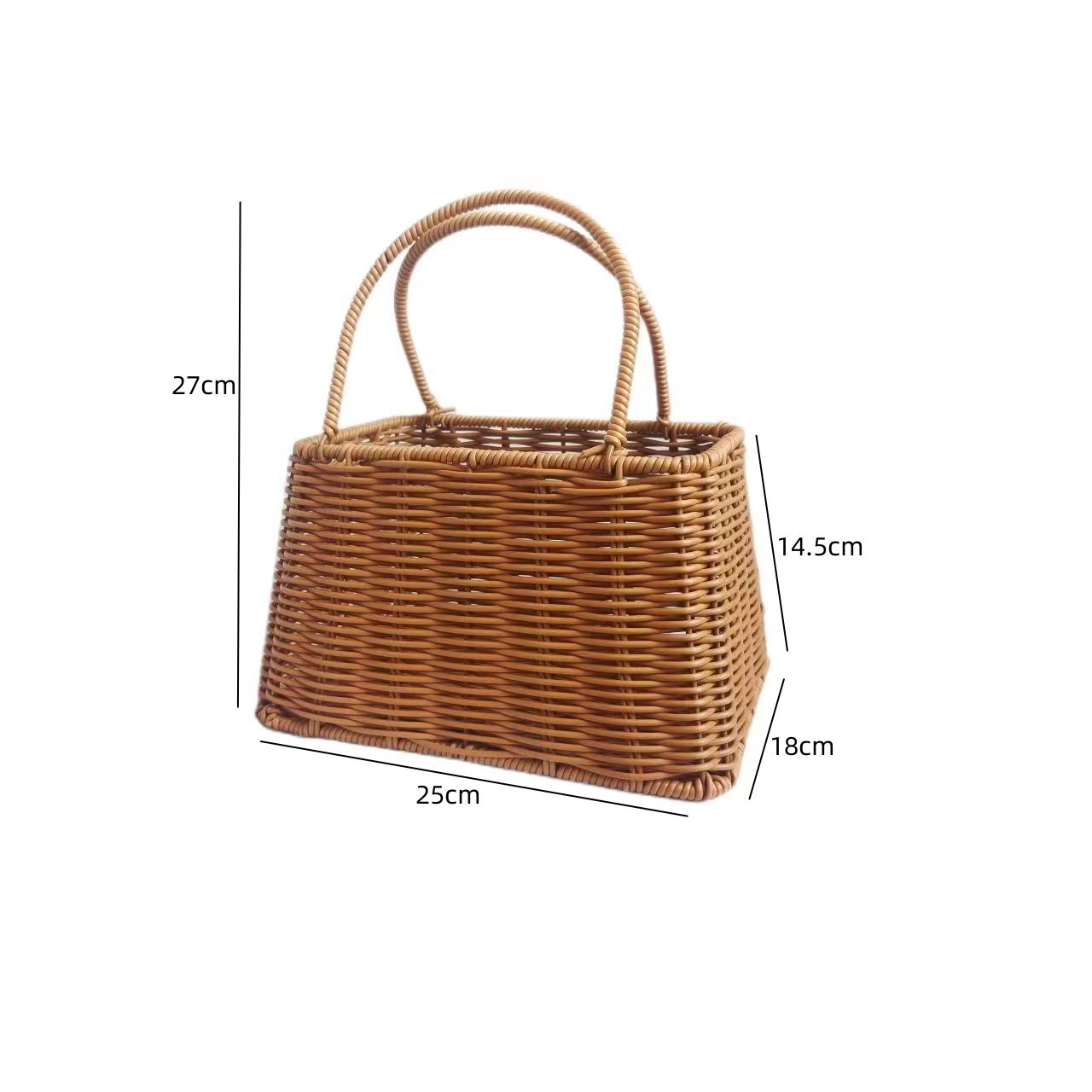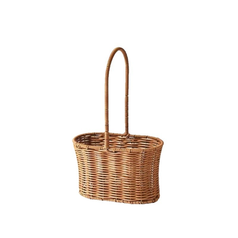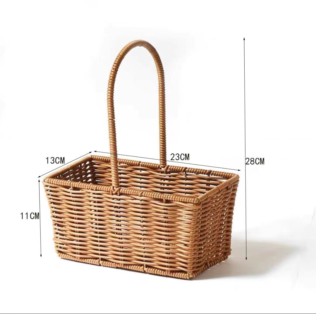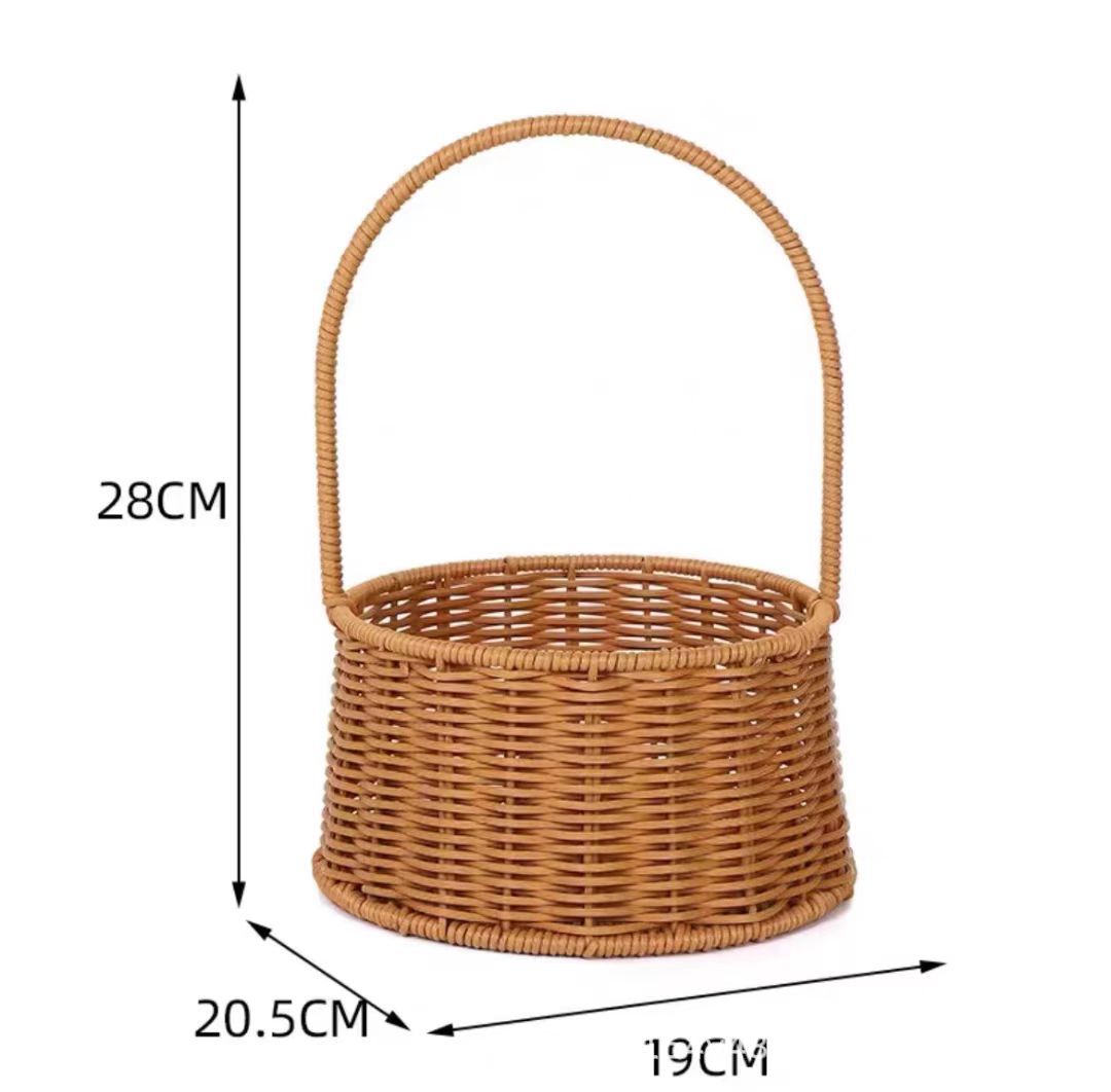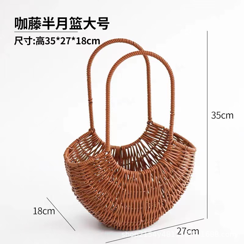 仿藤条手工编织花篮田园风系列塑料藤编手提篮绿植小花篮装饰摆件