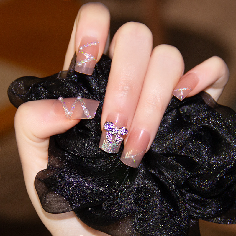 法式穿戴甲爆闪蝴蝶手工穿戴式美甲成品穿戴甲片批发24片源头工厂