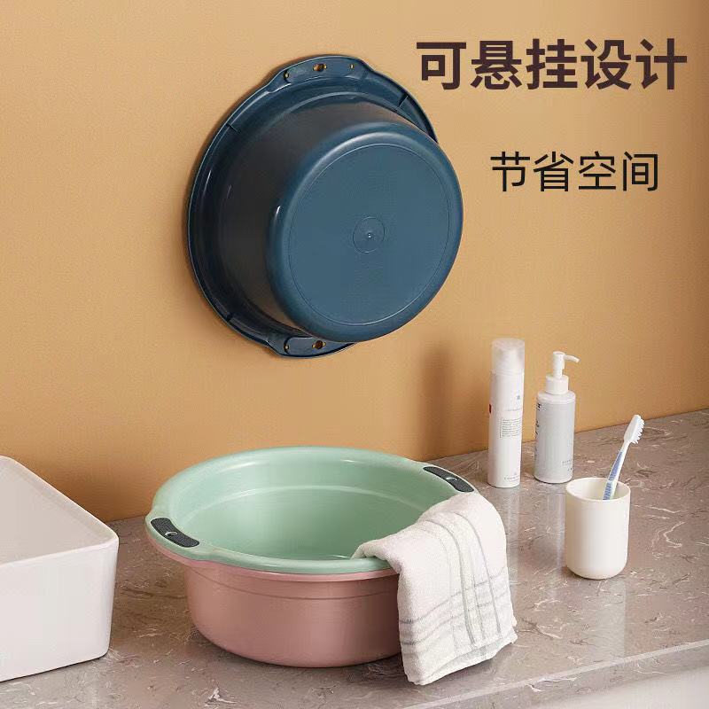家用洗脸盆加厚打孔塑料脸盆可悬挂洗菜盆撞色学生宿舍洗衣盆批发