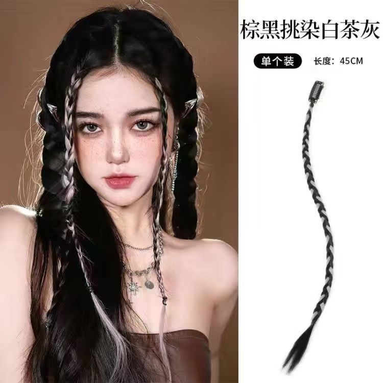 拳击辫假发女y2k辣妹双马尾小辫子网红同款挑染麻花辫发饰脏辫女