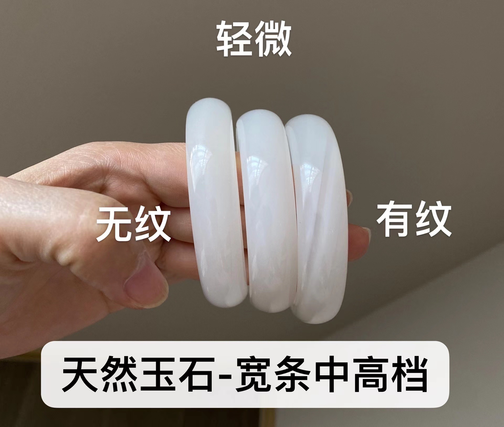 分为有纹,轻微 ,无纹的对比实拍图,另外要说明的是无纹不代表没有纹路,天然玉石都有纹路,只有合成的没有纹理,只是有些肉眼看不清楚,但在灯光下都会有的纹理都属正常,介意者慎拍。