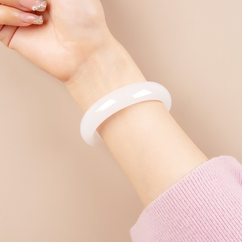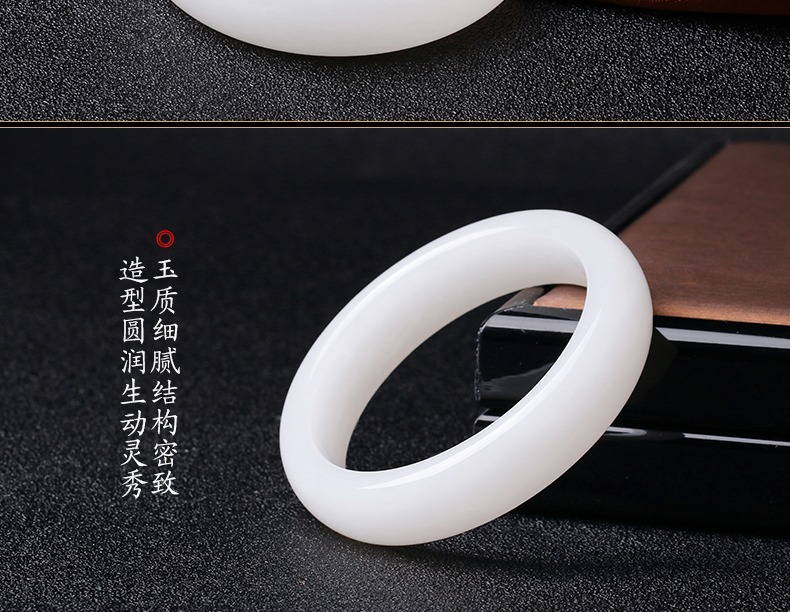 阿富汗玉手镯汉白玉镯子宽美人镯女羊脂白包证书天然冰透盒装厂家