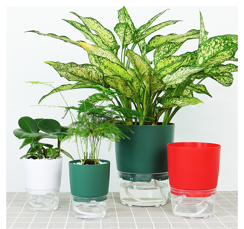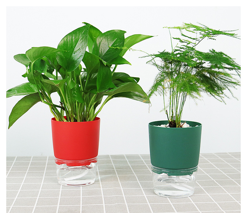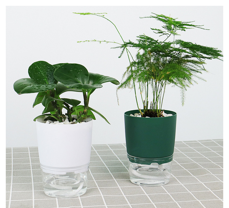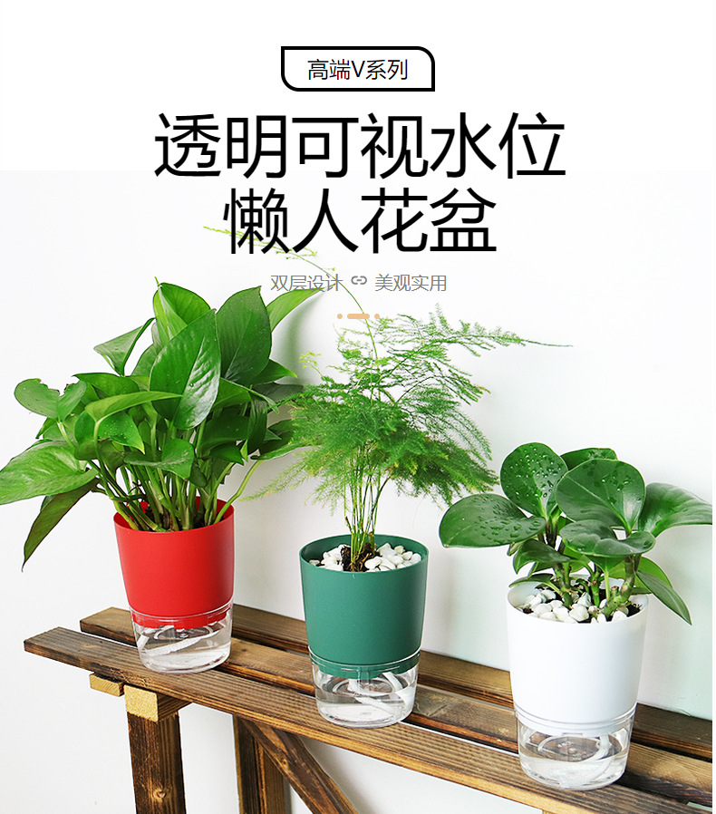 透明塑料花盆创意双层储水懒人自动吸水绿萝盆栽花盆圆形大号批发