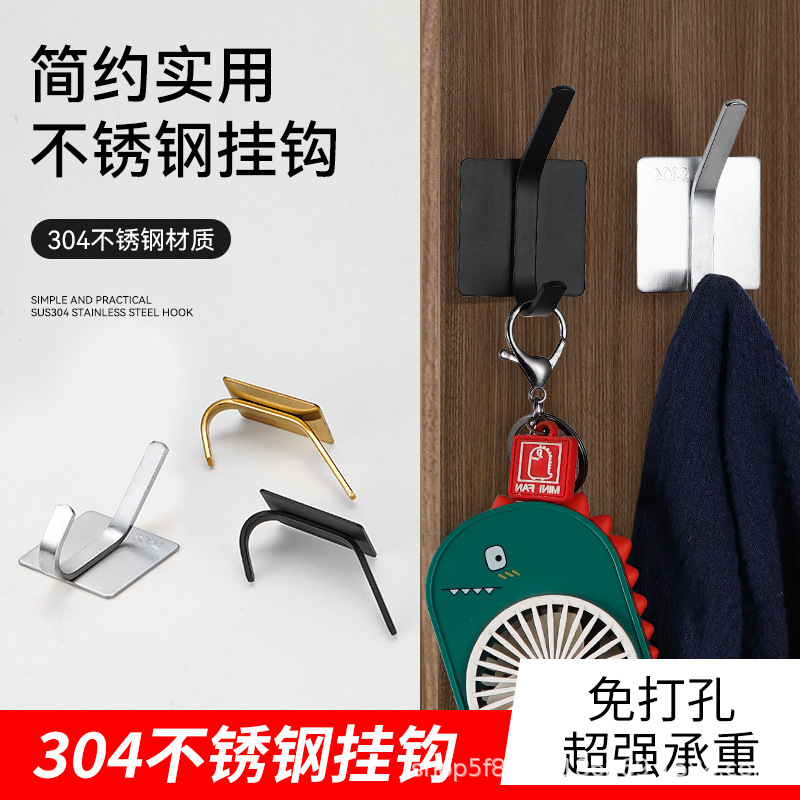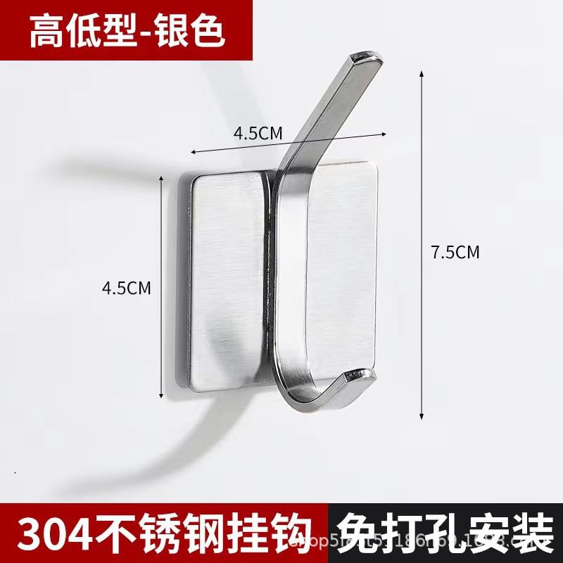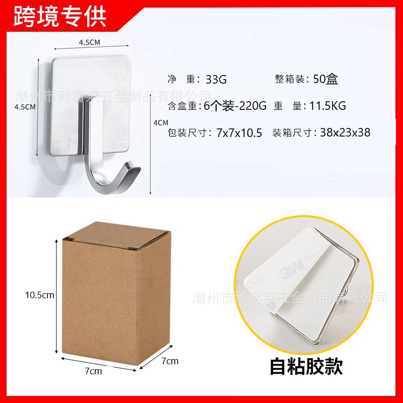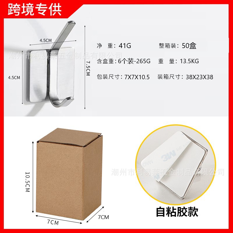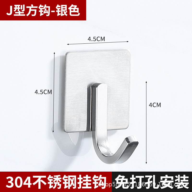 跨境挂钩304不锈钢厨房挂勾免打孔浴室挂衣钩金属强力无痕自粘粘