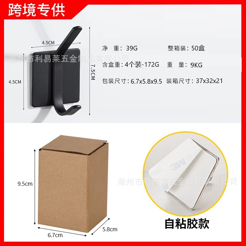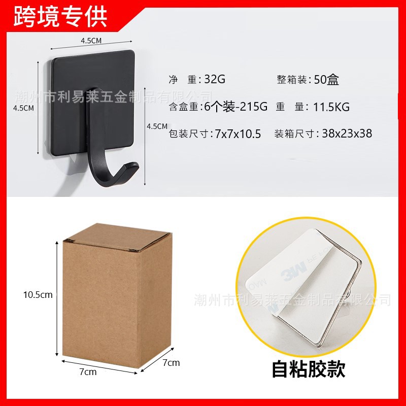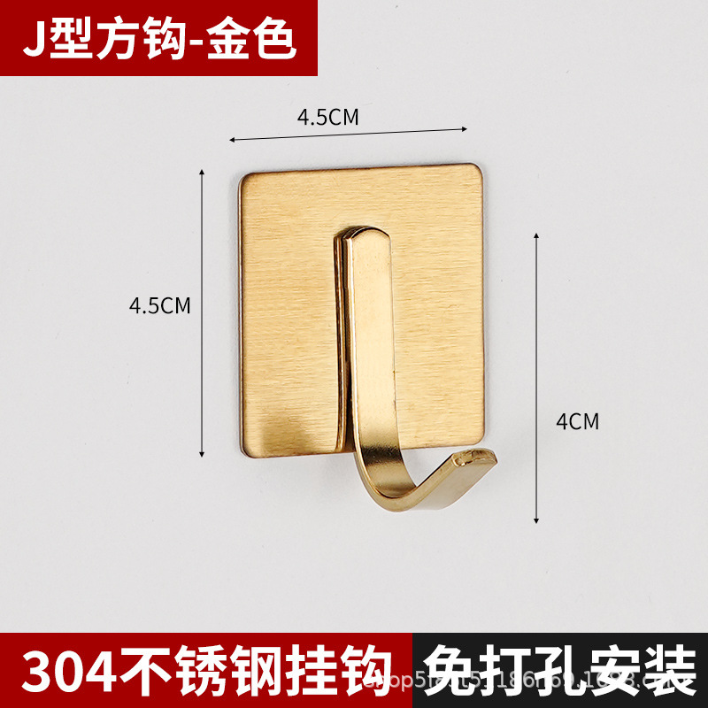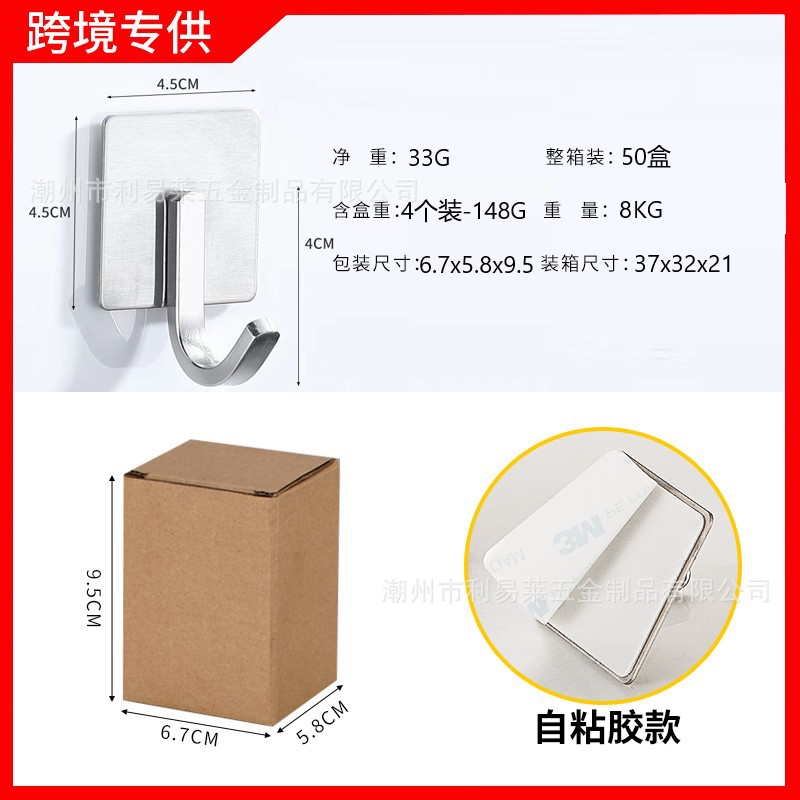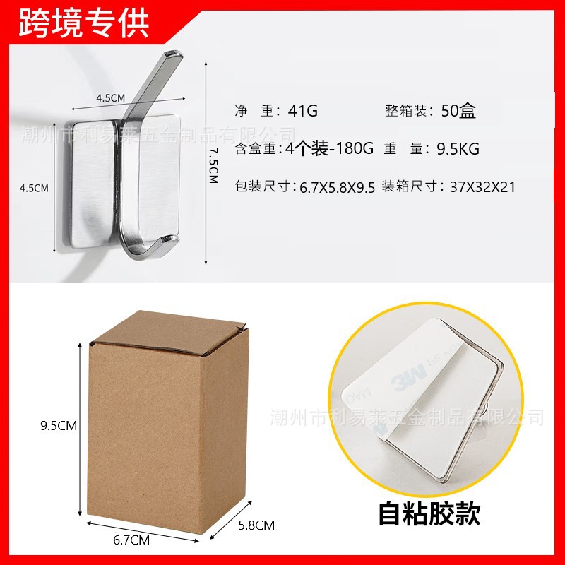 跨境挂钩304不锈钢厨房挂勾免打孔浴室挂衣钩金属强力无痕自粘粘