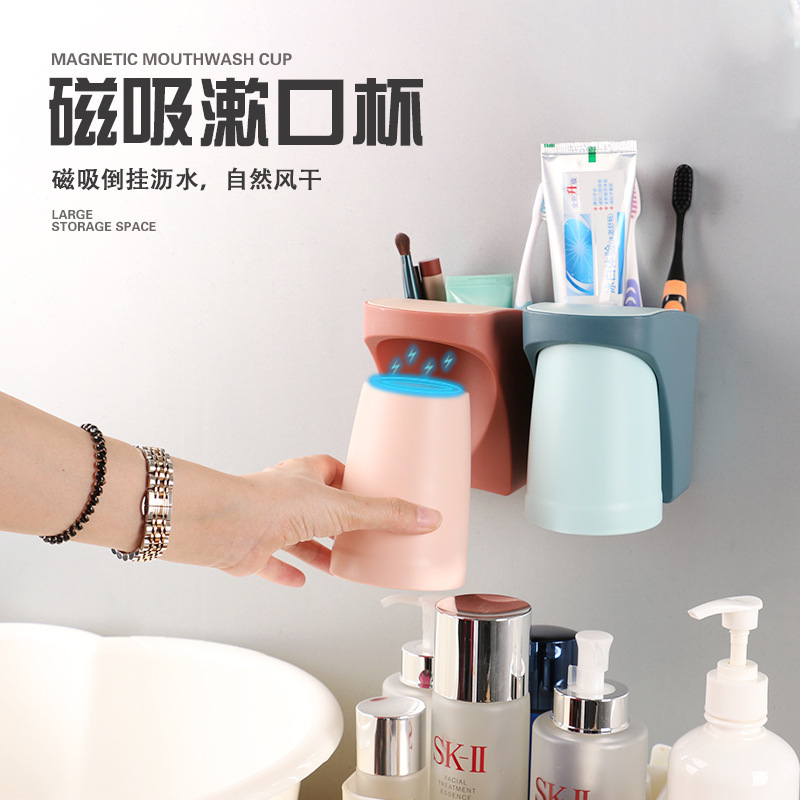 牙刷架免打孔网红家用刷牙杯漱口杯套装卫生间壁挂电动牙刷置物架