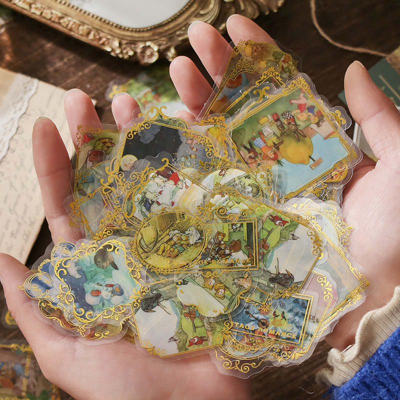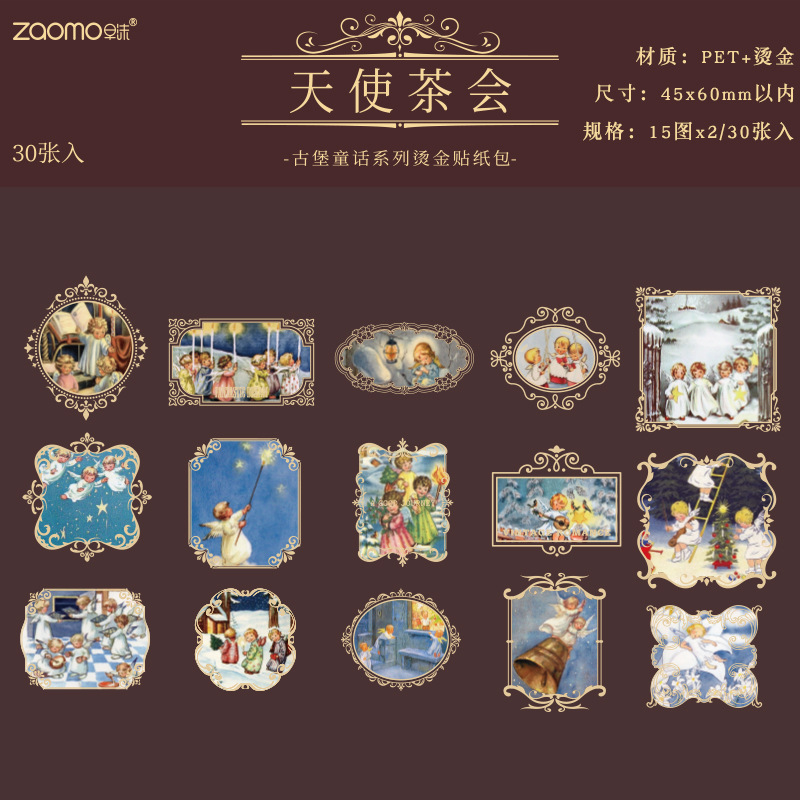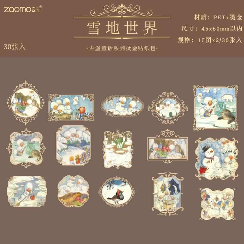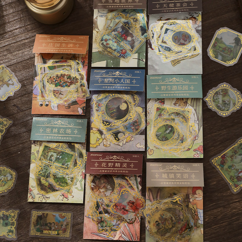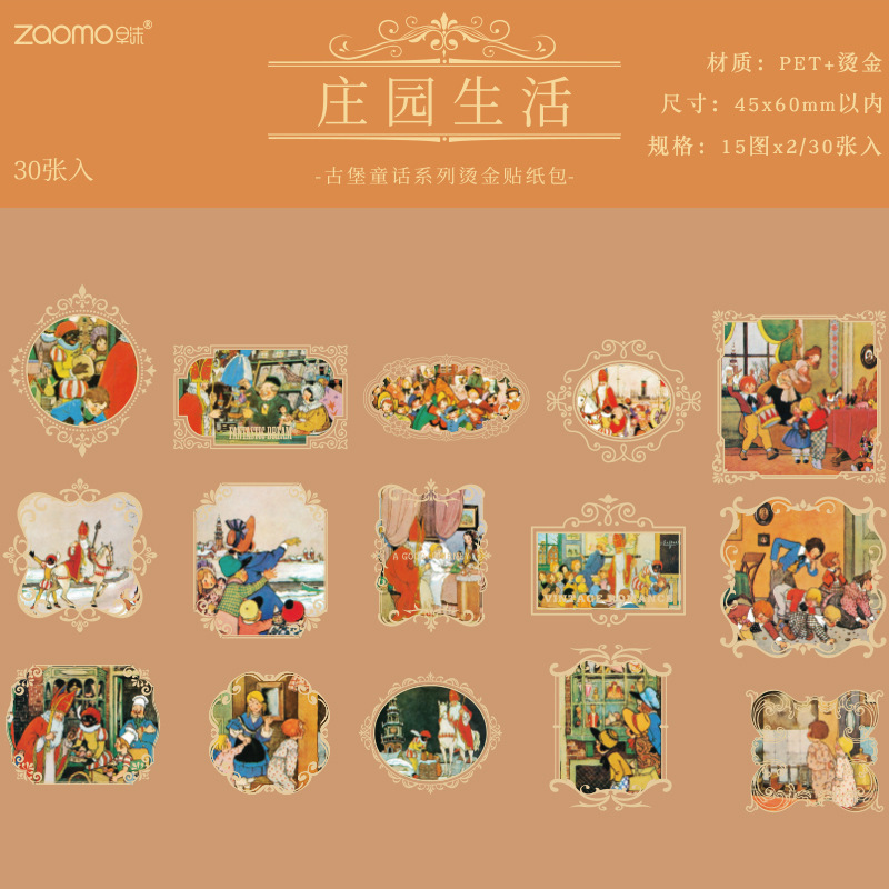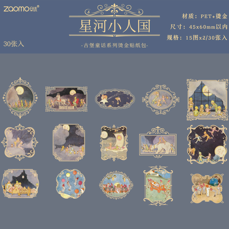 早沫烫金贴纸包 古堡童话系列 创意文艺复古拼贴造景DIY贴纸 8款