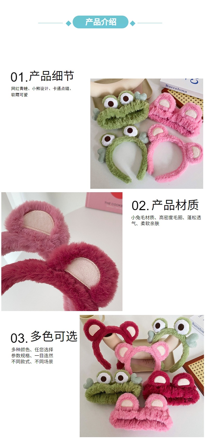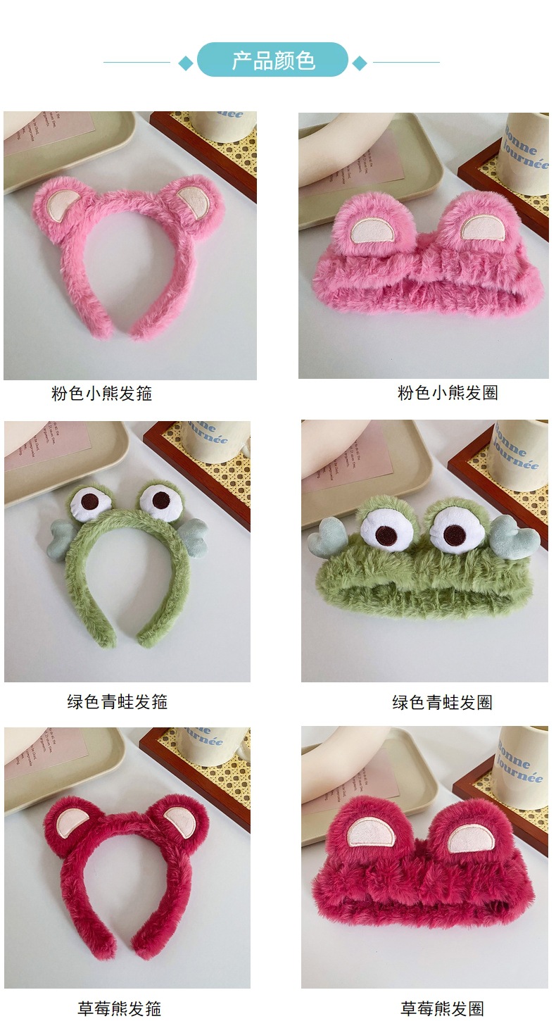 秋冬新款毛绒发箍卡通青蛙女洗脸发带头箍可爱草莓熊耳朵头饰发饰