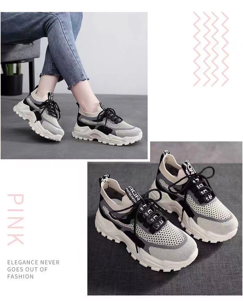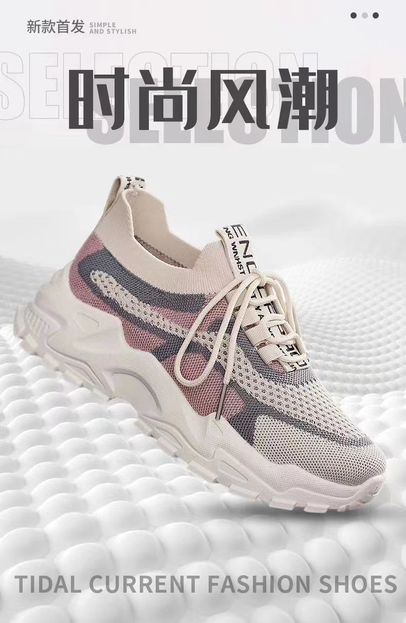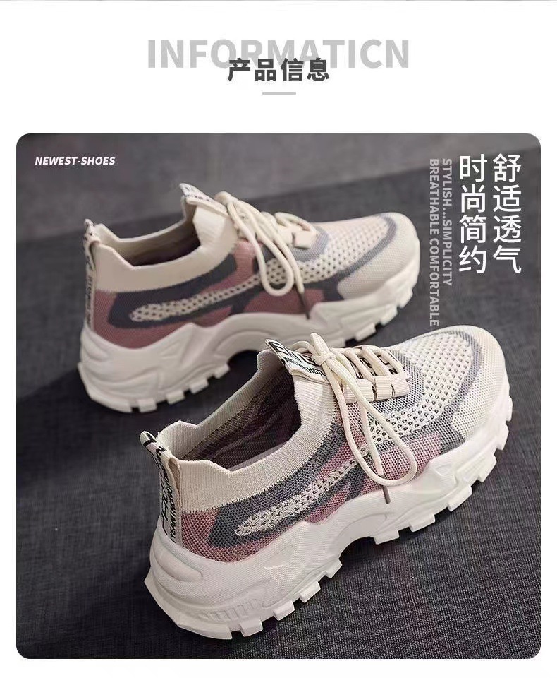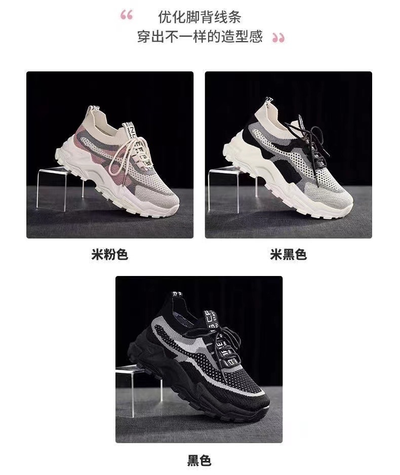 【4月新款】女士老爹鞋袜子口女鞋软底轻便透气运动鞋女飞织女鞋