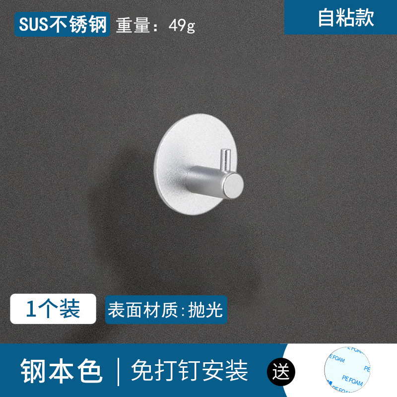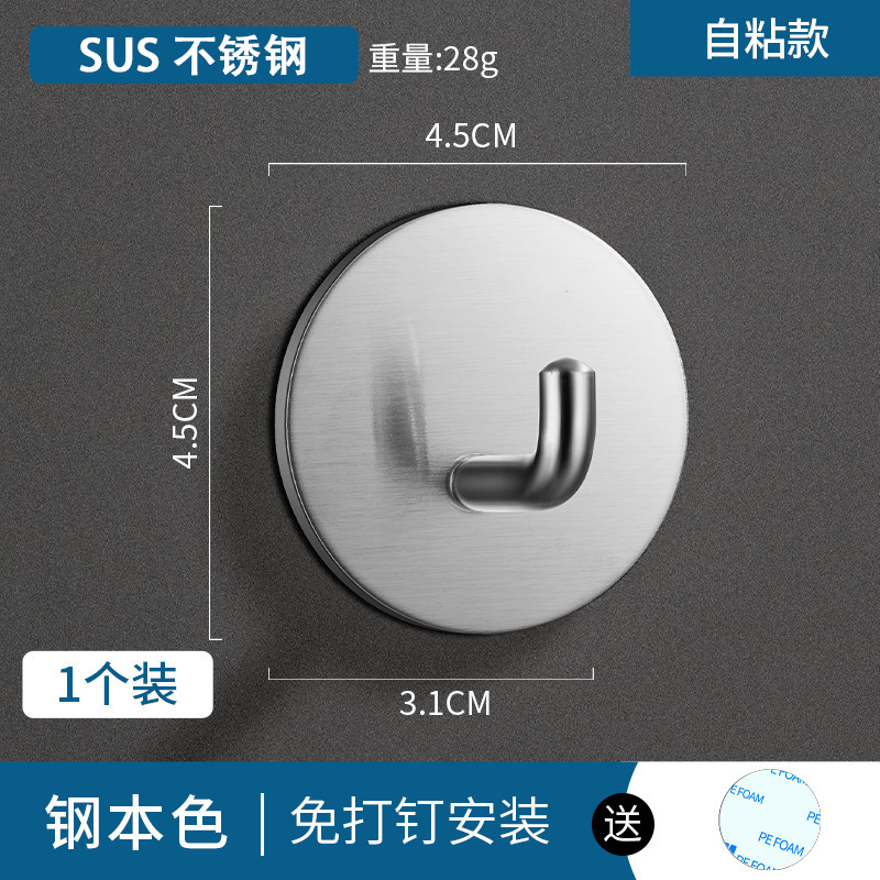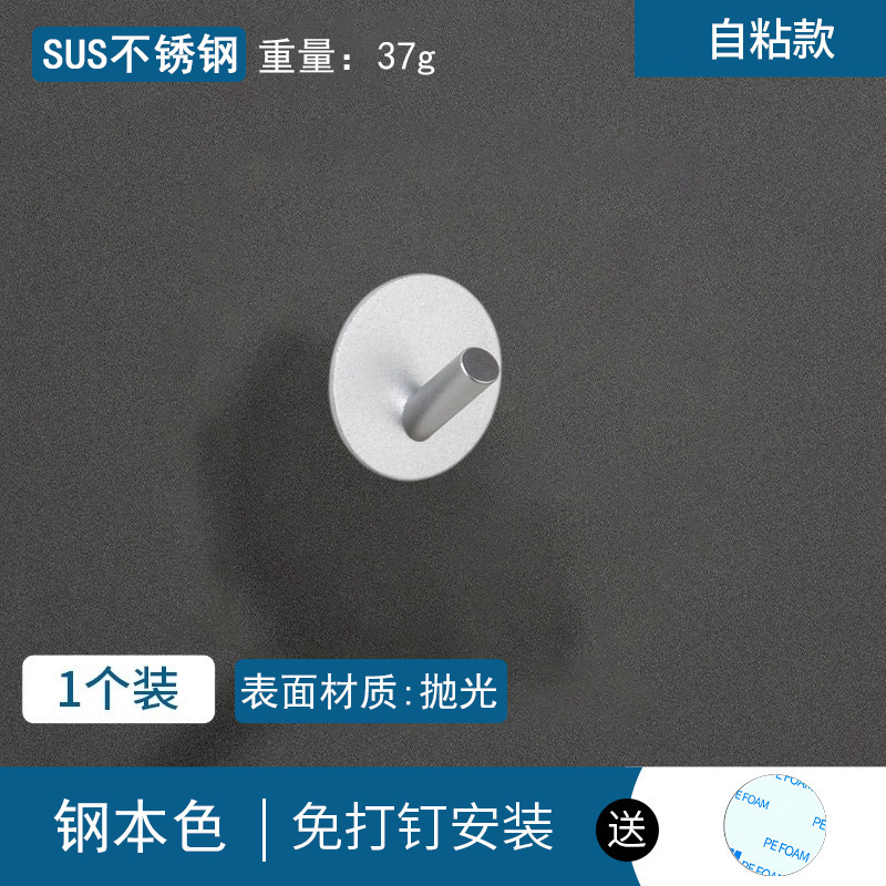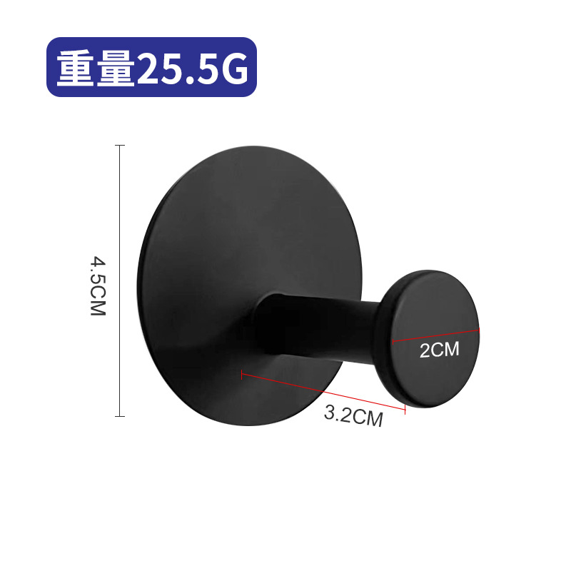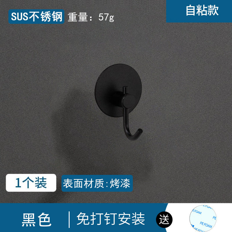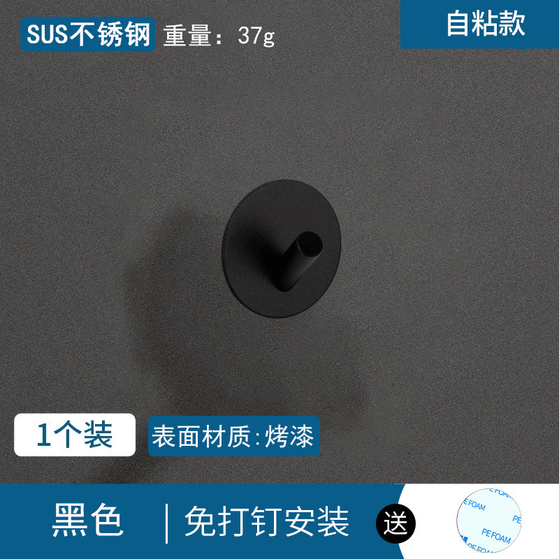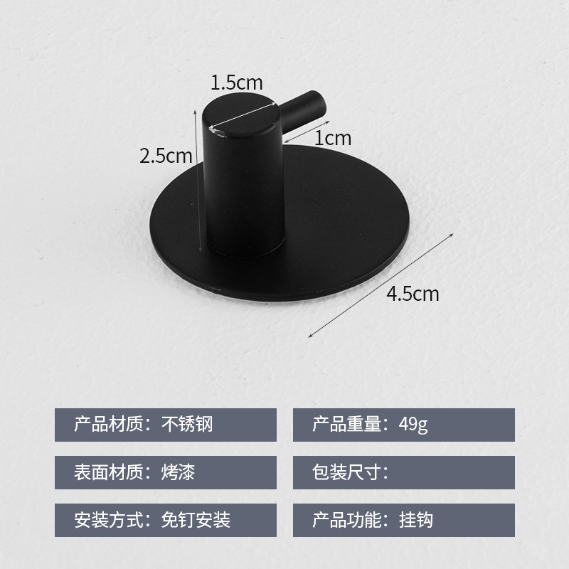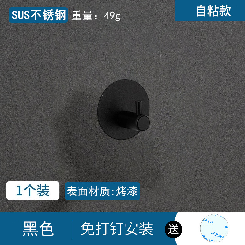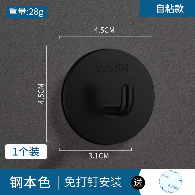 不锈钢304单钩挂钩黑白色圆形粘钩挂钩厨房卫生间淋浴房防水挂钩