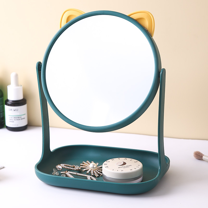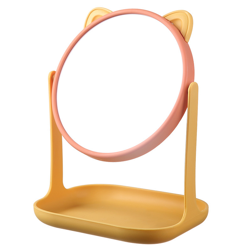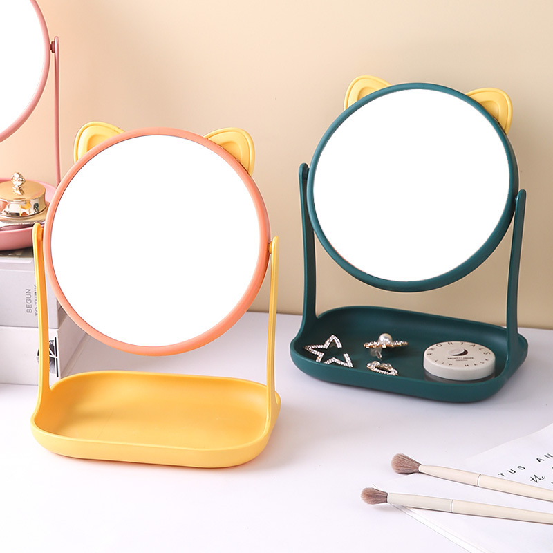 台式化妆镜宿舍桌面梳妆镜卡通猫耳朵化妆镜网红补妆美妆小镜子