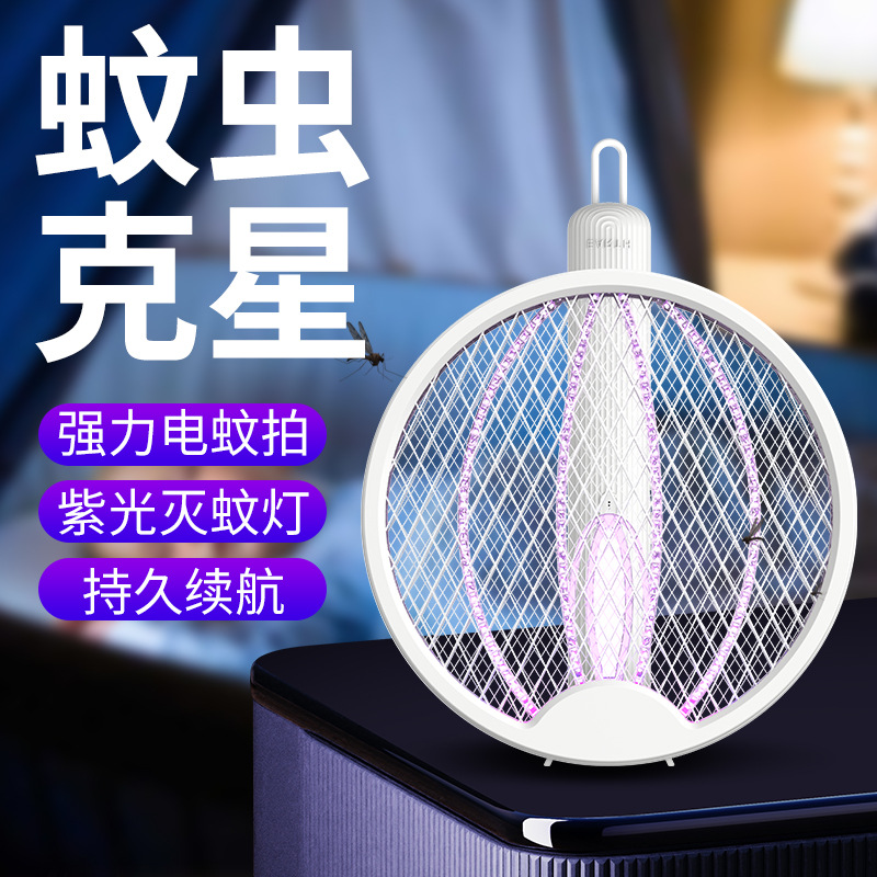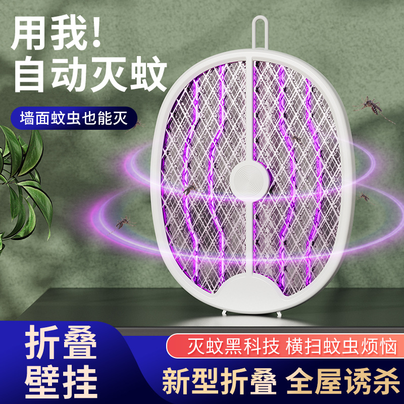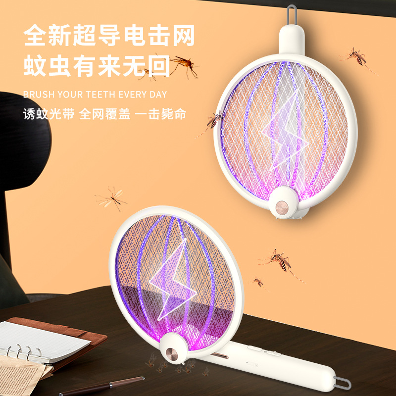 新款折叠电蚊拍家用驱鼠蝇虫灭蚊拍户外电击灭蚊灯充电露营灯批发