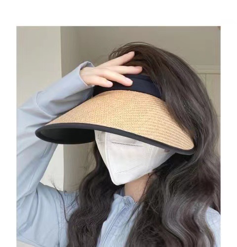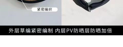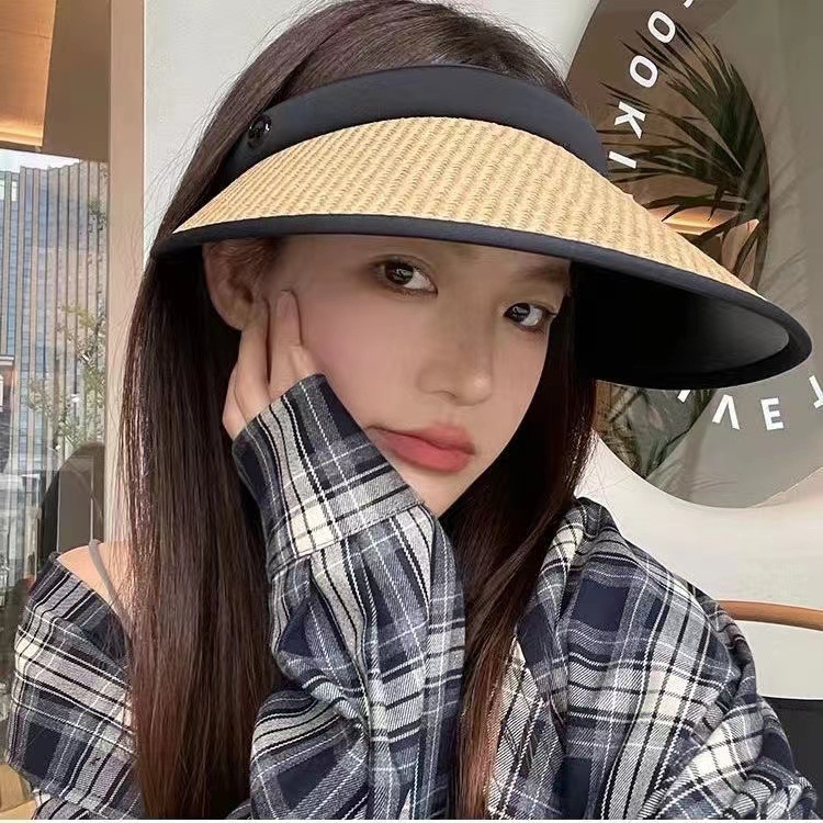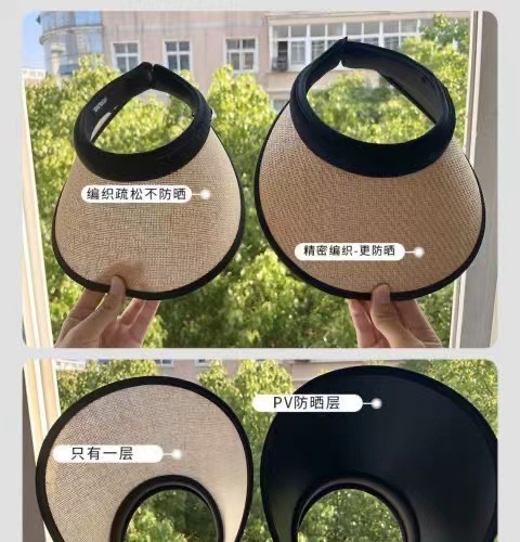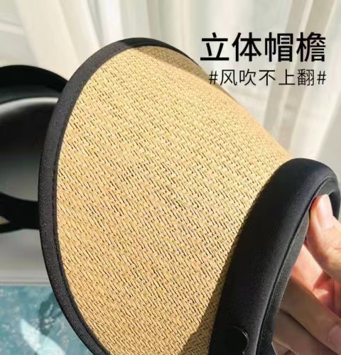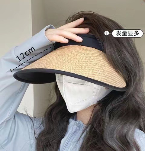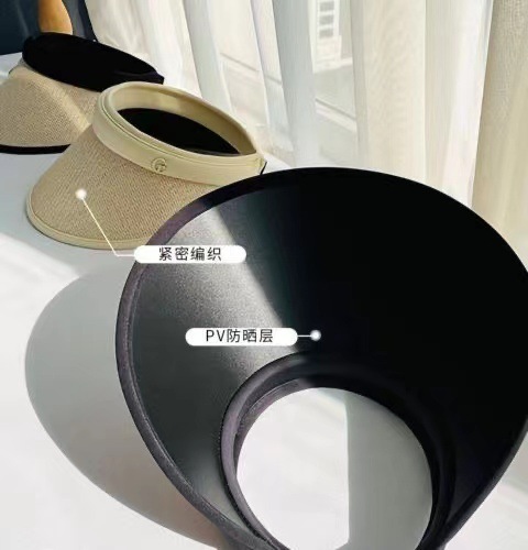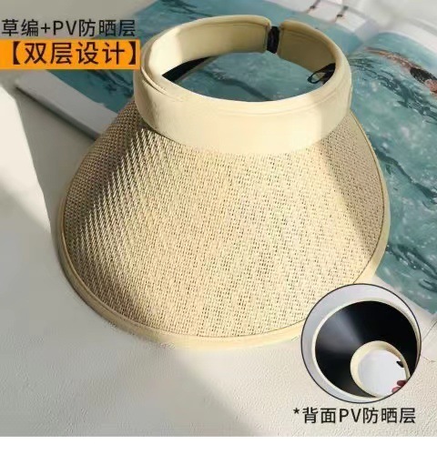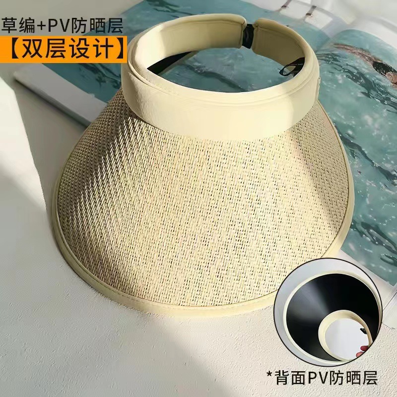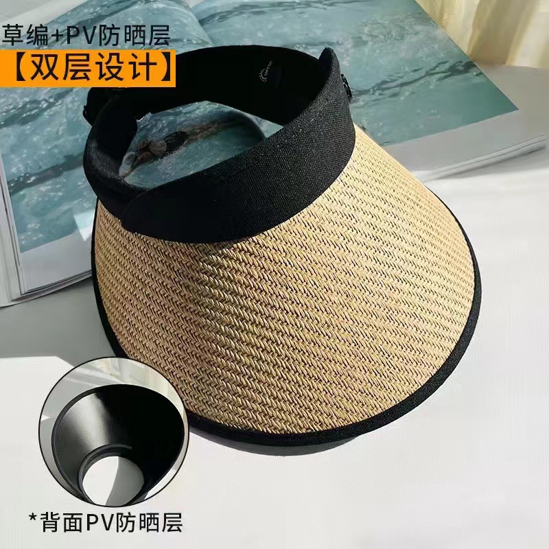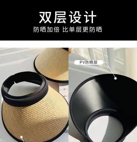 夏季防晒太阳帽空顶网红同款防紫外线遮阳黑胶加大檐双层编织草帽