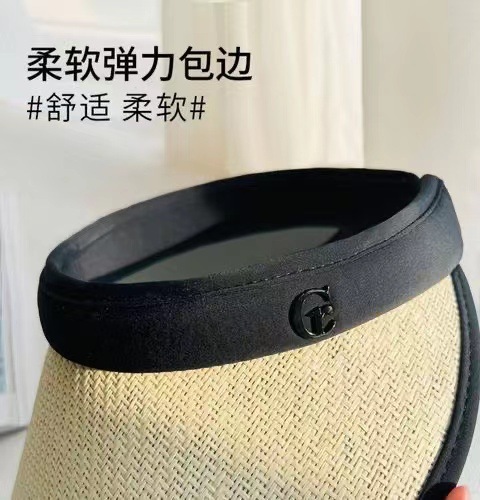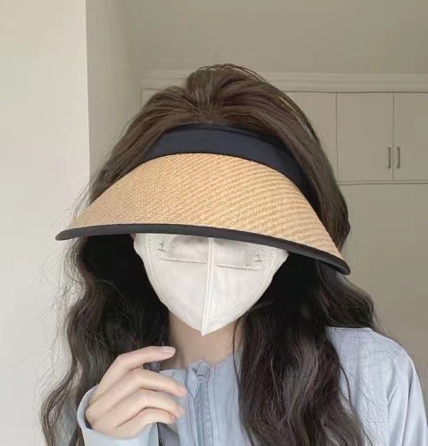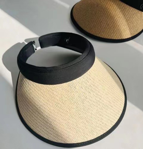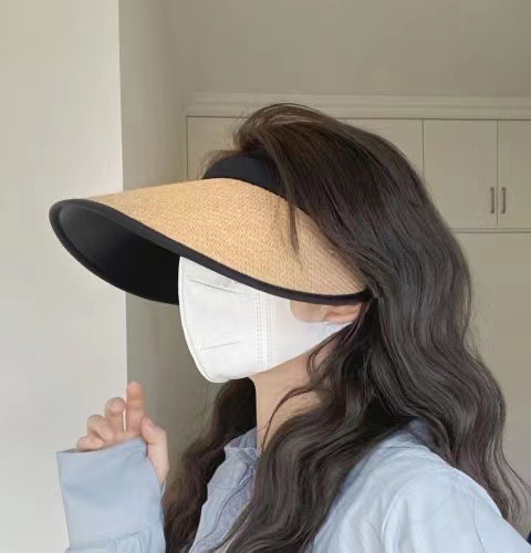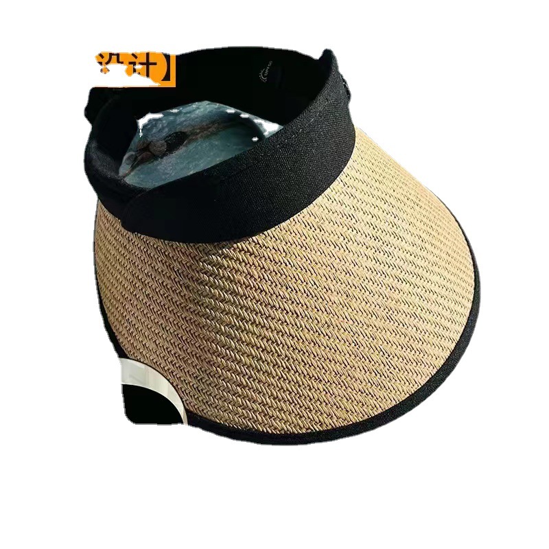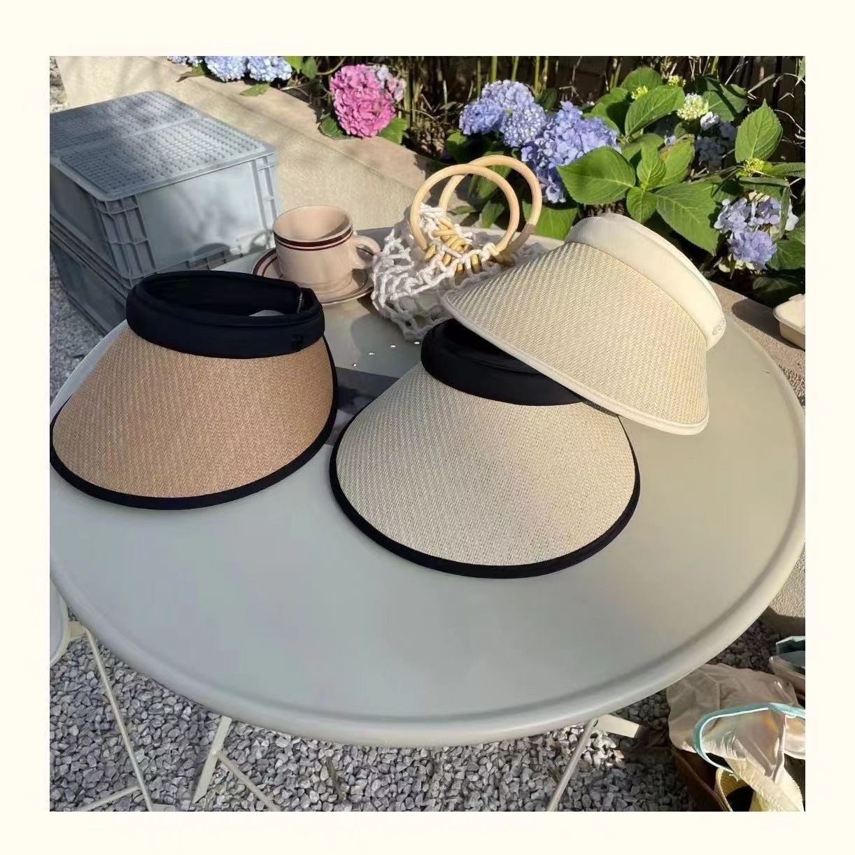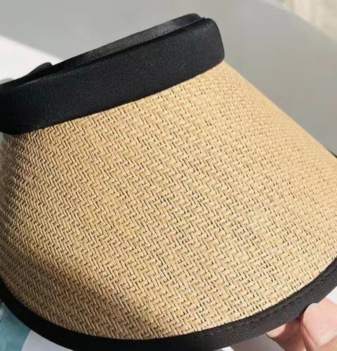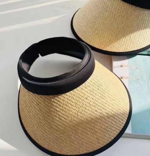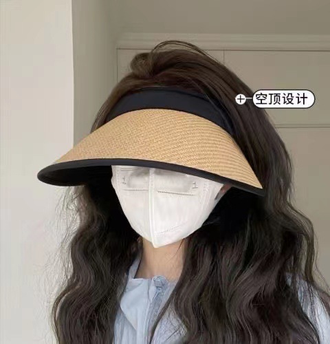 夏季防晒太阳帽空顶网红同款防紫外线遮阳黑胶加大檐双层编织草帽