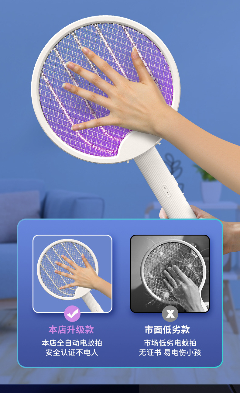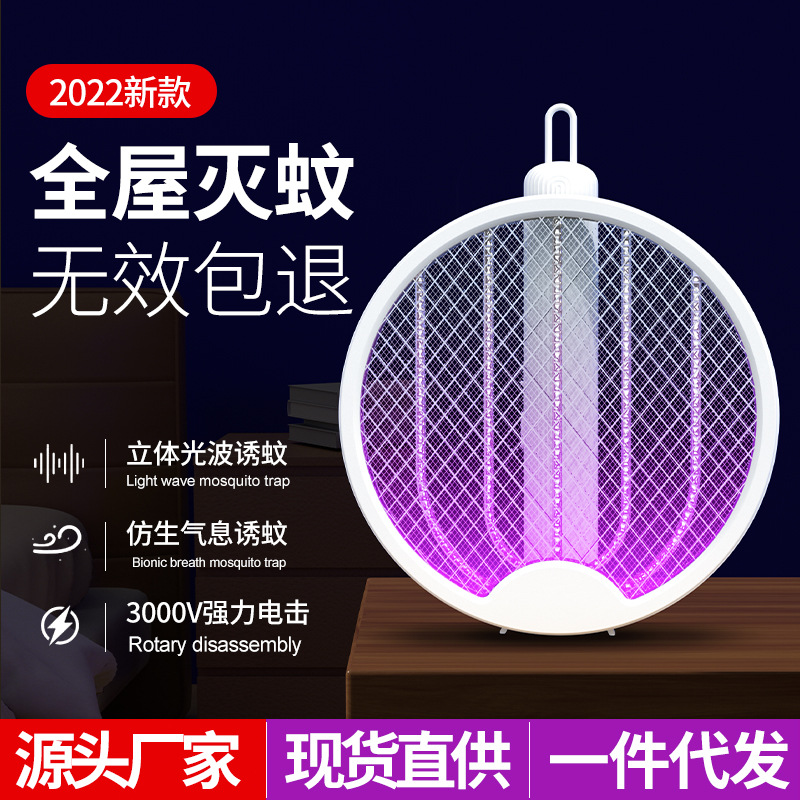 新款折叠电蚊拍家用USB充电灭蚊拍室内外二合一诱蚊灭蚊拍