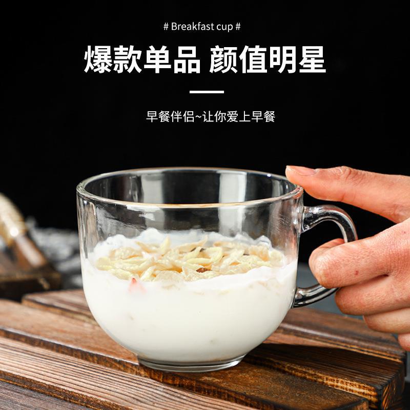 批发燕麦杯早餐杯北欧大肚奶茶杯大容量透明牛奶杯藕粉杯可印LOGO