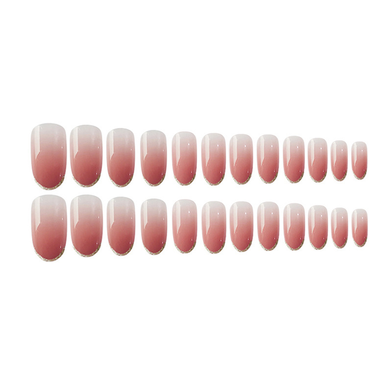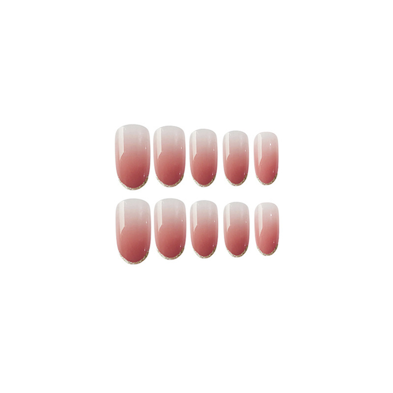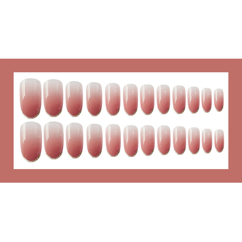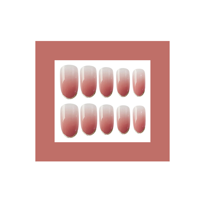 软甲无痕穿戴美甲法式金边豆沙渐变中长款甲片成品批发假指甲贴片