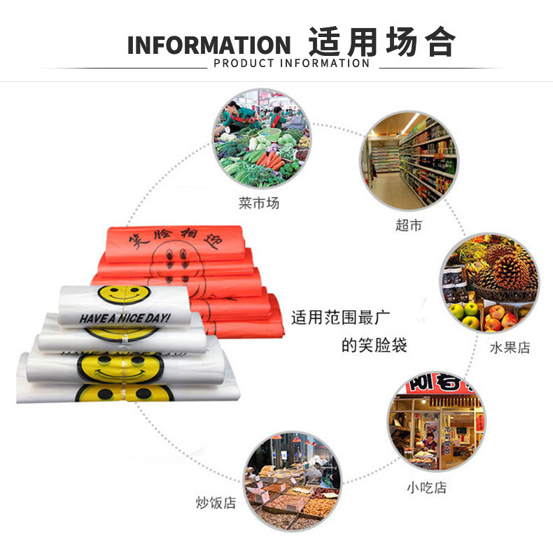 红色笑脸袋批发方便马夹袋加厚超市购物袋水果logo红色塑料袋批发