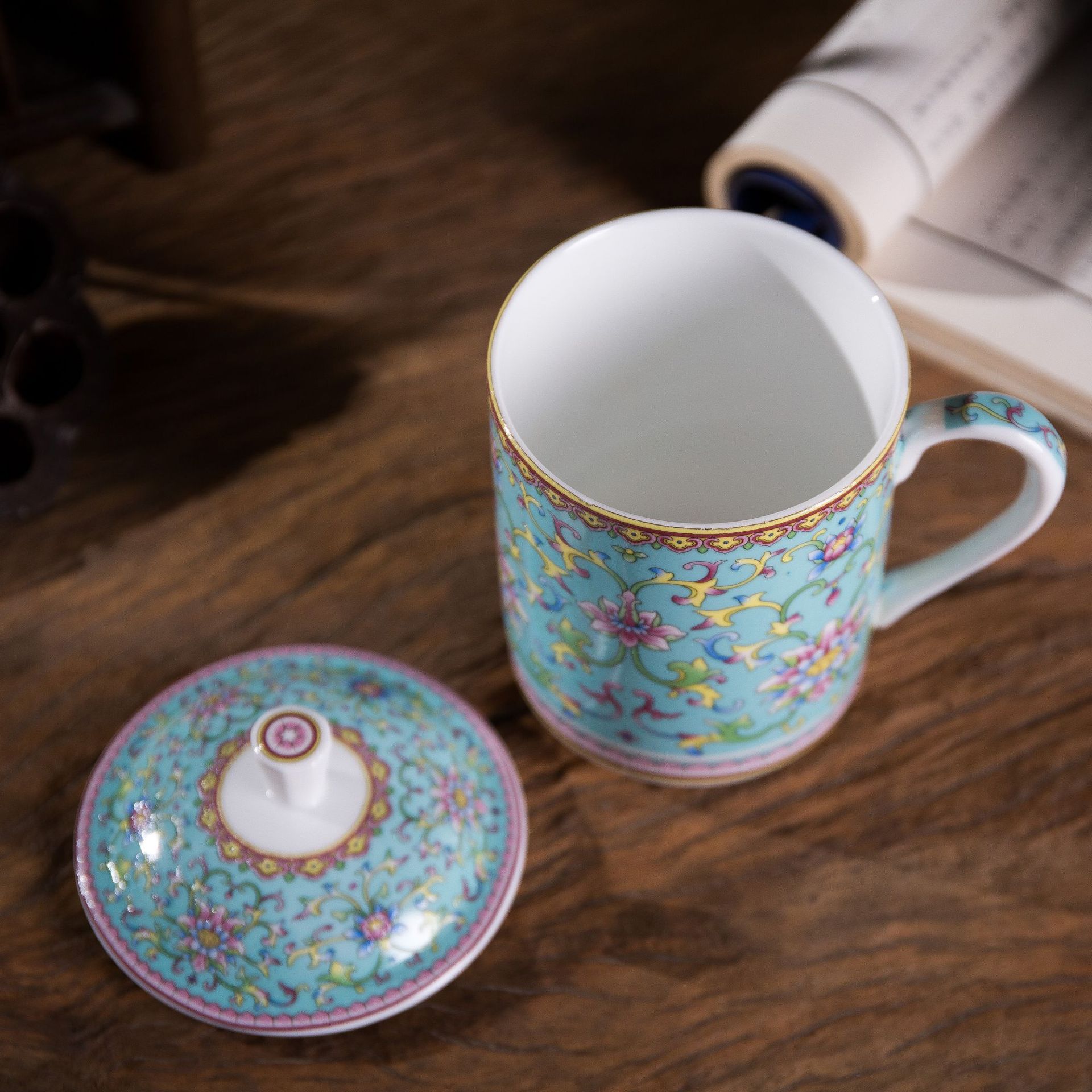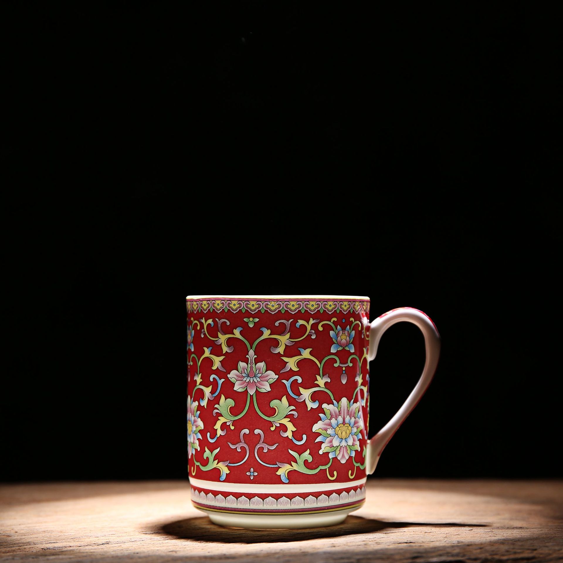 景德镇陶瓷珐琅彩骨瓷茶杯带盖粉彩办公杯宫廷风泡茶杯会议礼品杯