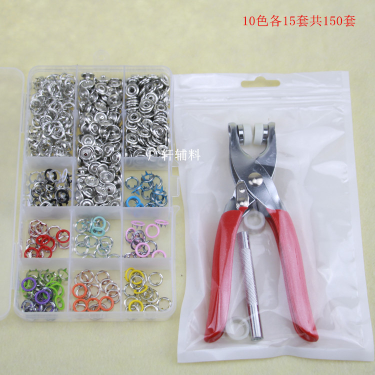 跨境9.5MM纯铜空心五爪扣套装安装工具四合扣纽扣按扣婴儿服扣子