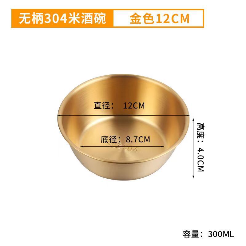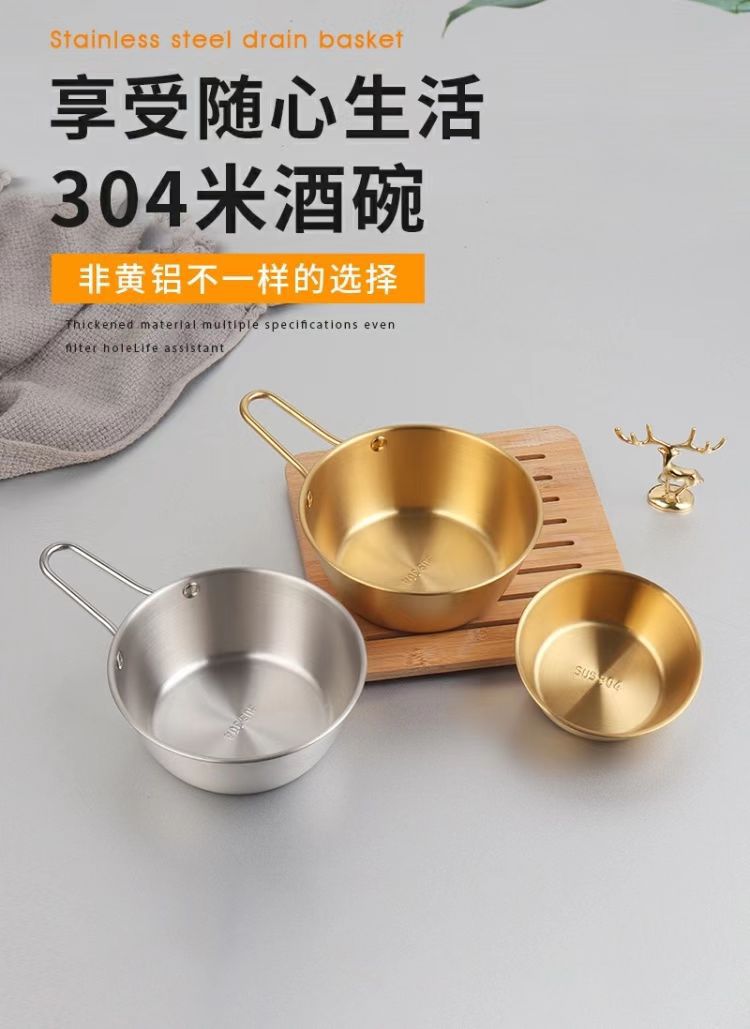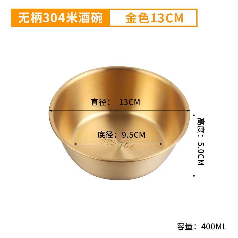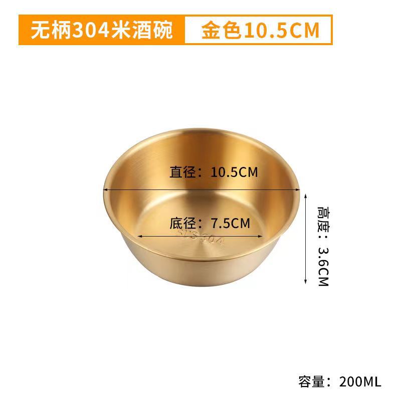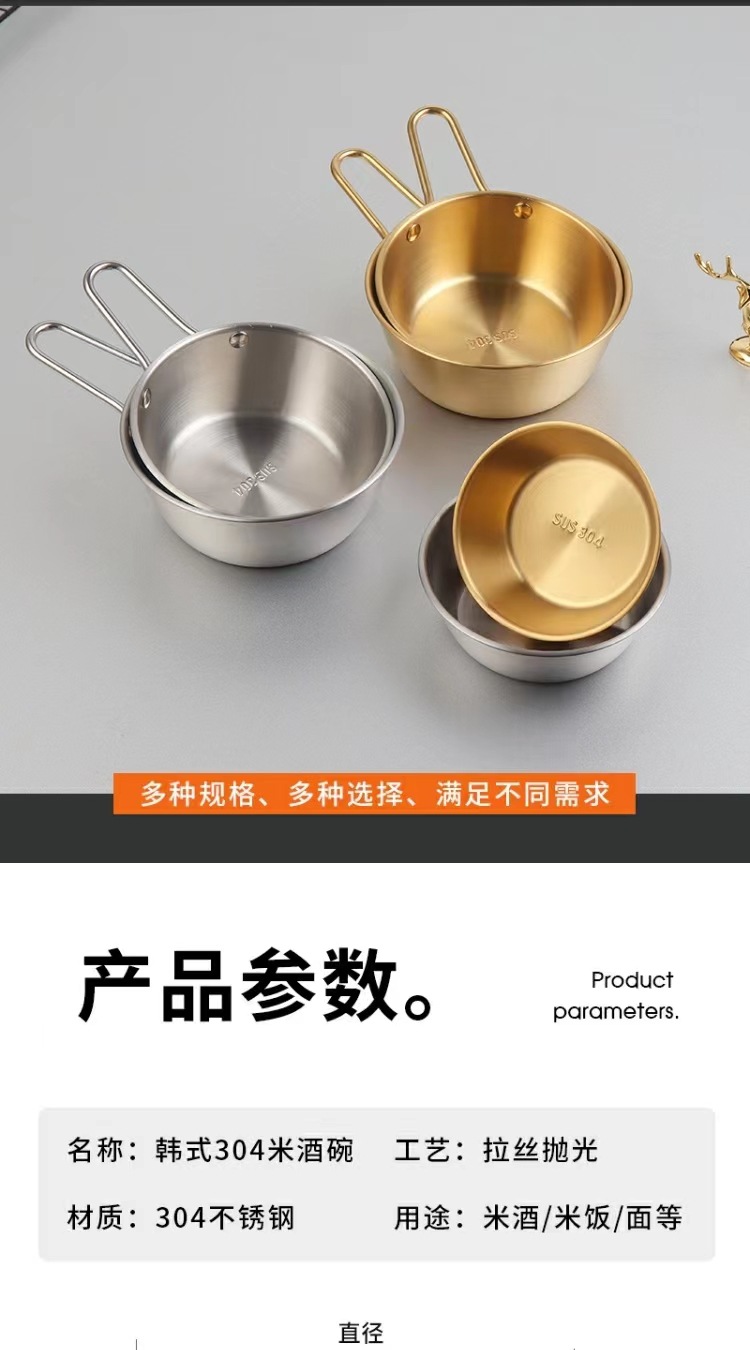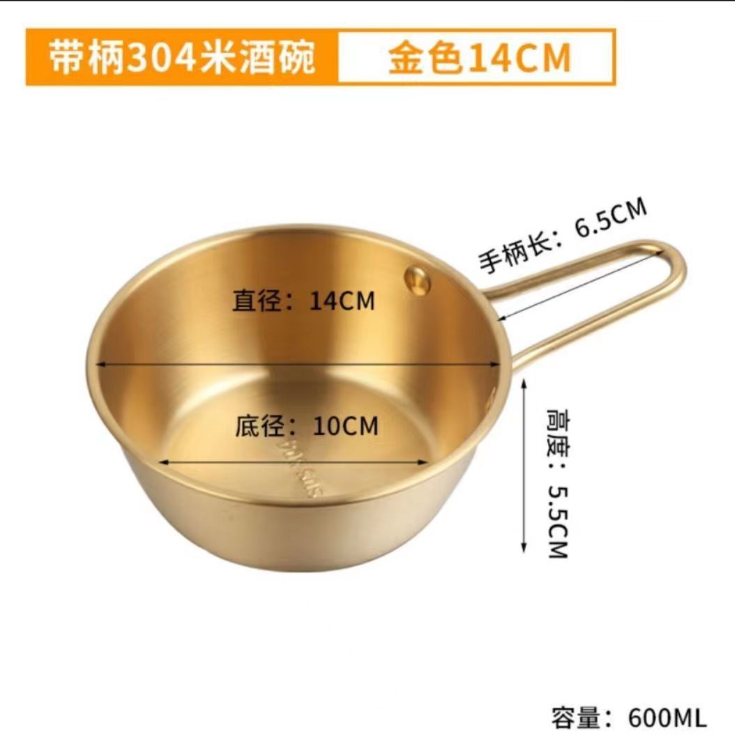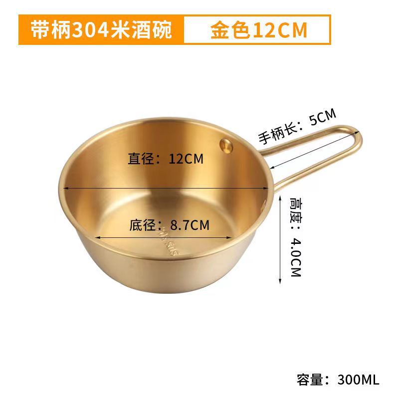 304不锈钢韩式米酒碗露营烤肉蘸料碗韩国餐具金色带把沙拉碗批发