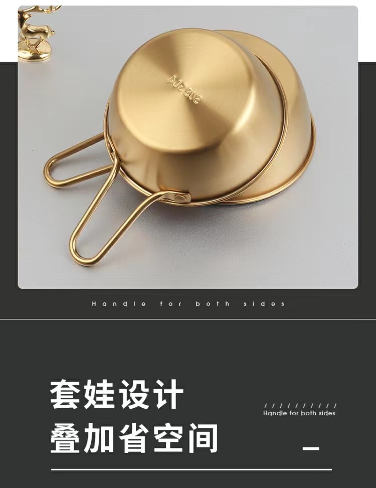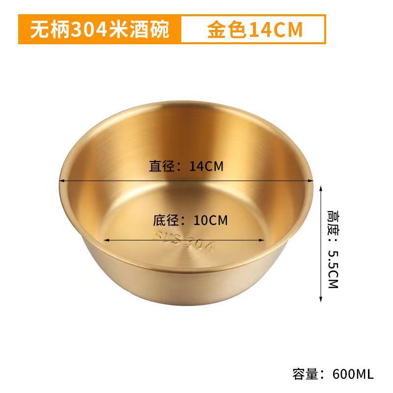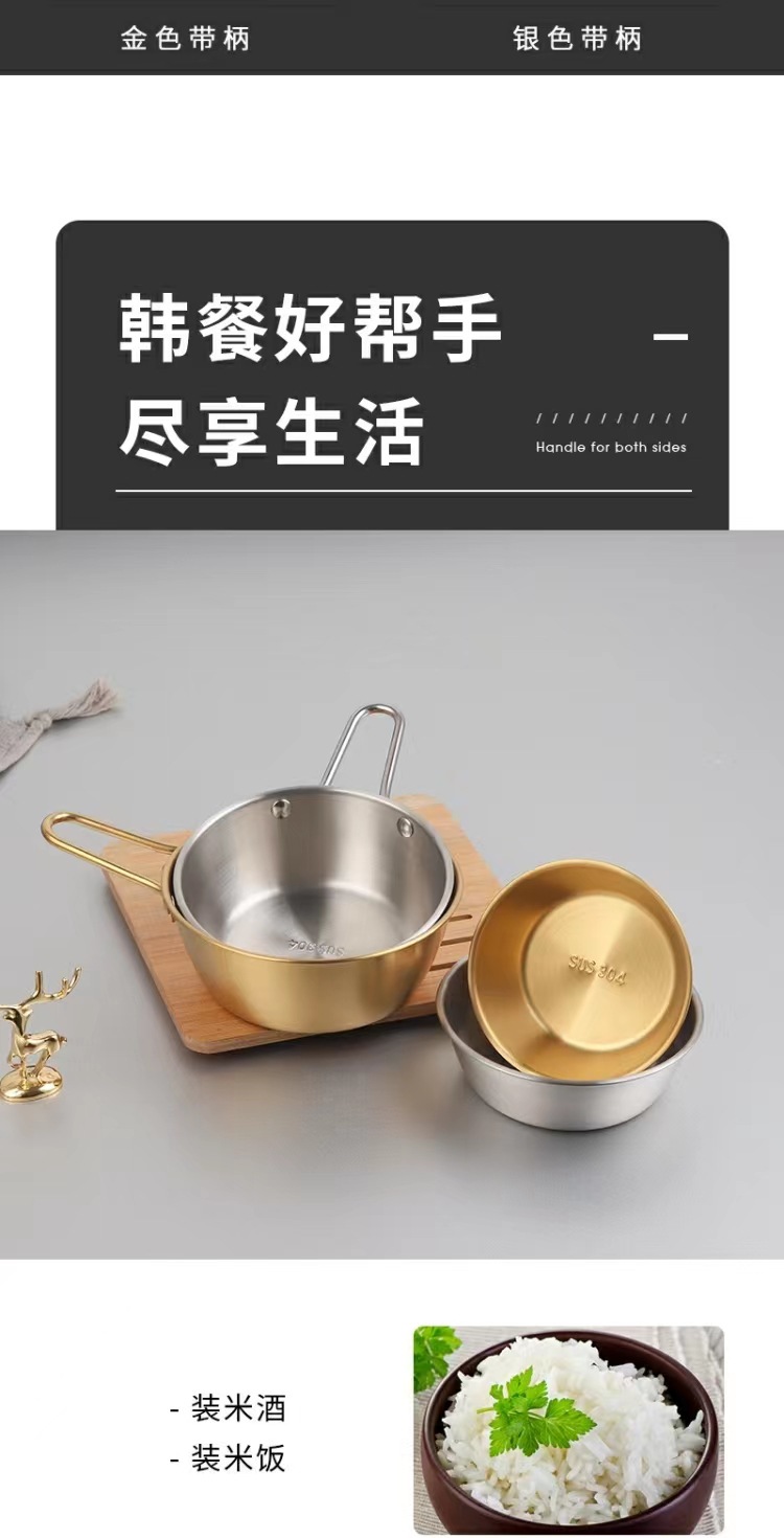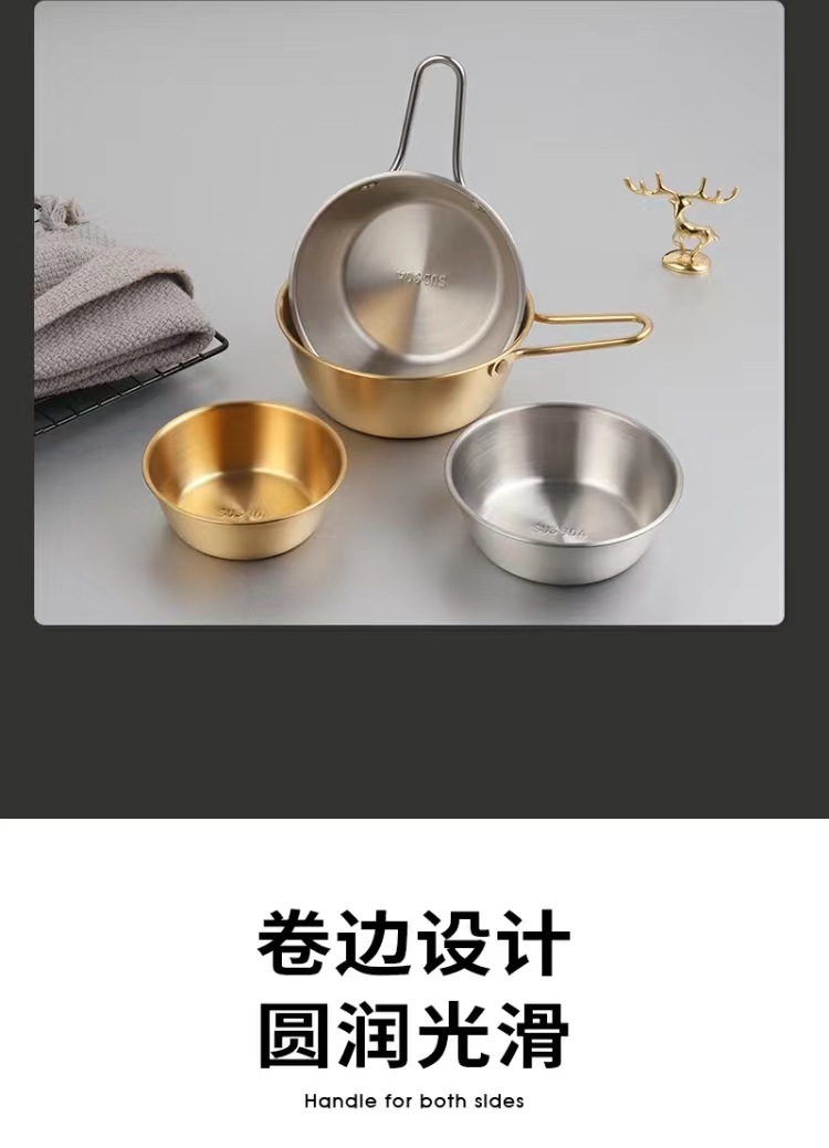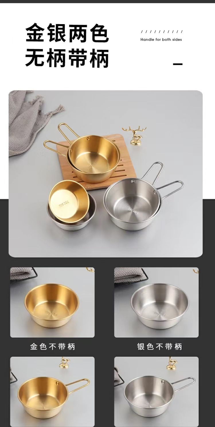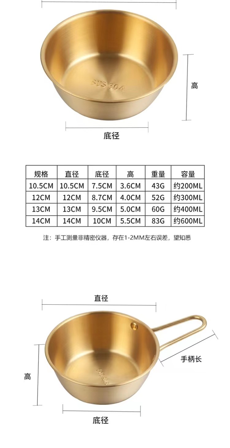 304不锈钢韩式米酒碗露营烤肉蘸料碗韩国餐具金色带把沙拉碗批发