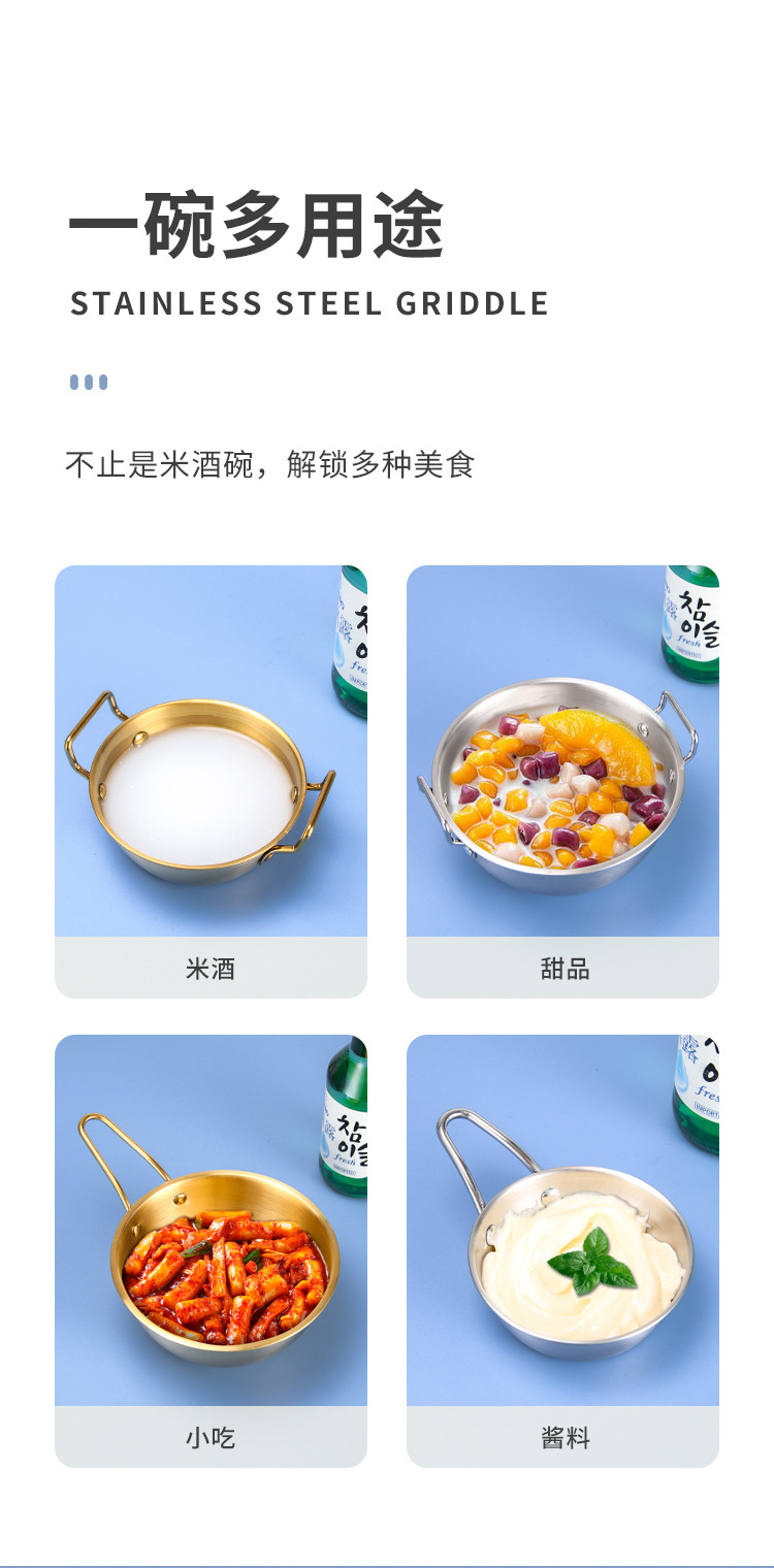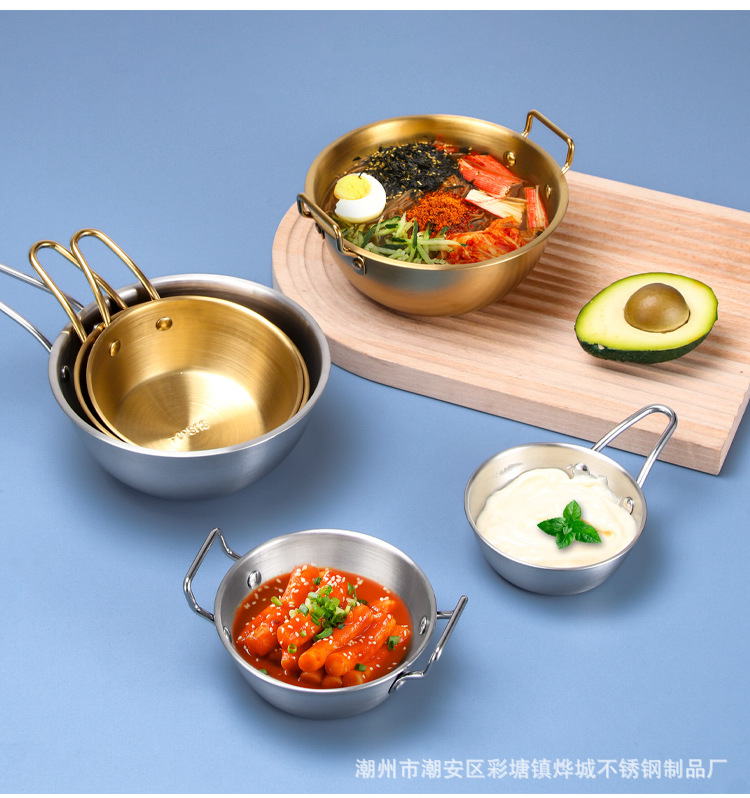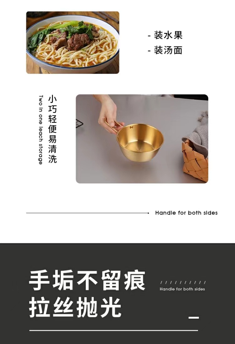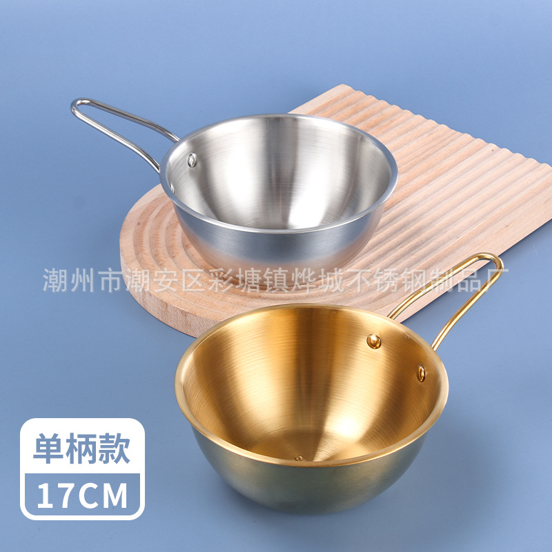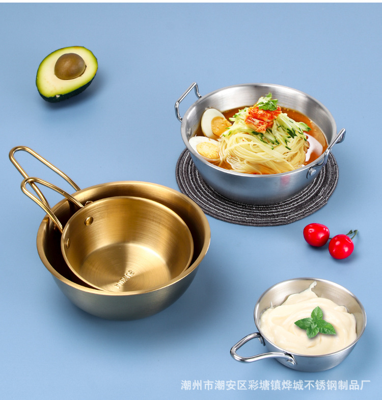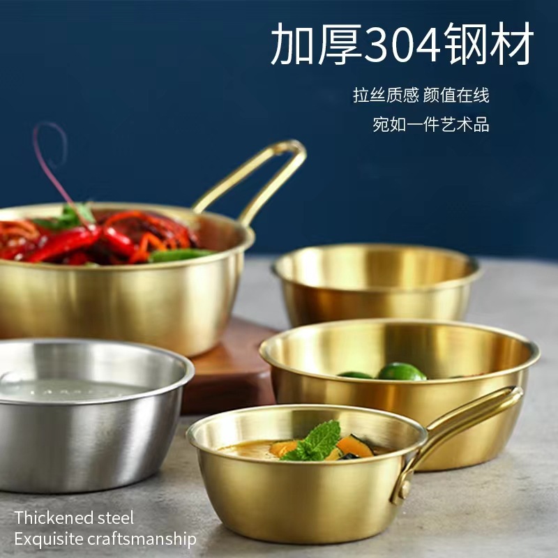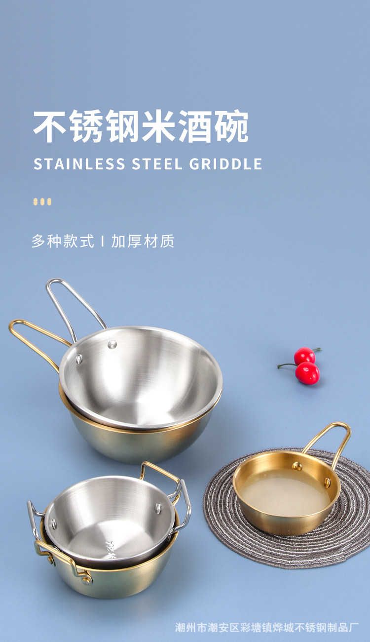 304不锈钢韩式米酒碗露营烤肉蘸料碗韩国餐具金色带把沙拉碗批发