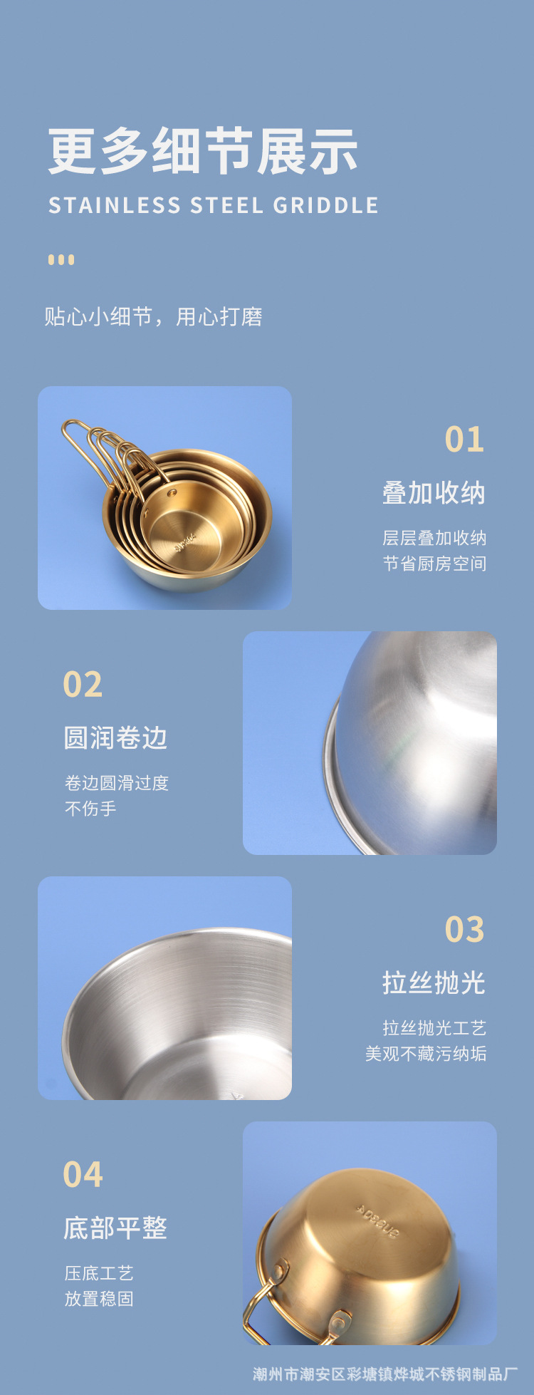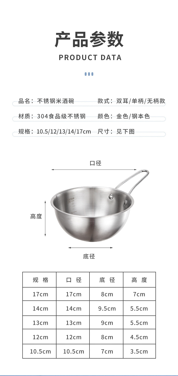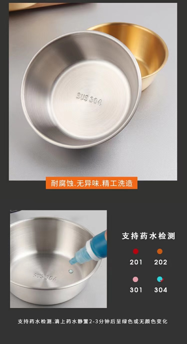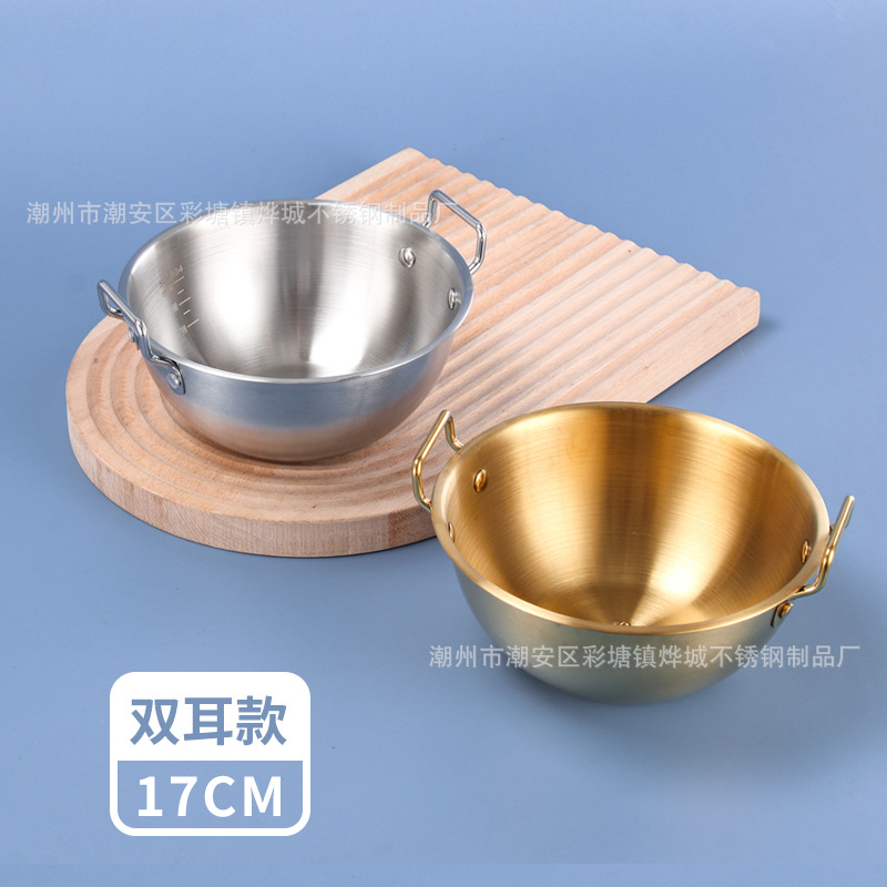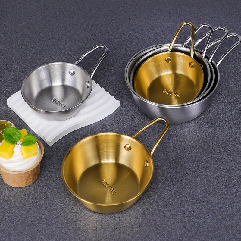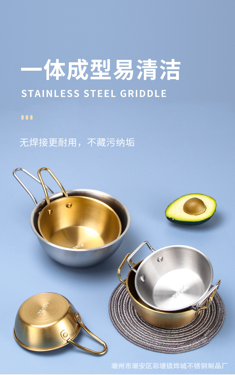 304不锈钢韩式米酒碗露营烤肉蘸料碗韩国餐具金色带把沙拉碗批发