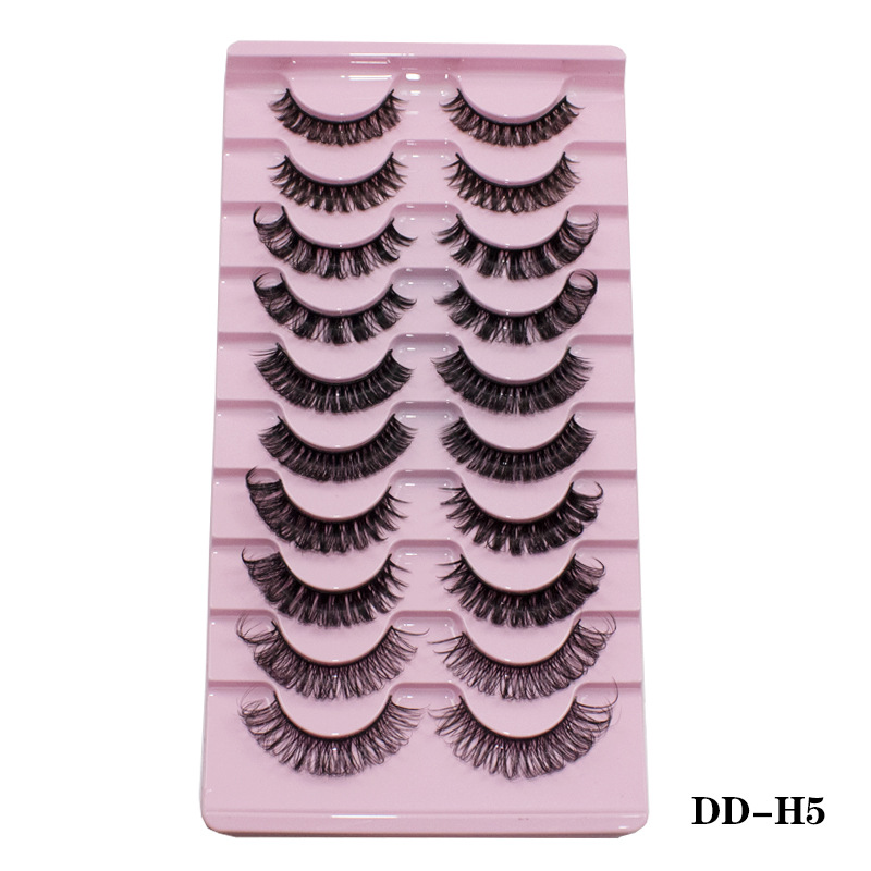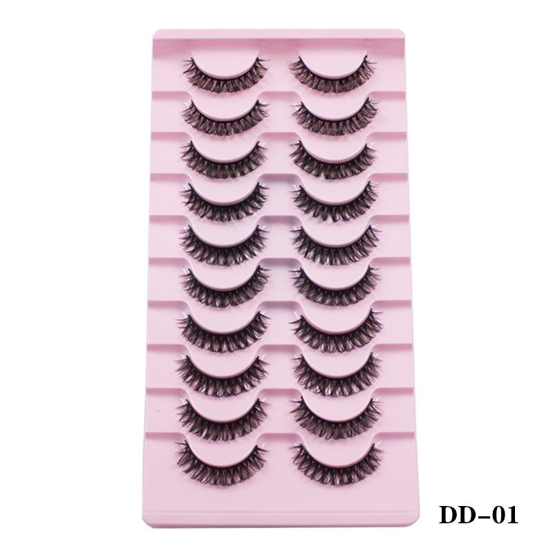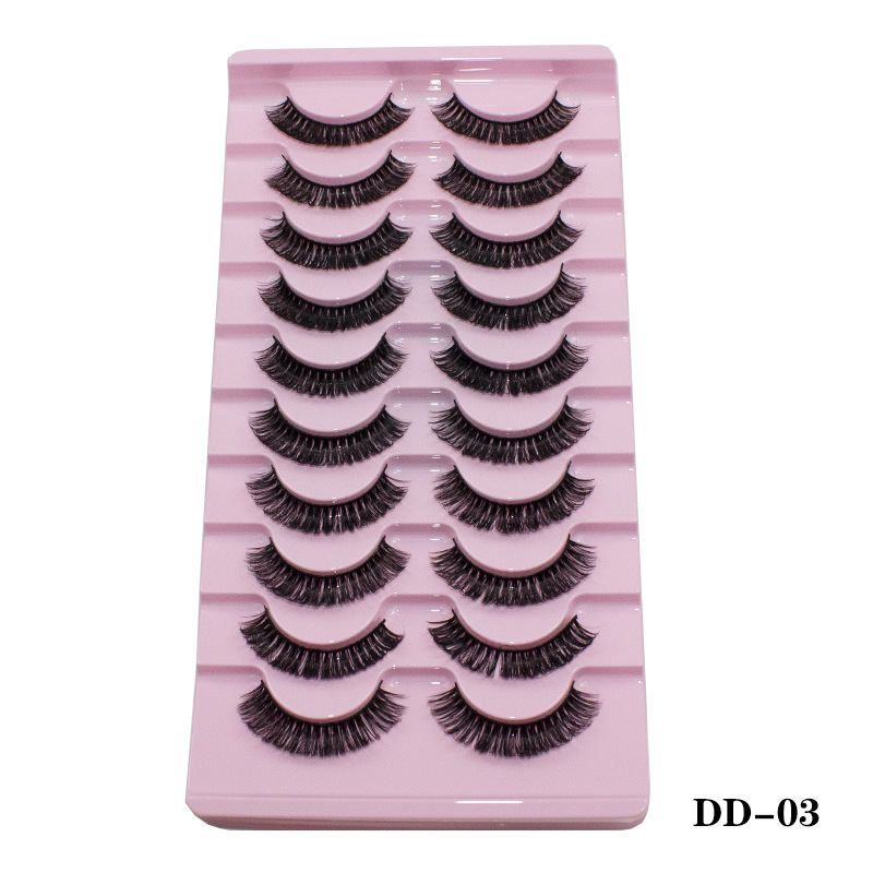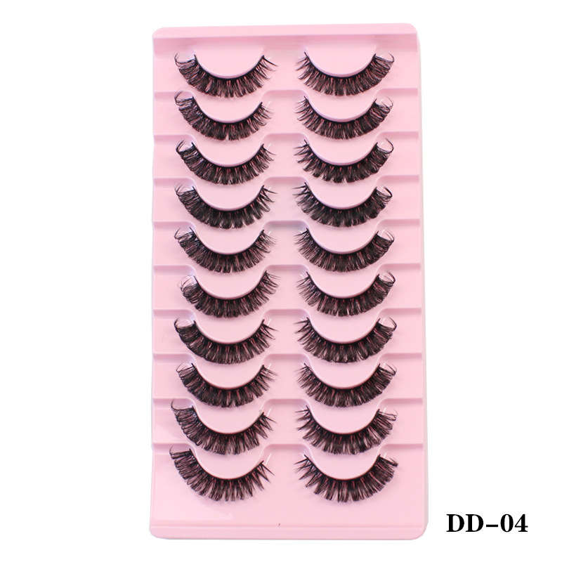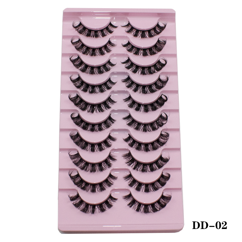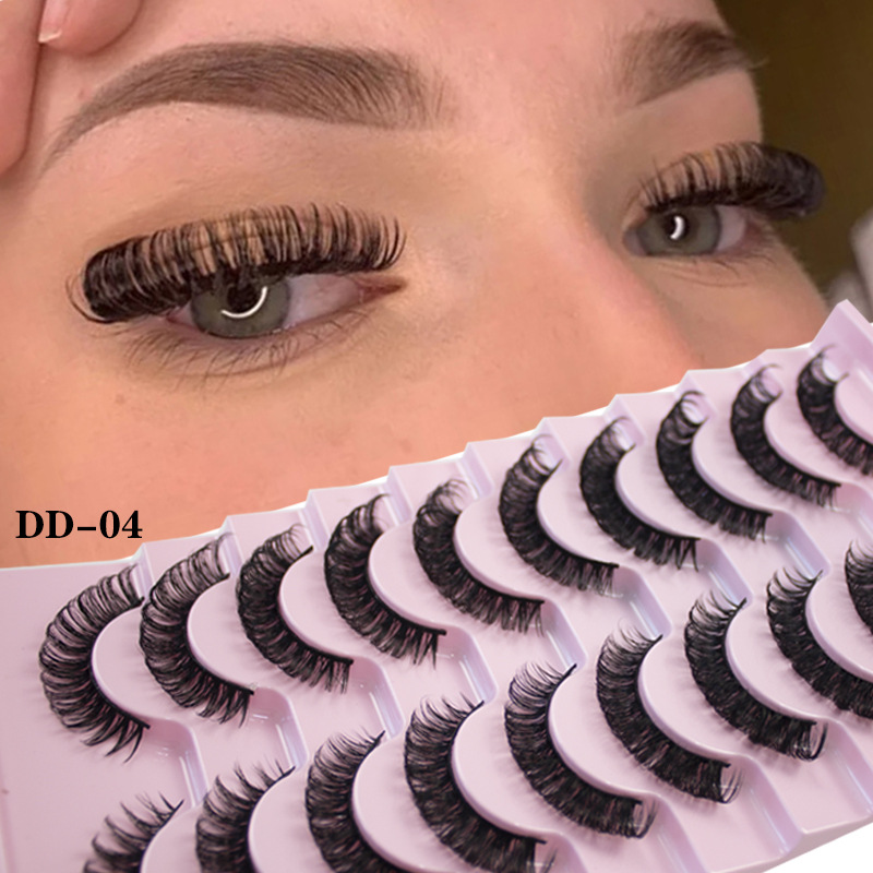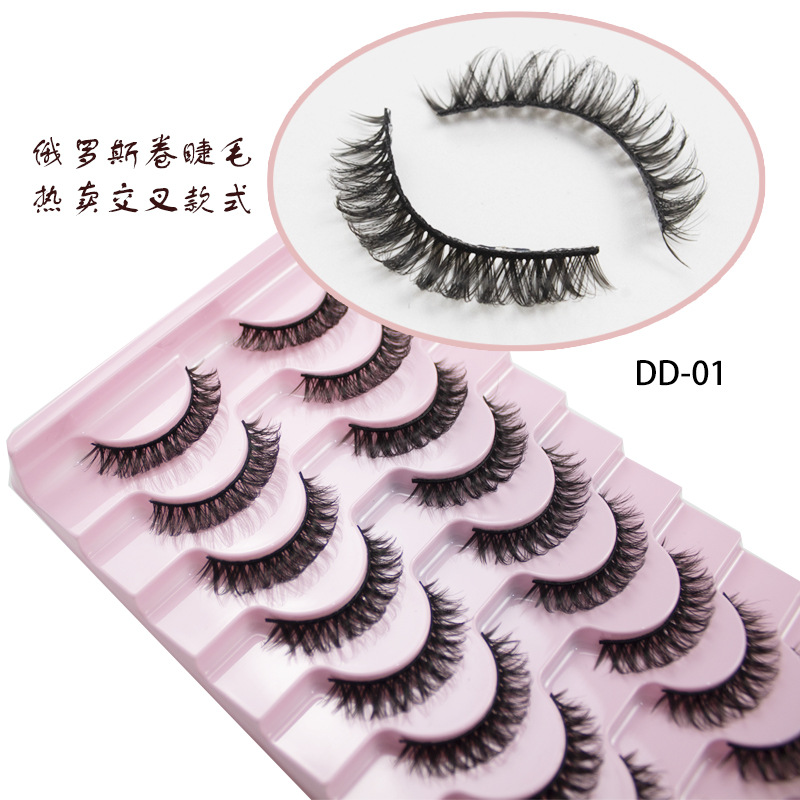 跨境新款爆款DD翘俄罗斯卷睫毛10对装自然浓密款大曲度卷翘假睫毛