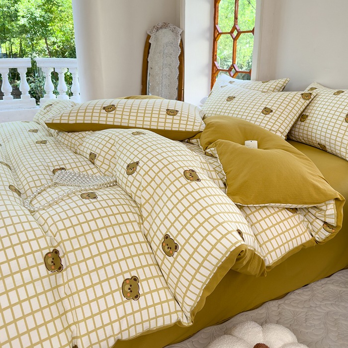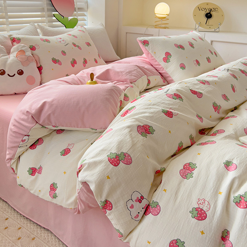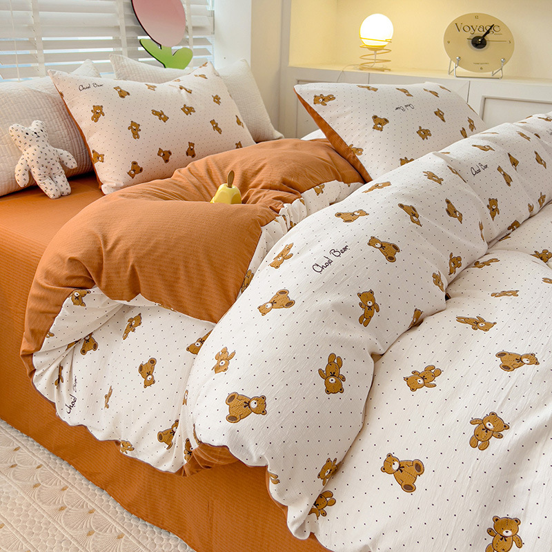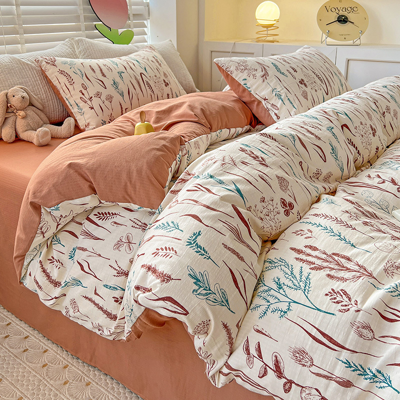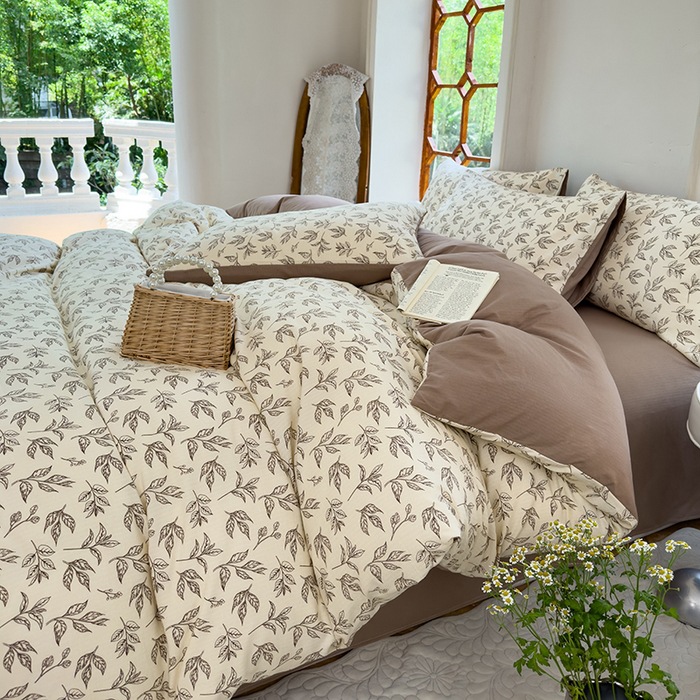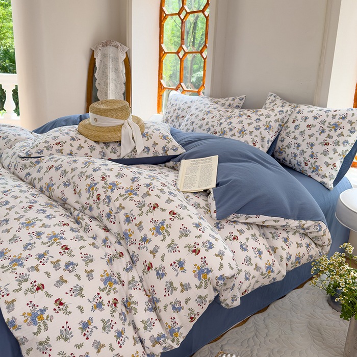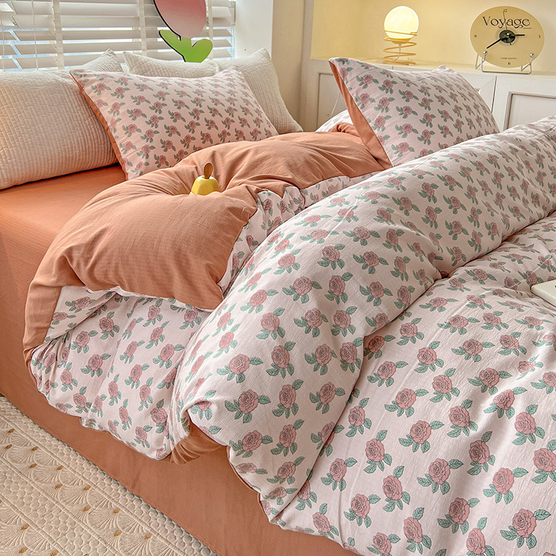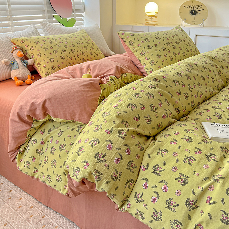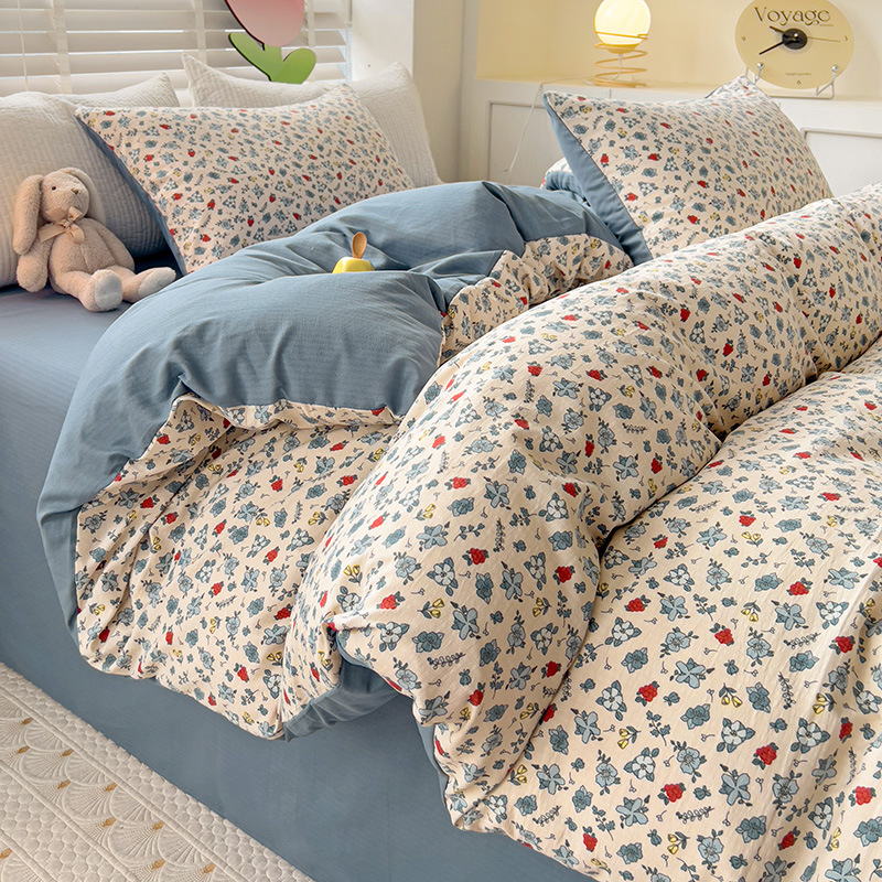超柔小竺棉四件套复古小清新印花床单床笠被套宿舍三件套床上用品