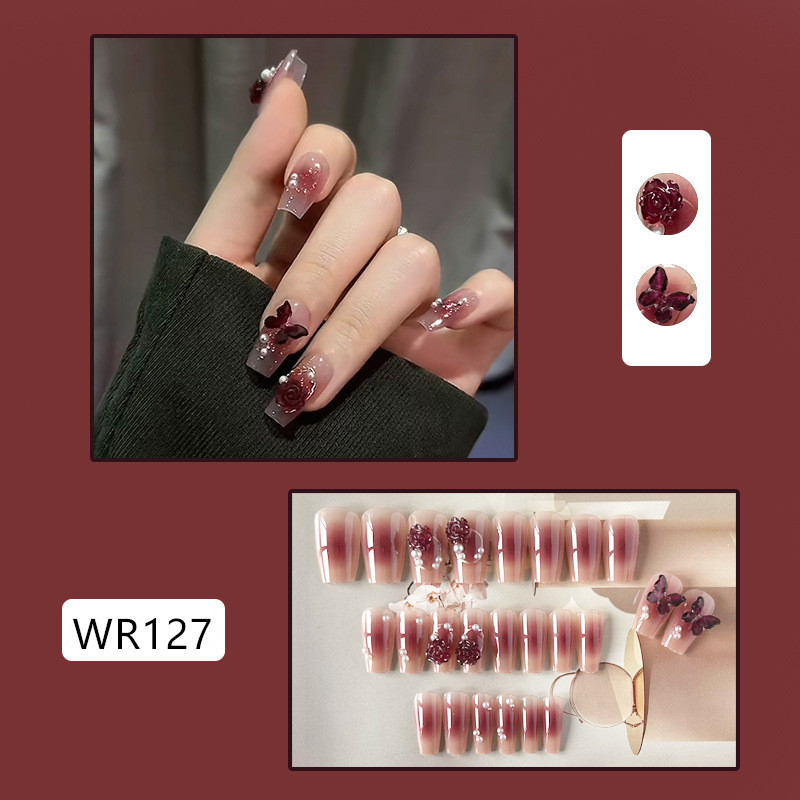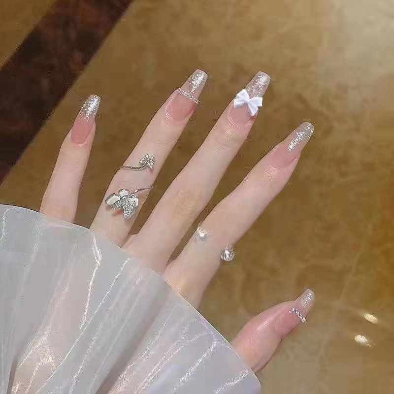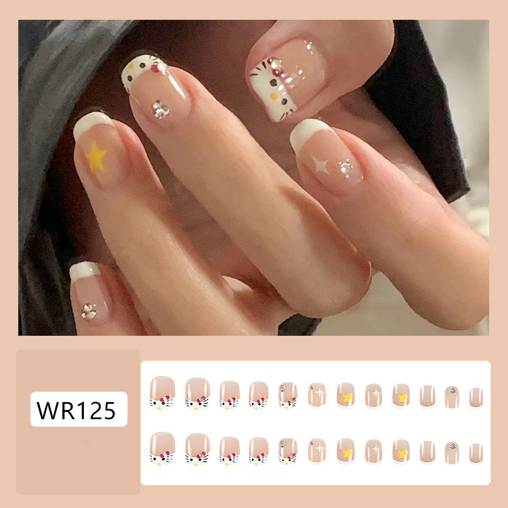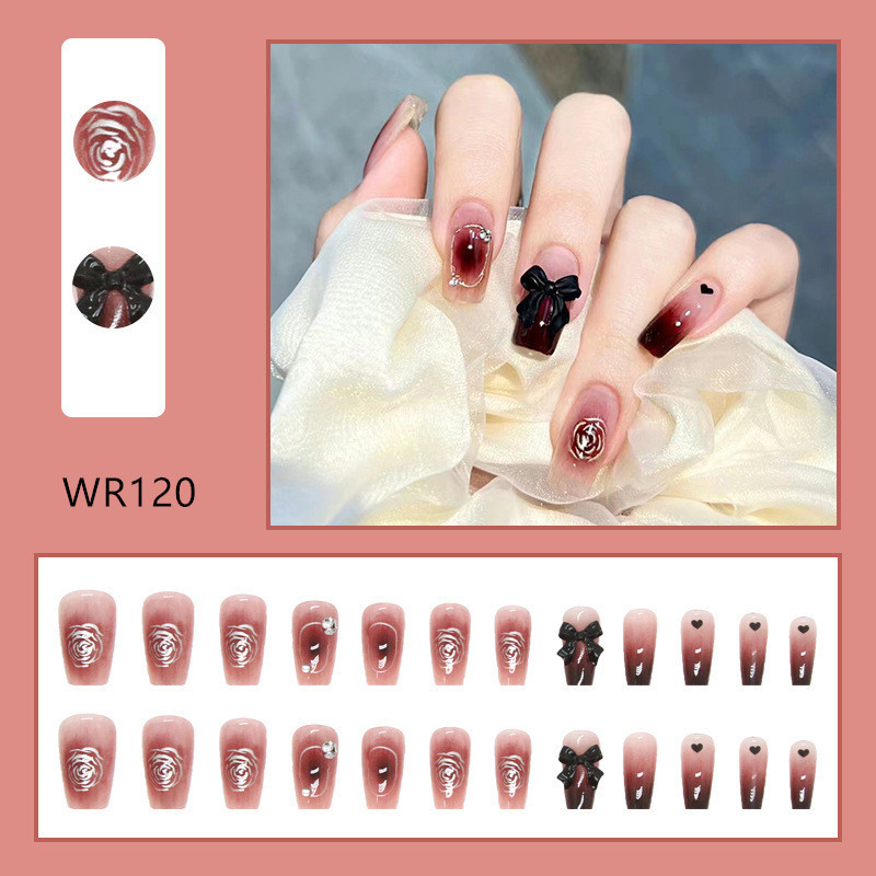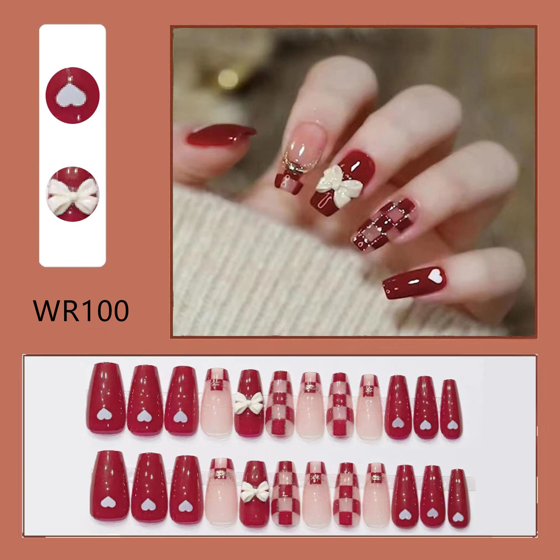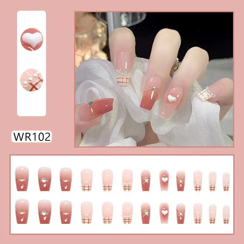 穿戴甲钻款小清新立体图案爱心蝴蝶结美甲贴片美甲穿戴甲成品批发