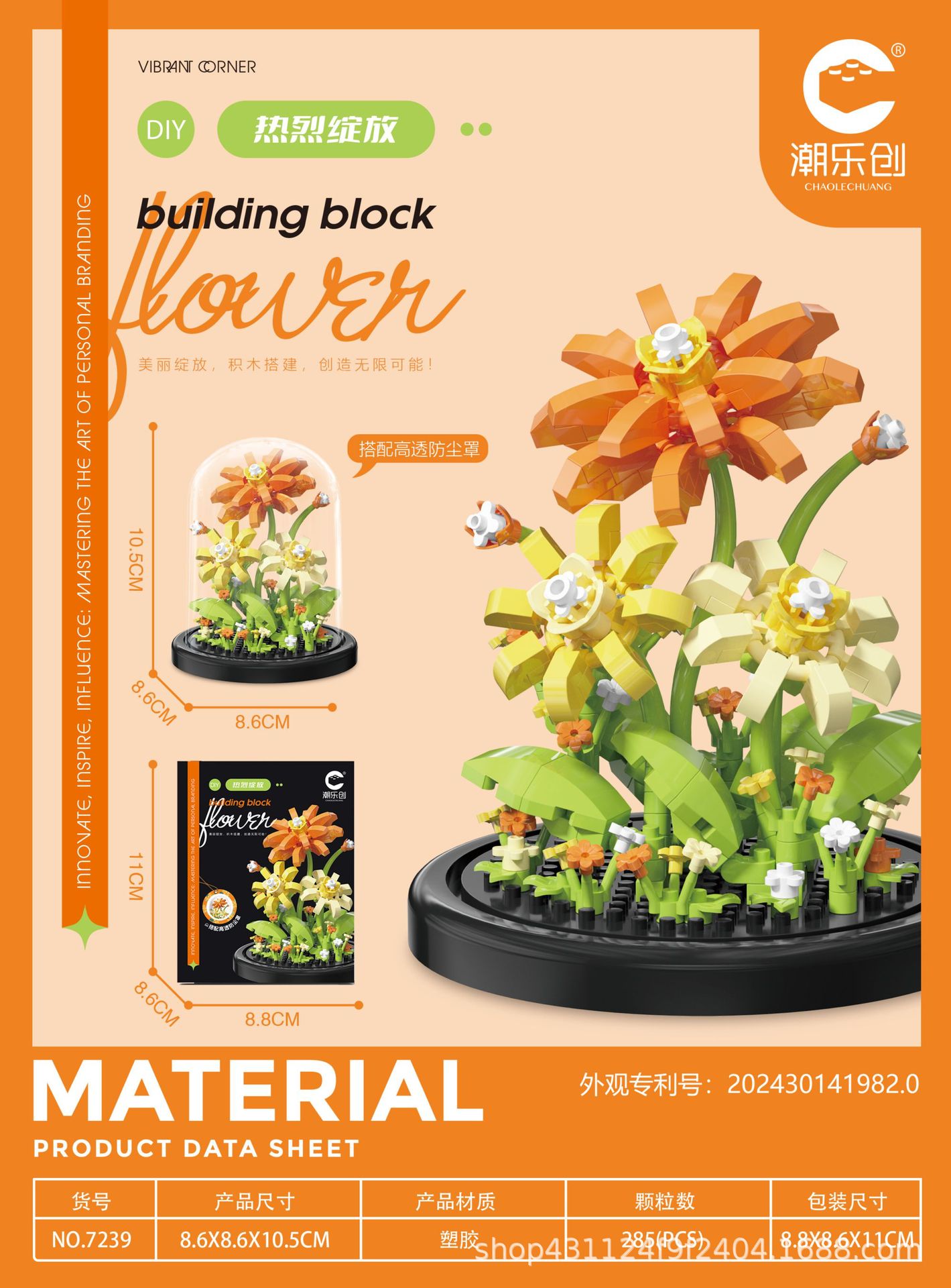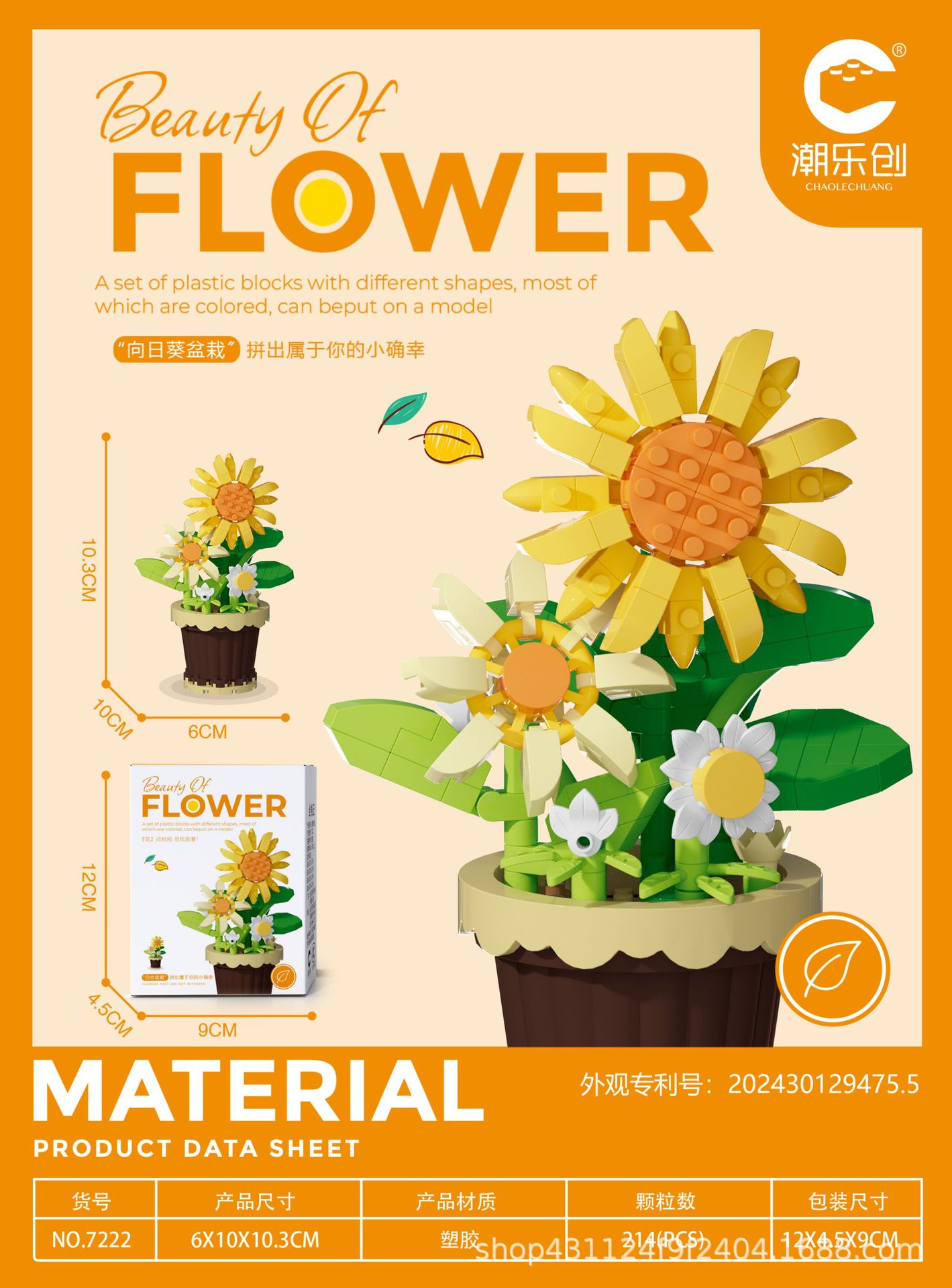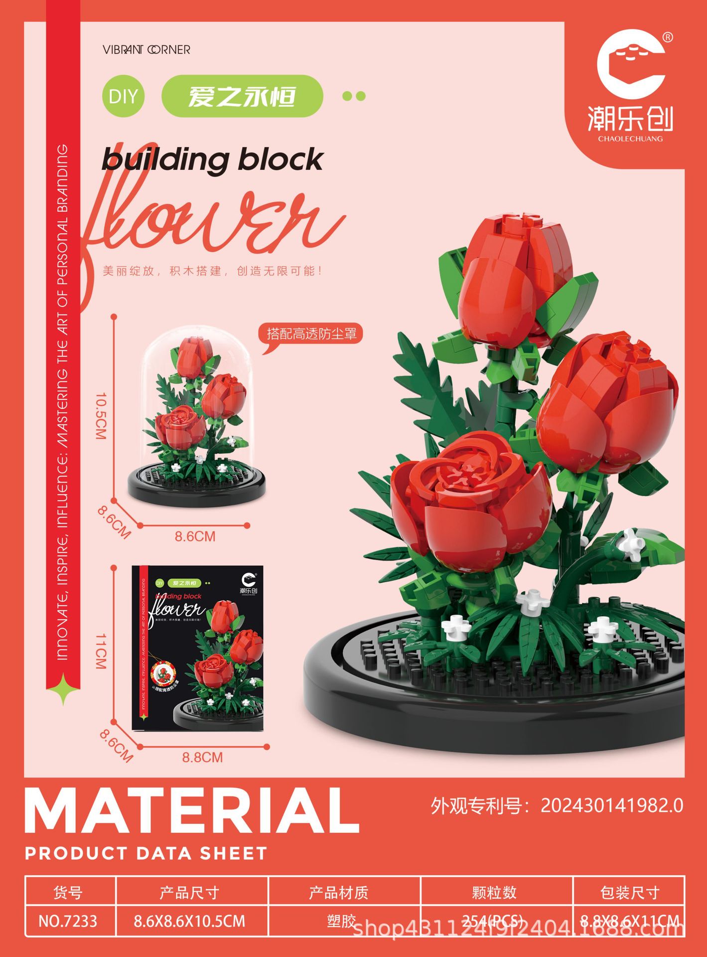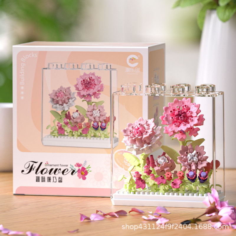 兼容乐高永生花束植物拼装玩具向日葵康乃馨摆件节日礼物公仔批发