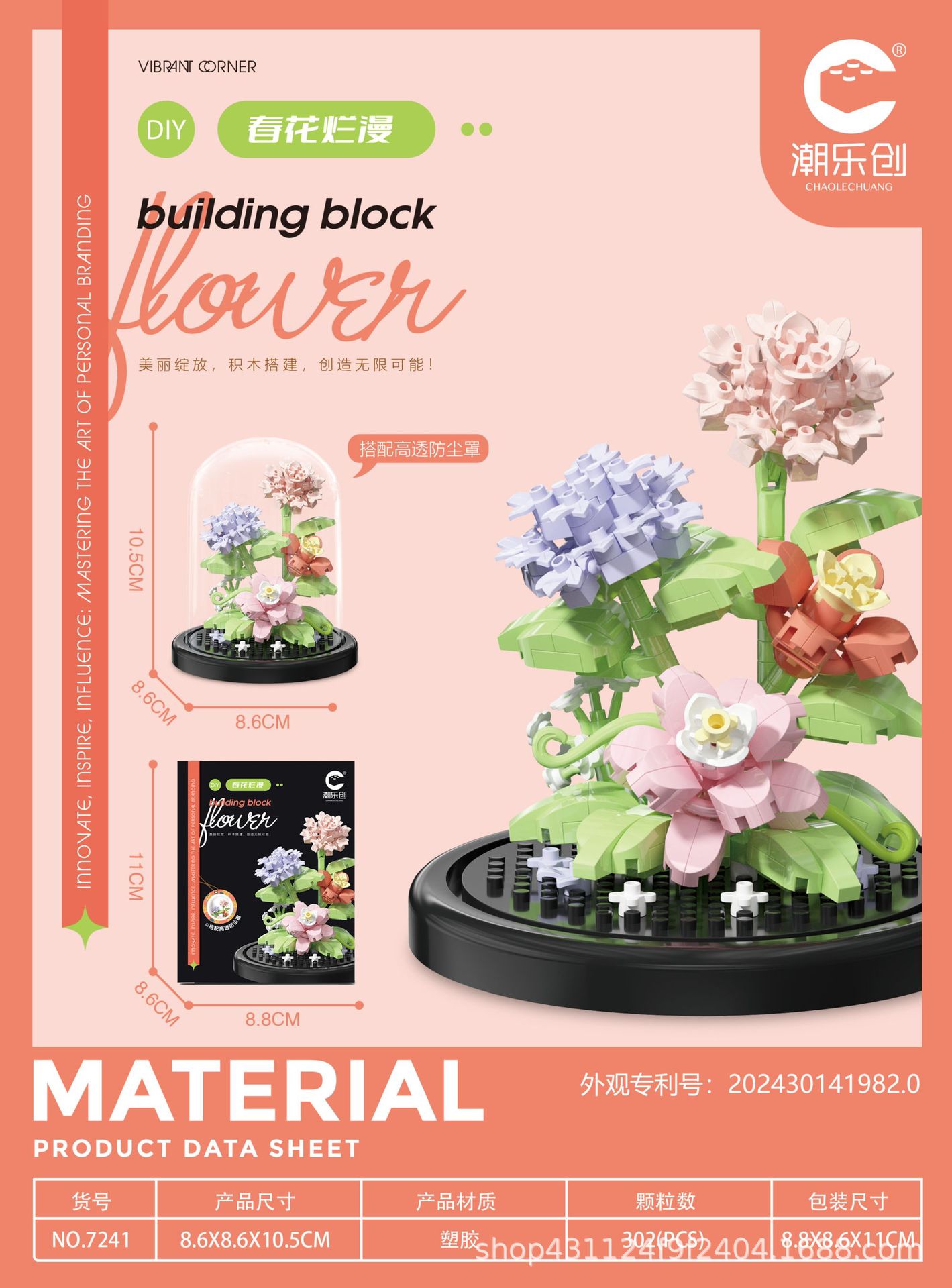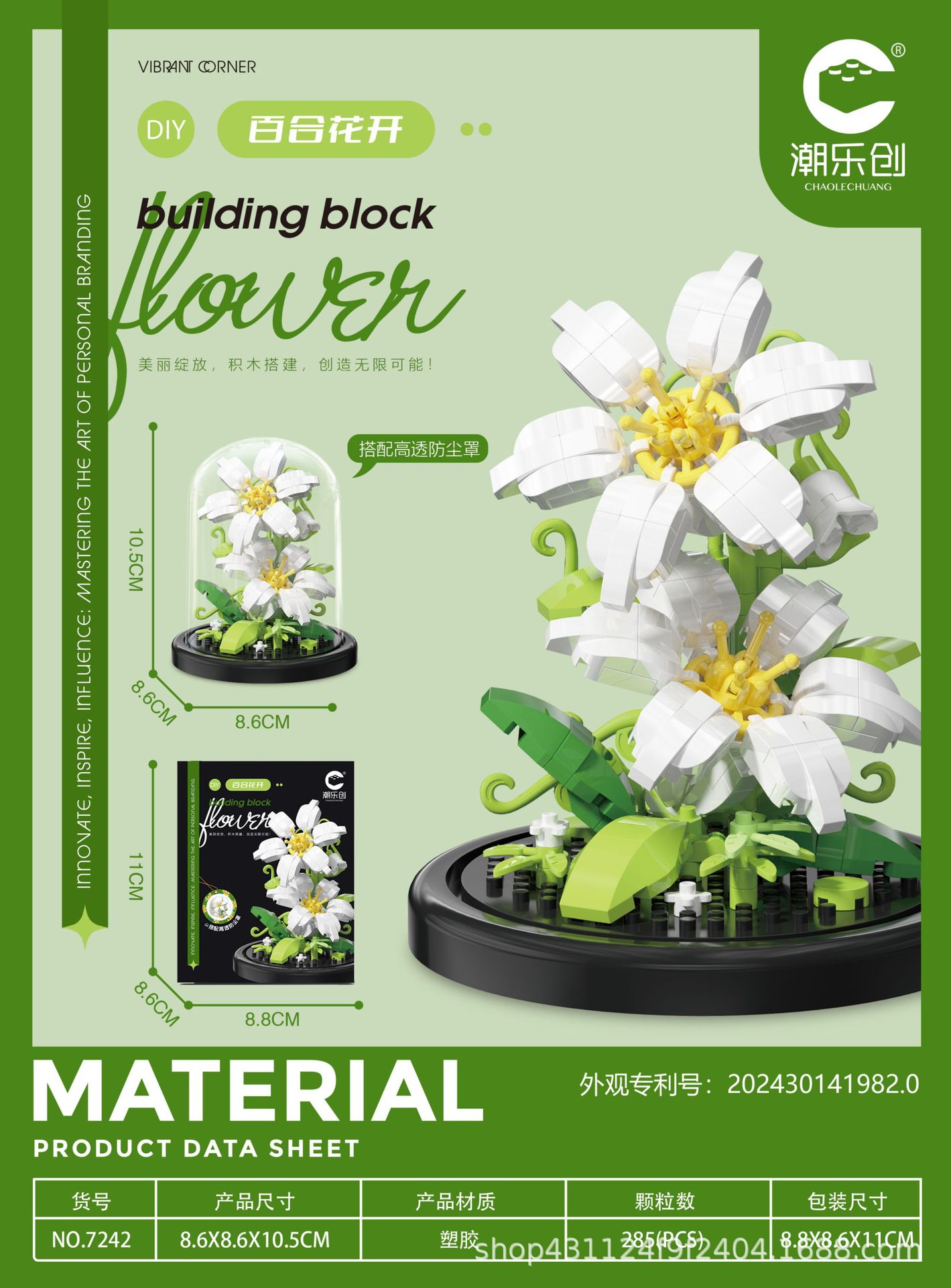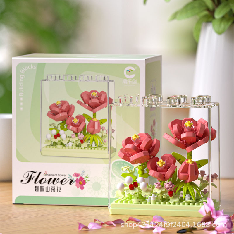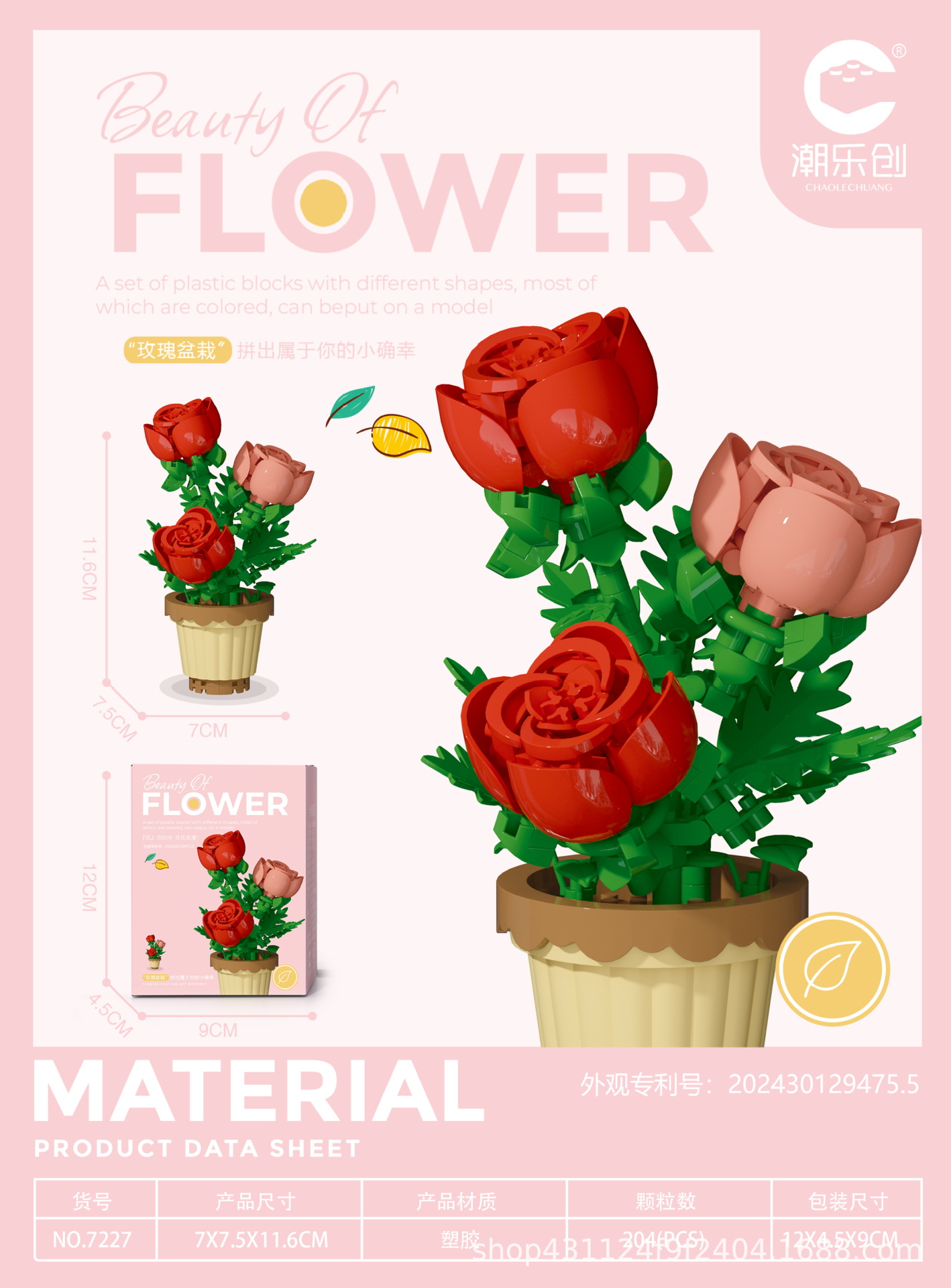 兼容乐高永生花束植物拼装玩具向日葵康乃馨摆件节日礼物公仔批发