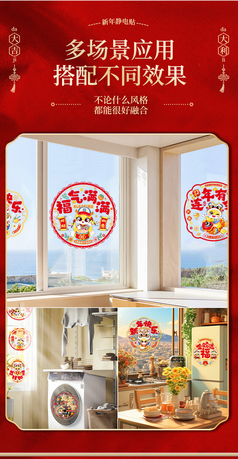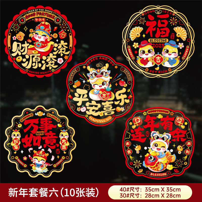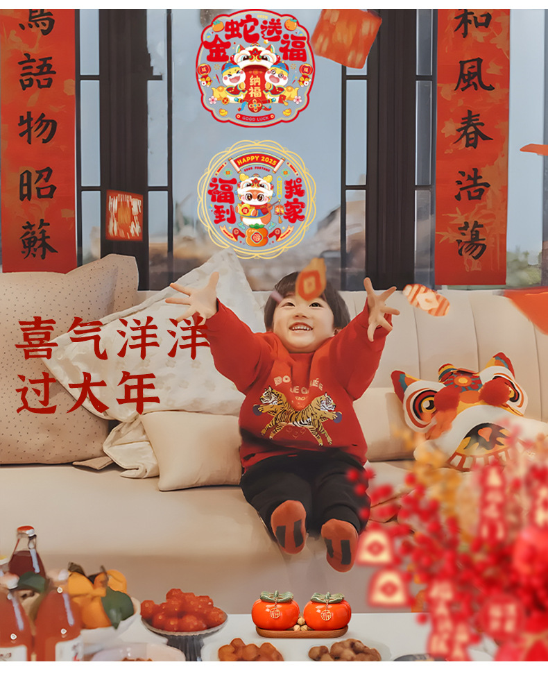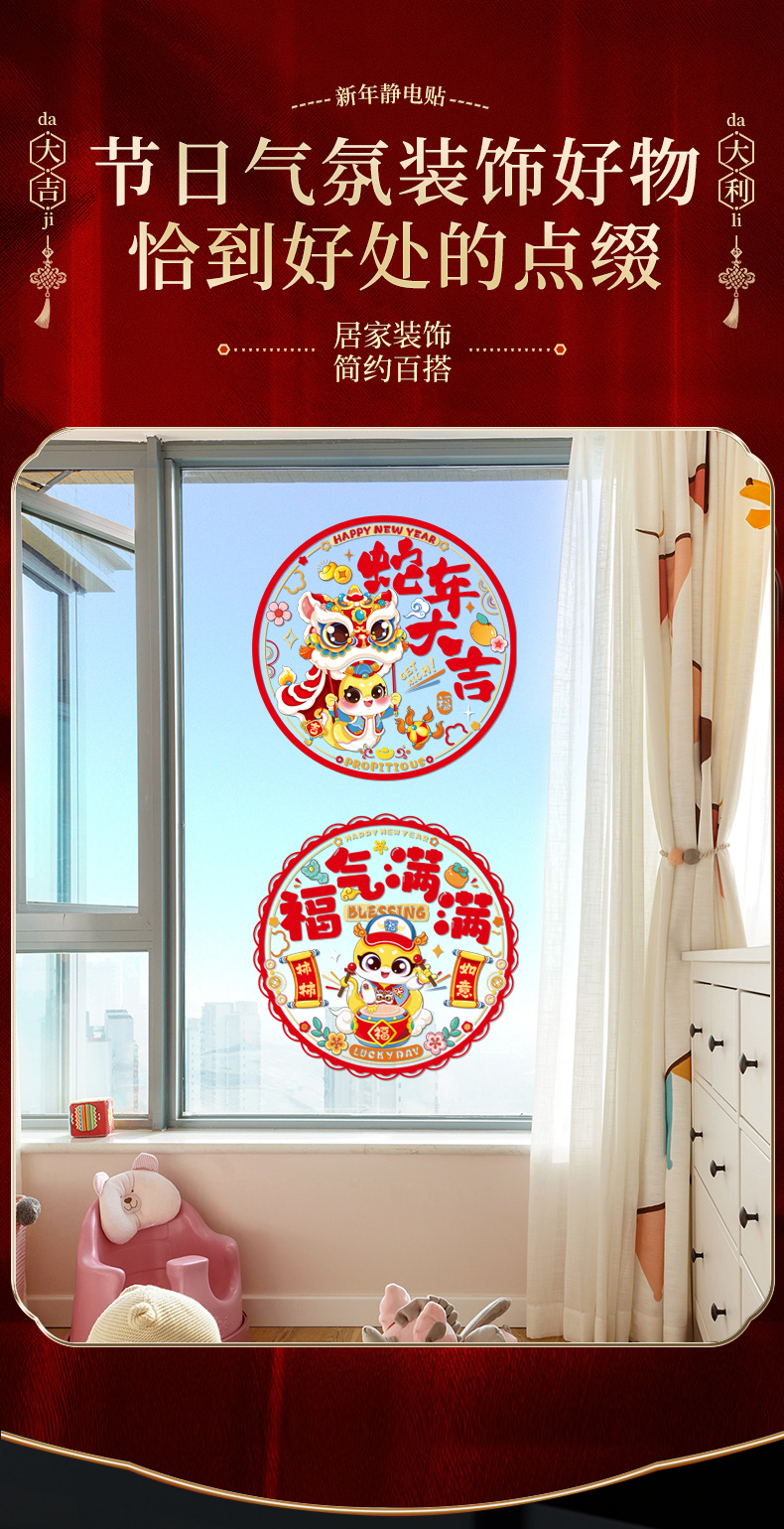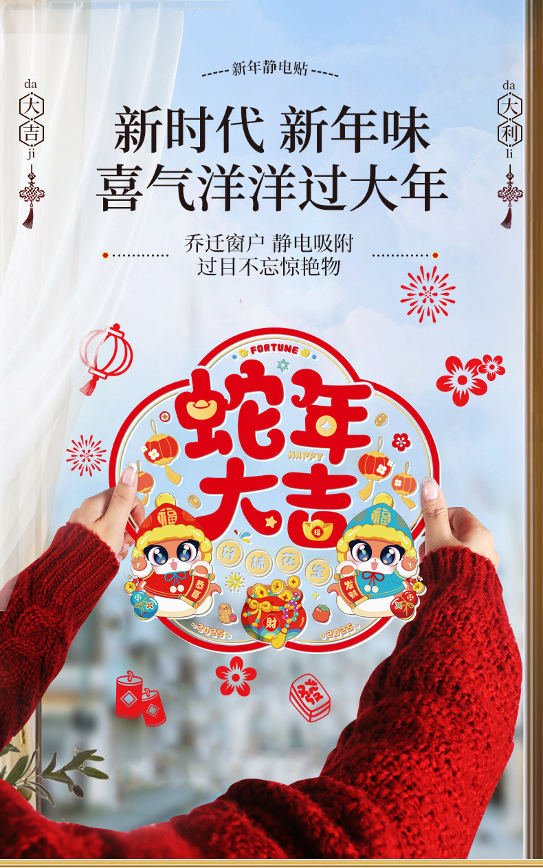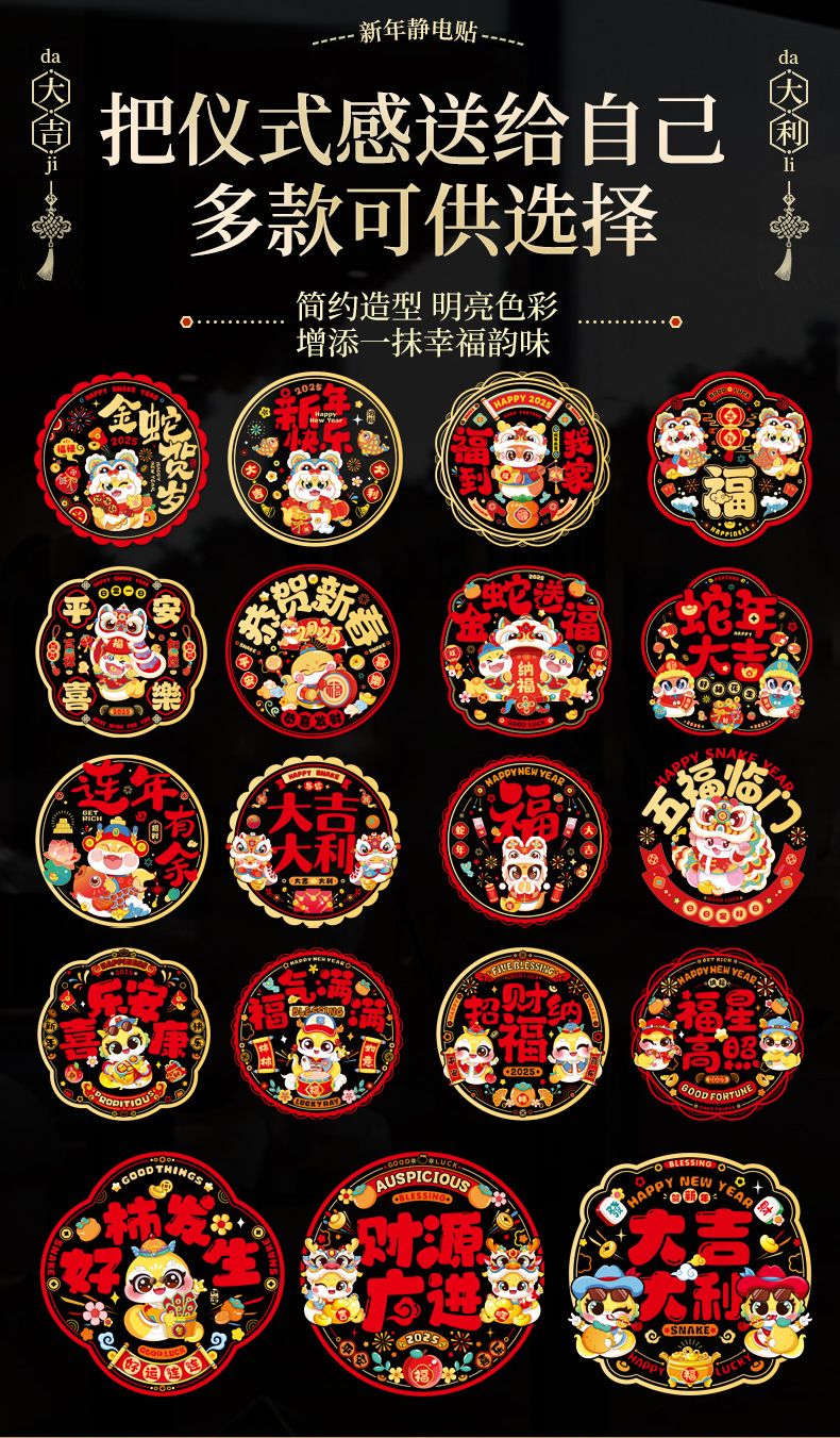 静电贴2025新款蛇年玻璃门贴春节过年装饰品新年生肖福字窗花贴纸